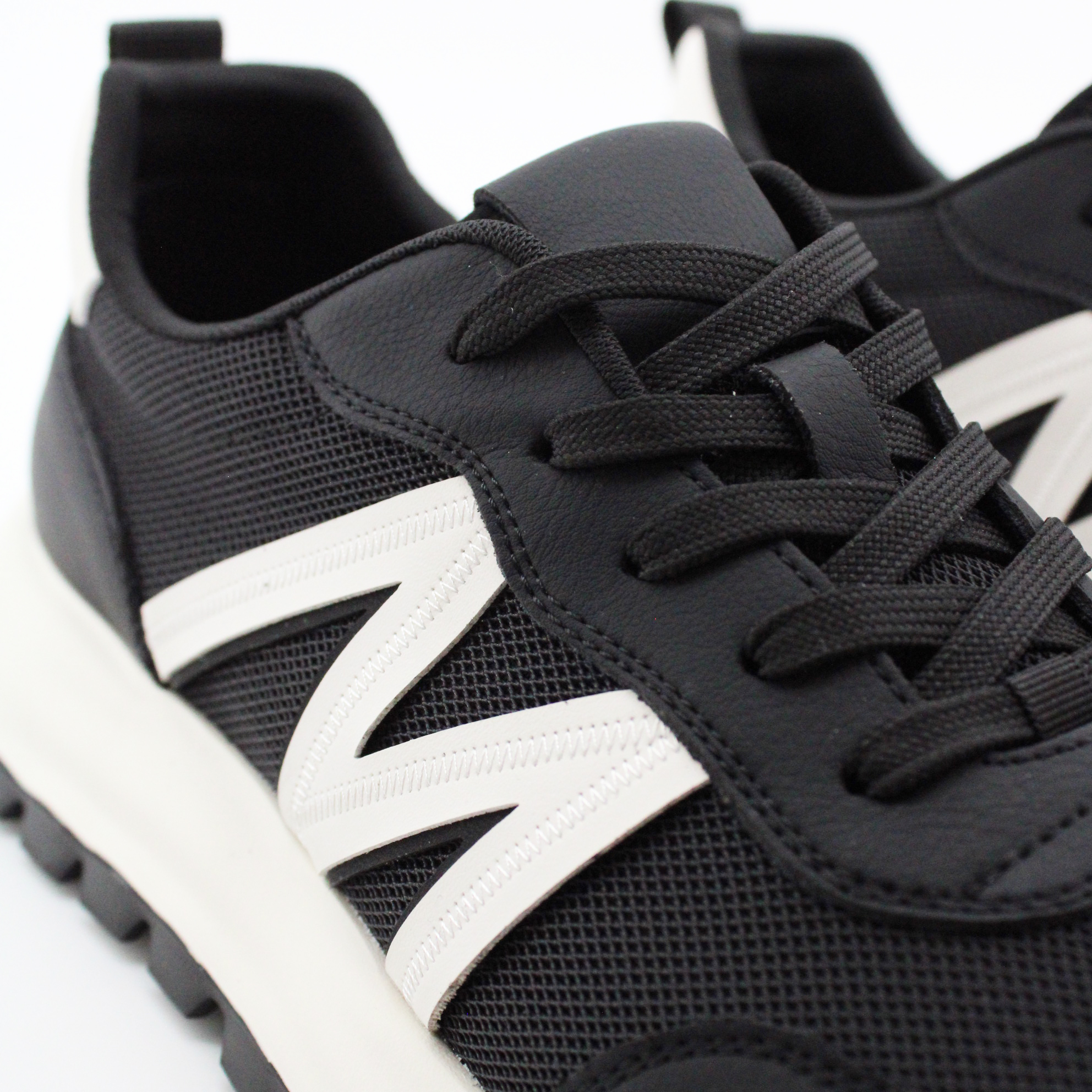 Чёрные кроссовки с фирменным белым элементом «М» — это тот самый базовый must-have, который работает с любым гардеробом. Строгий костюм на пятницу? Да. Джинсы и худи на выходные? Абсолютно. Чиносы в офис? Без вопросов.