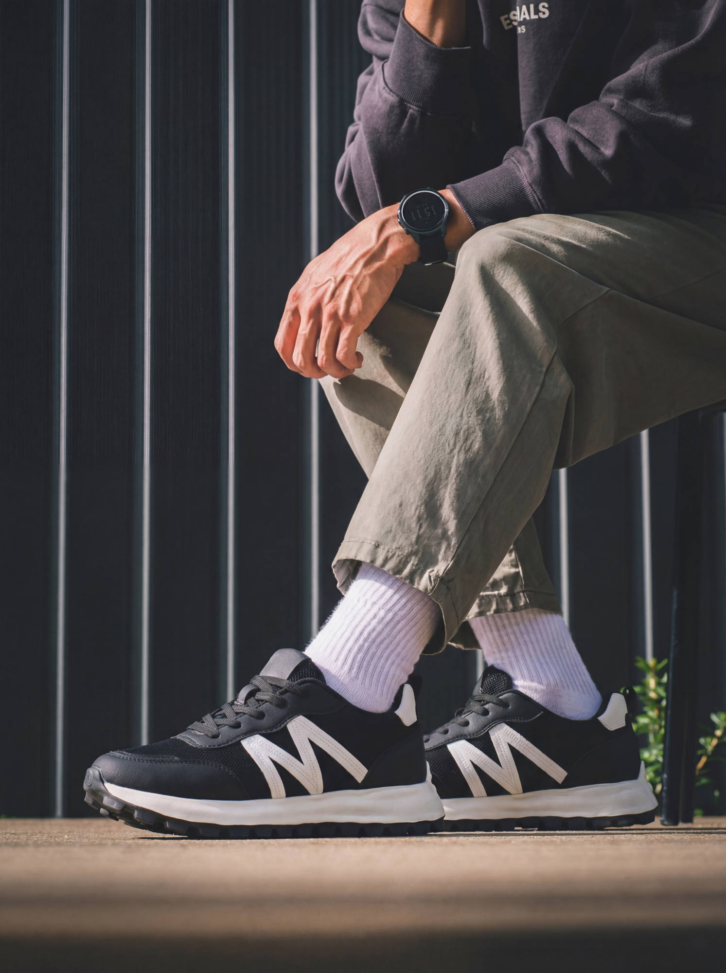 Буква «М» — узнаваемый акцент, который делает обувь не «очередными чёрными кроссовками», а вещью с характером