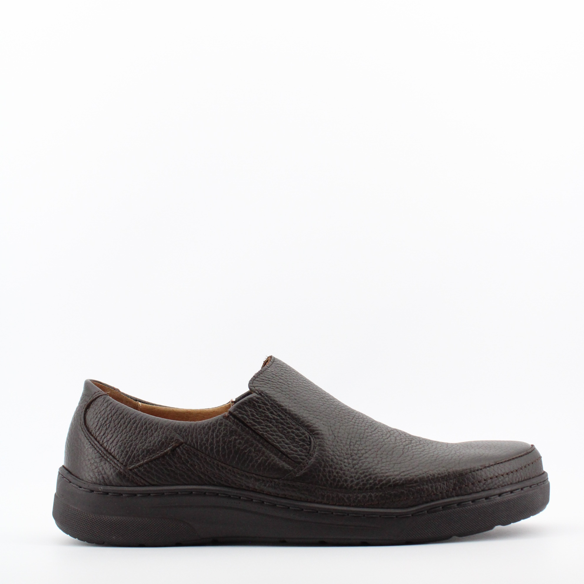 Темно-коричневые полуботинки из натуральной кожи от российского бренда Romer. Дизайнеры дополнили модель эластичными вставками по бокам, благодаря которым надевать и снимать обувь очень удобно. Детали: