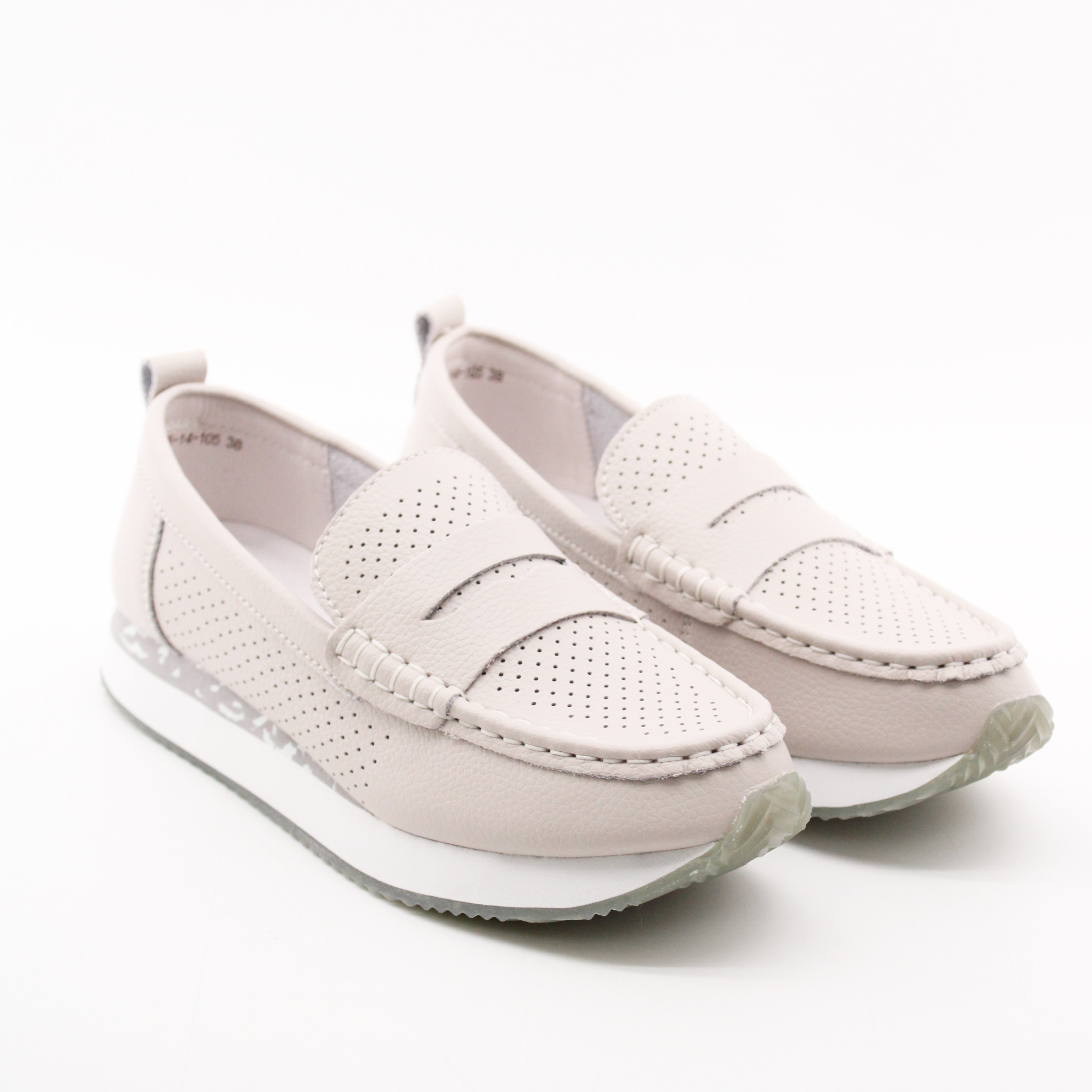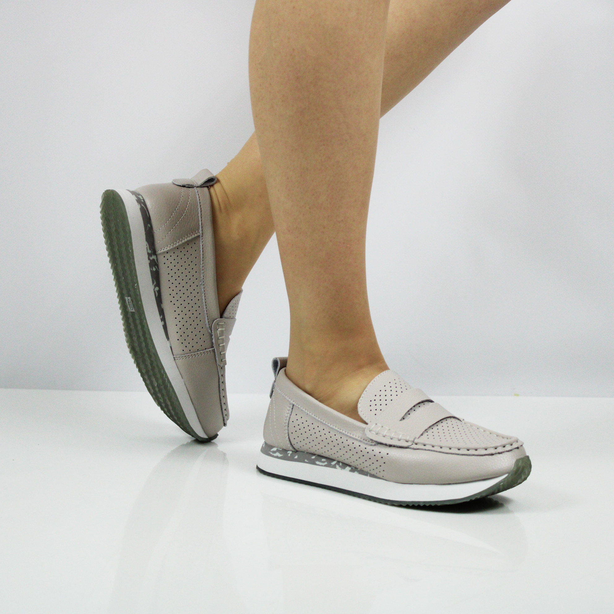 Летние мокасины серого цвета.
