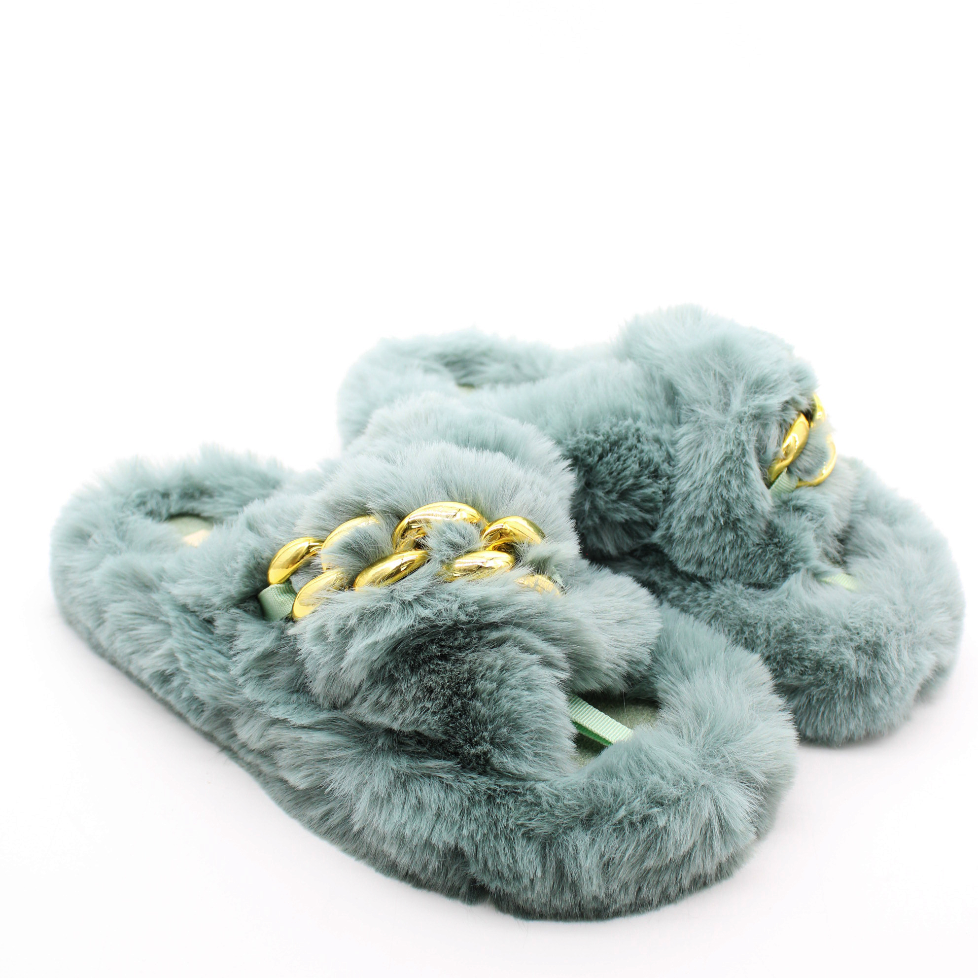 Плюшевые домашние тапочки с хлопковой стелькой внутри выглядят очень стильно и уютно. Подошва тапочек выполнена на основе резины, очень гибкая и лёгкая. Модель декорирована фурнитурой в части союзки, что делает ваш образ еще более женственным.