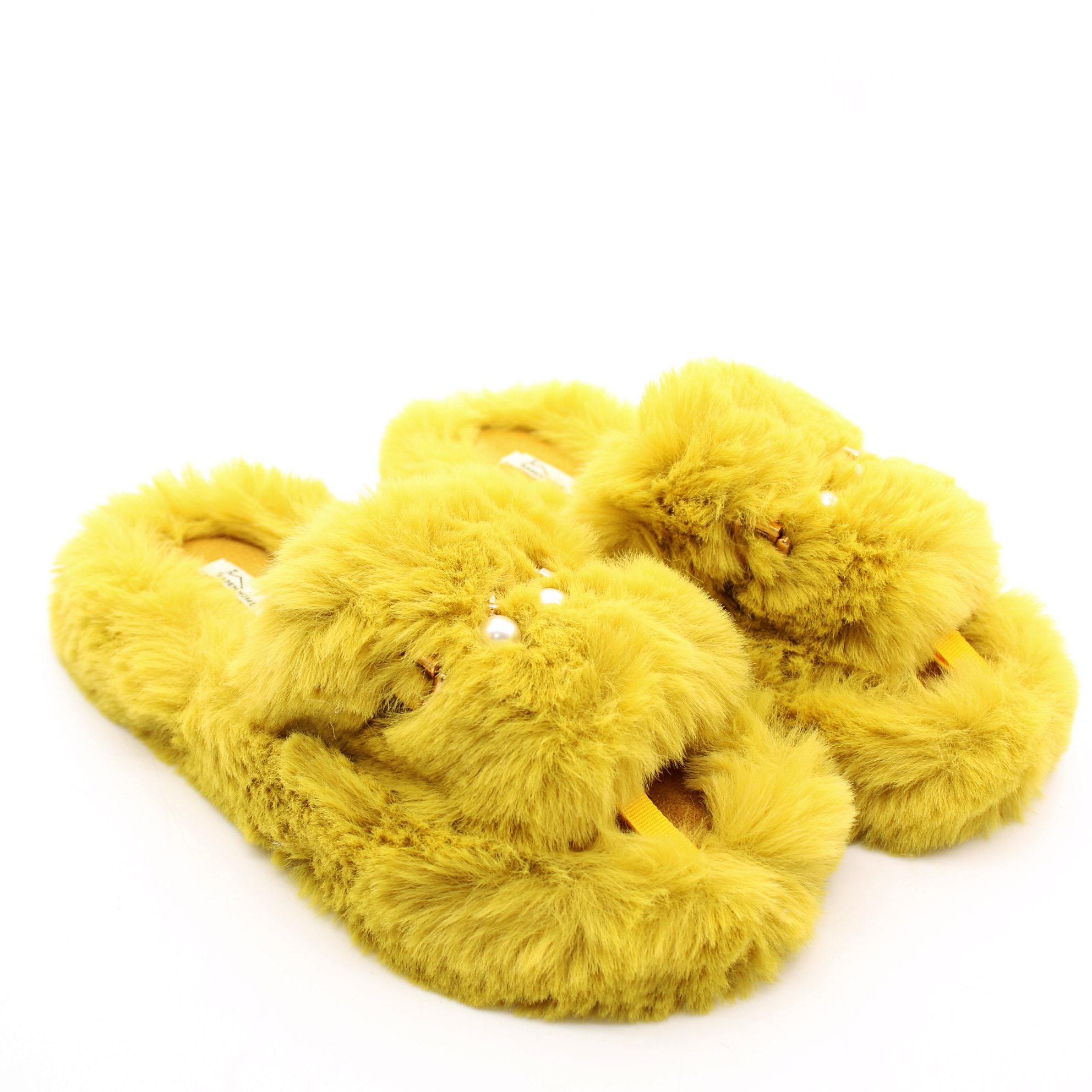 Плюшевые домашние тапочки с хлопковой стелькой внутри выглядят очень стильно и уютно. Подошва тапочек выполнена на основе резины, очень гибкая и лёгкая. Модель декорирована фурнитурой в части союзки, что делает ваш образ еще более женственным.