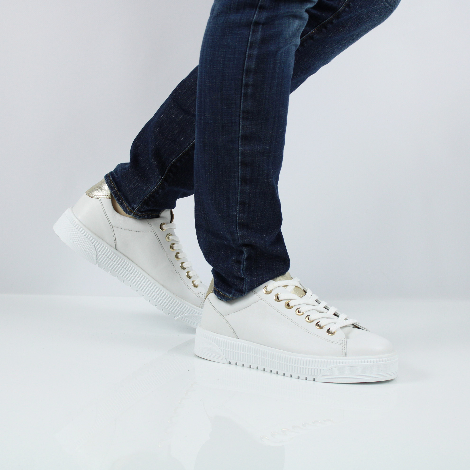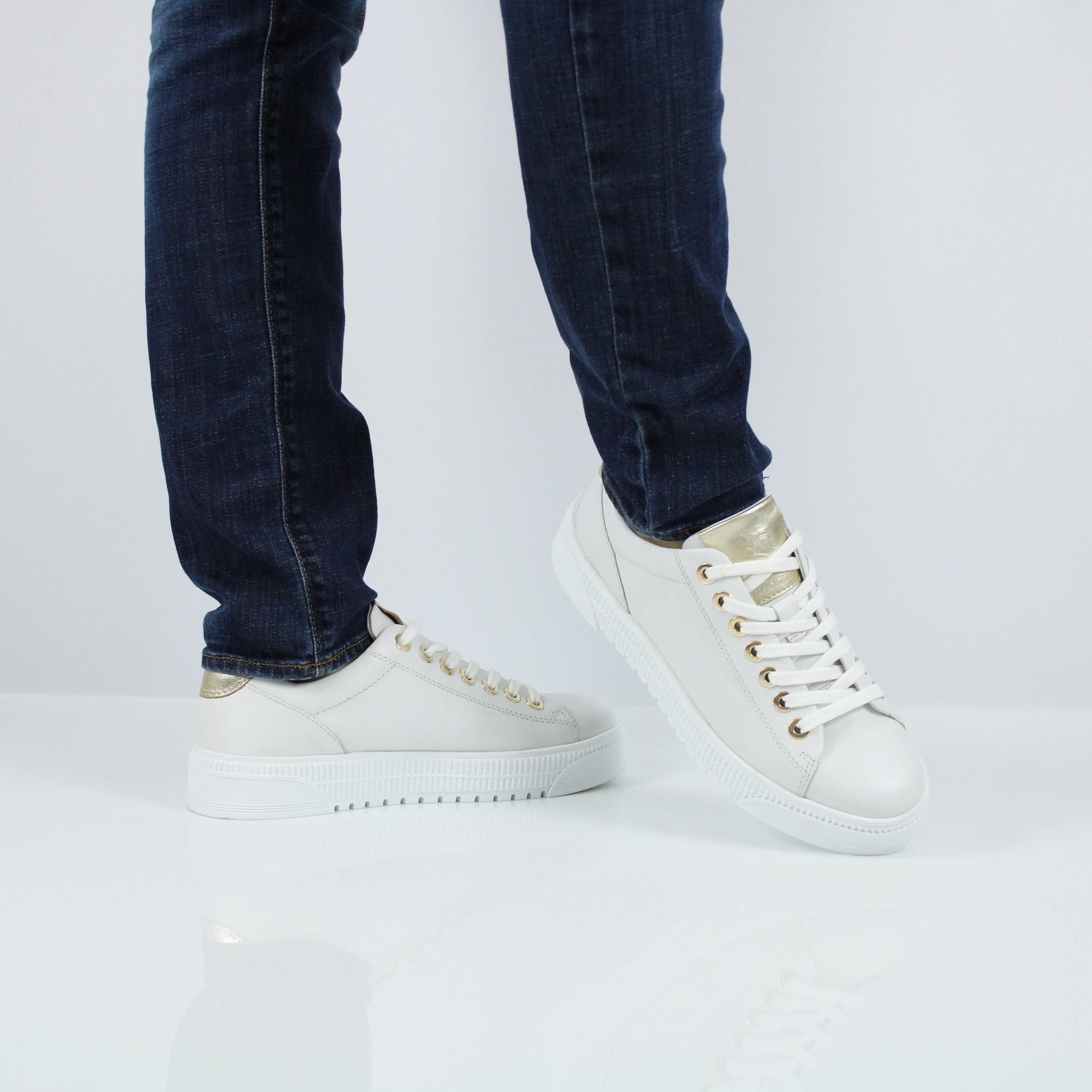 Белые кеды из натуральной кожи от бренда MARCO TOZZI.
