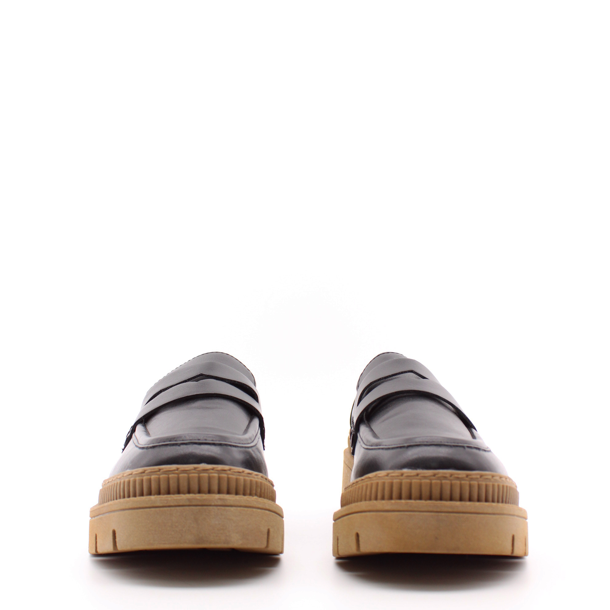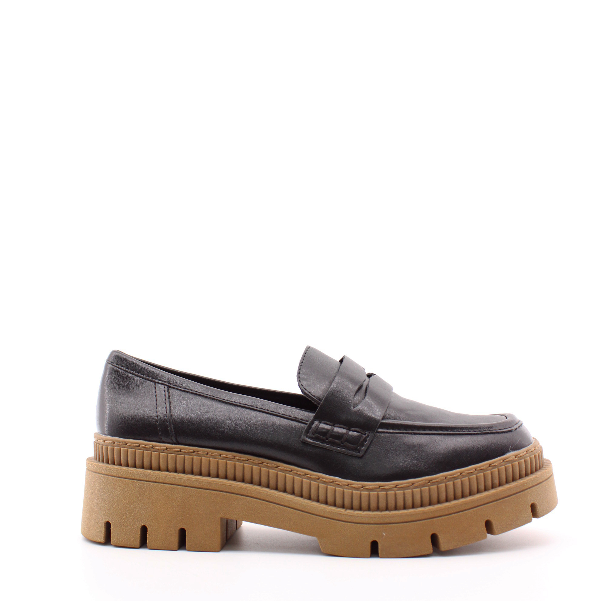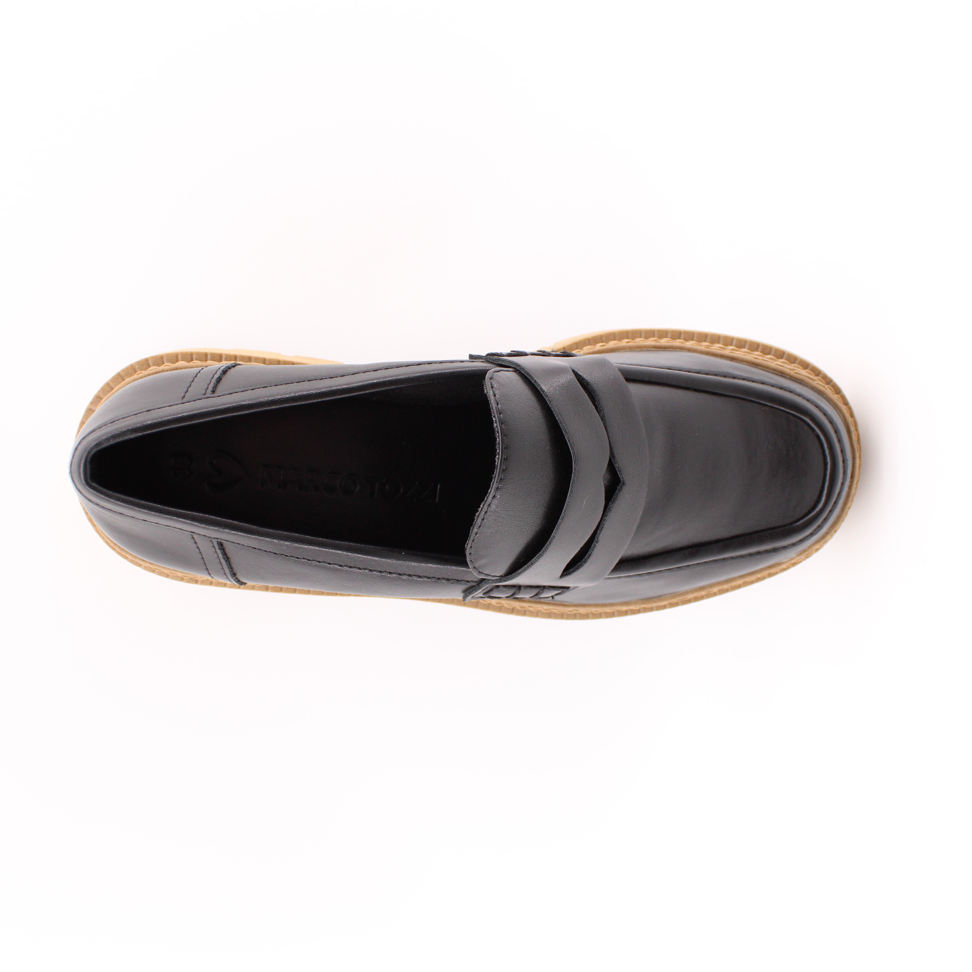 Черные лоферы на коричневой подошве от бренда MARCO TOZZI.