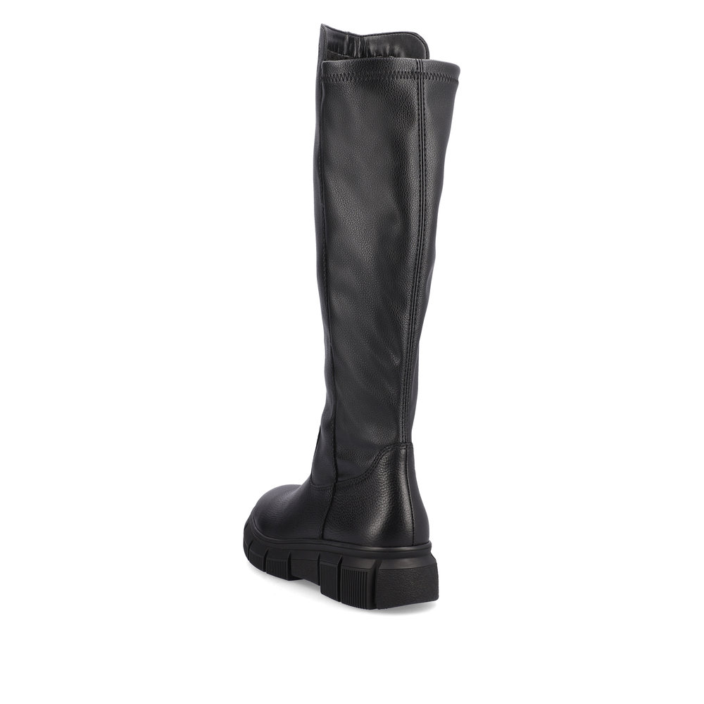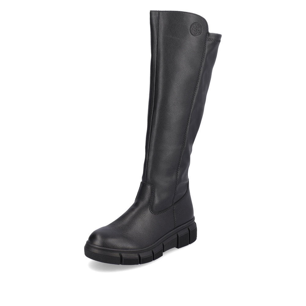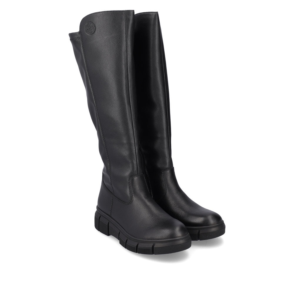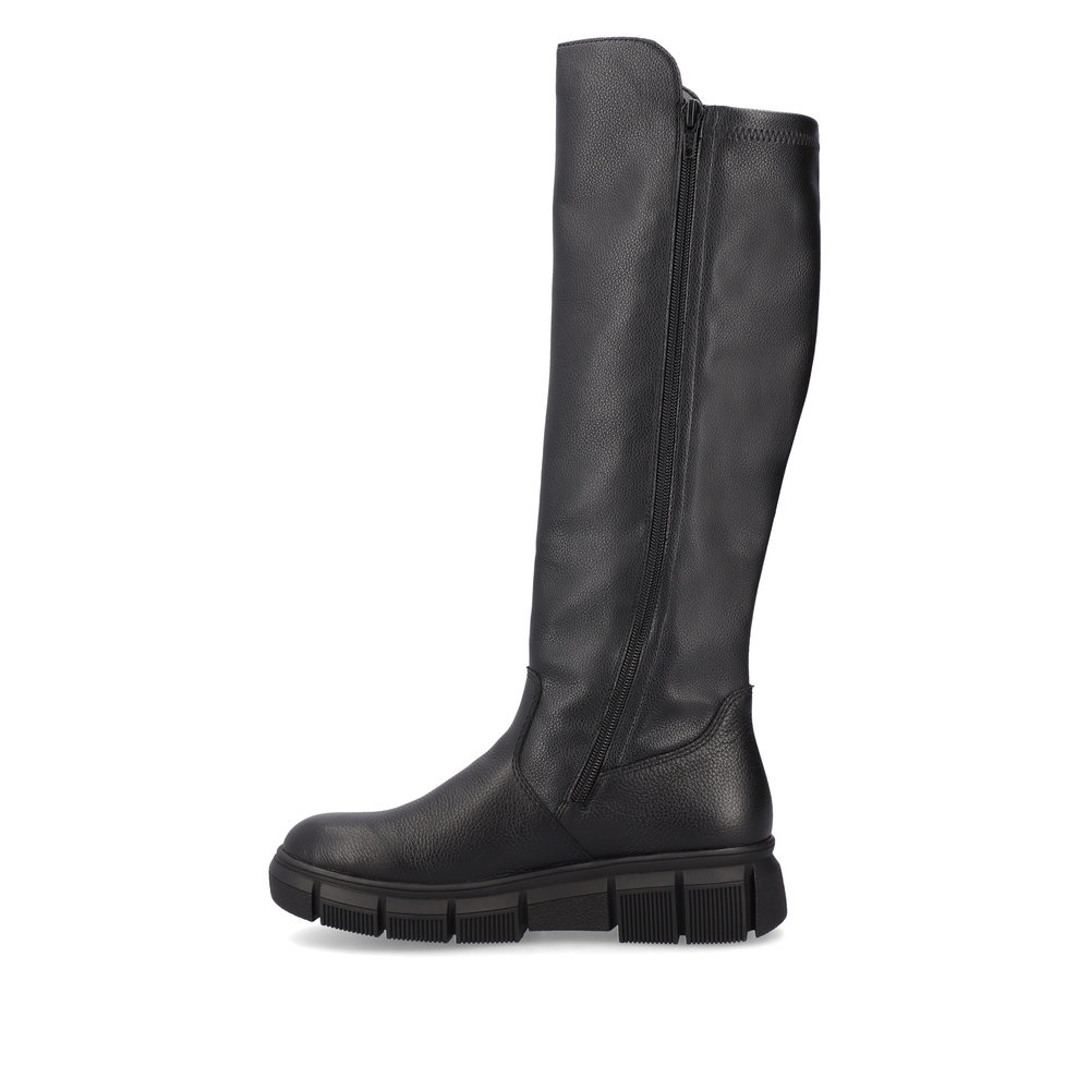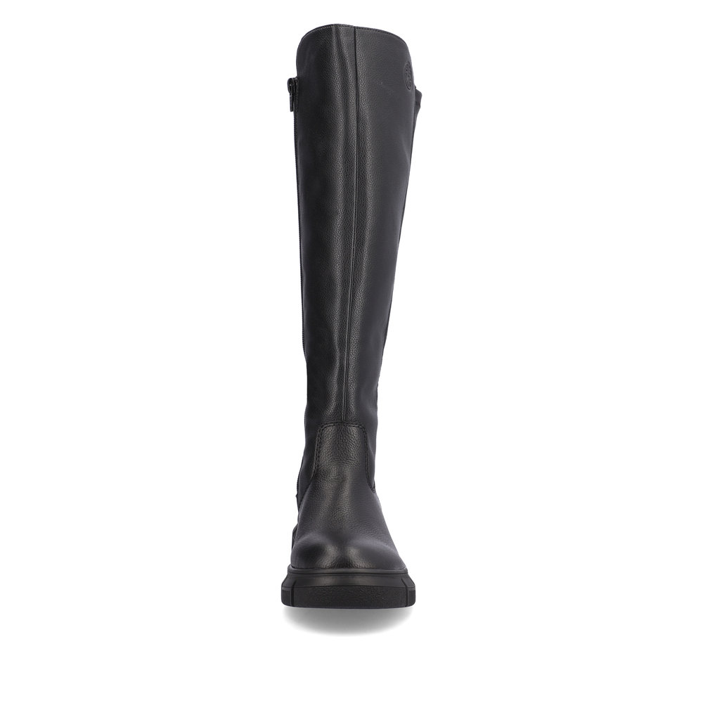 Сапоги женские немецкого бренда Rieker. Верх изготовлен из  искуственной кожи черного цвета. Материал подкладки натуральная шерсть с ТЕХ мембраной. Отлично подойдут на зиму и станут хорошим завершением к вашему гардеробу.