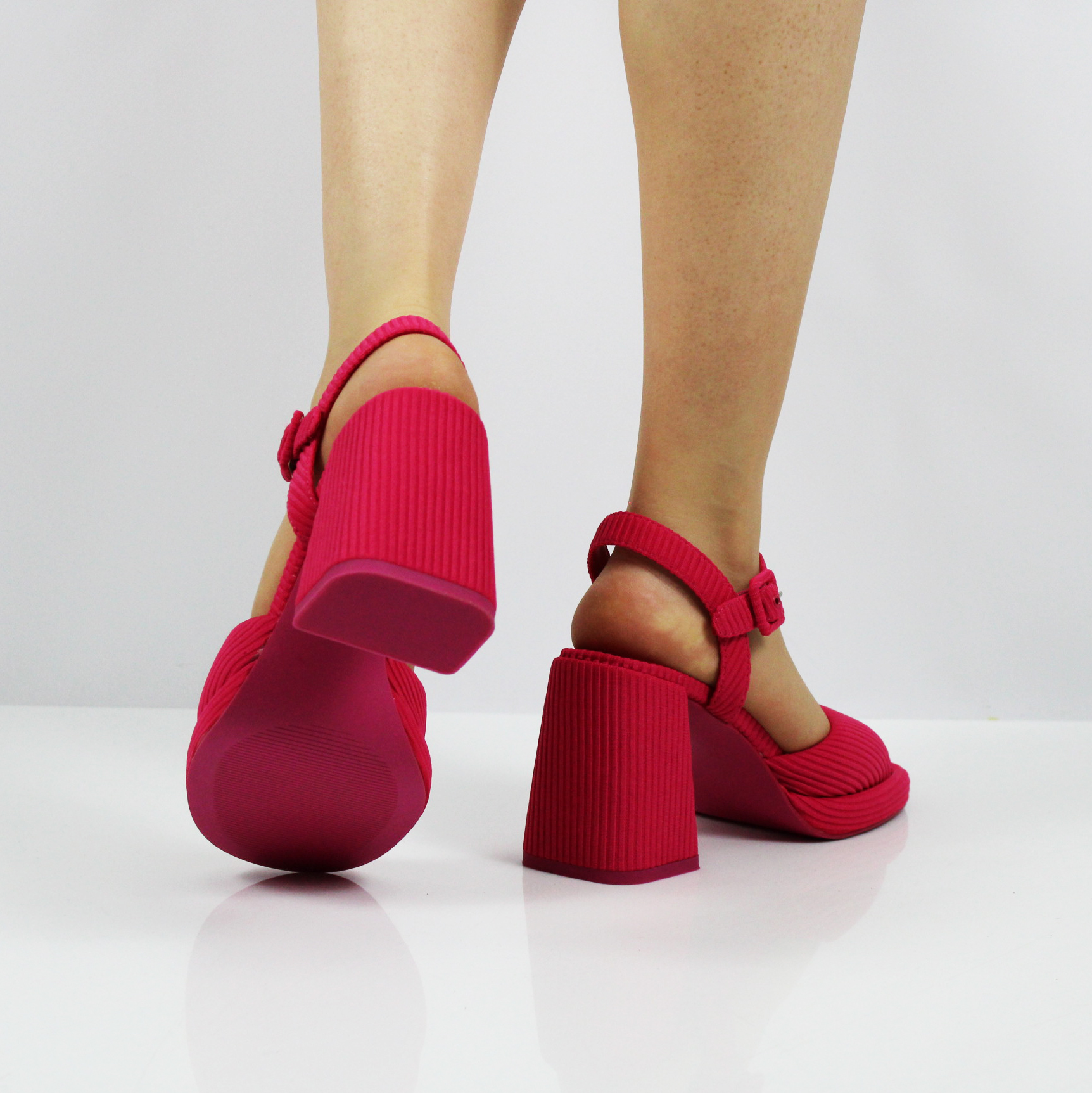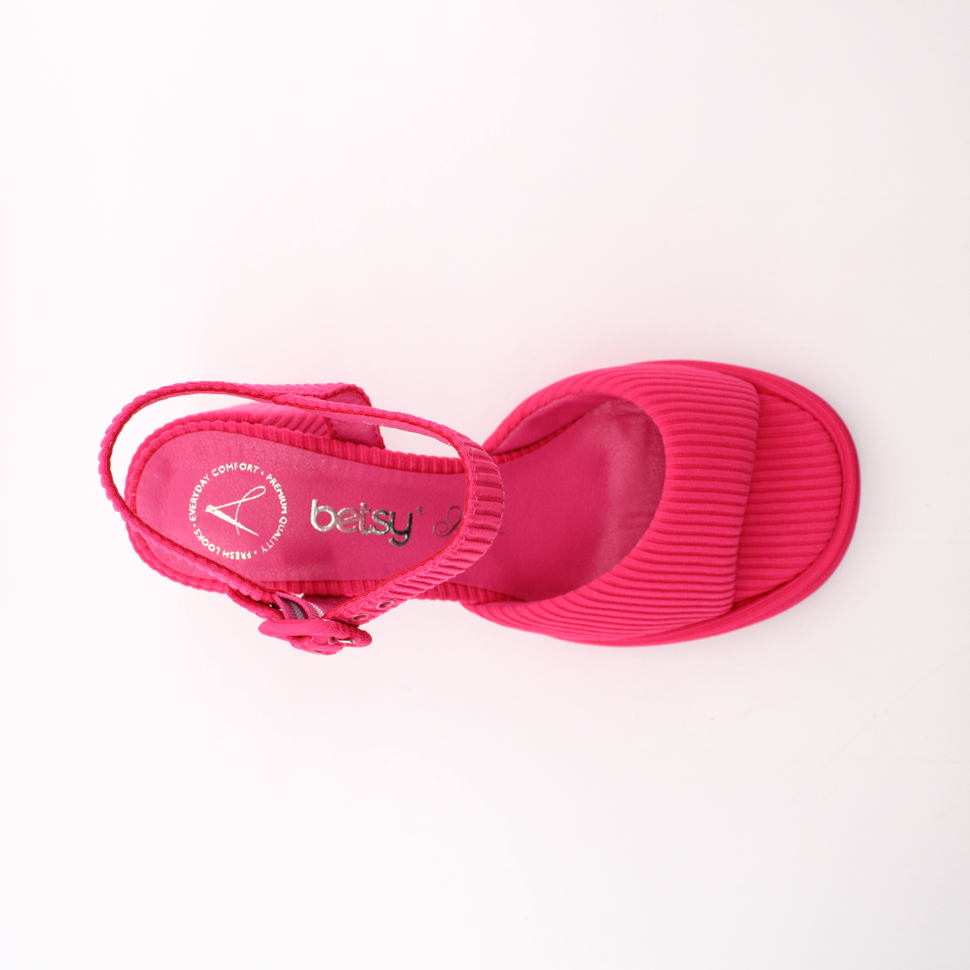 Текстильные туфли на высоком каблуке цвета фуксия от бренда BETSY. Яркий цвет этих модных босоножек является главной изюменкой.