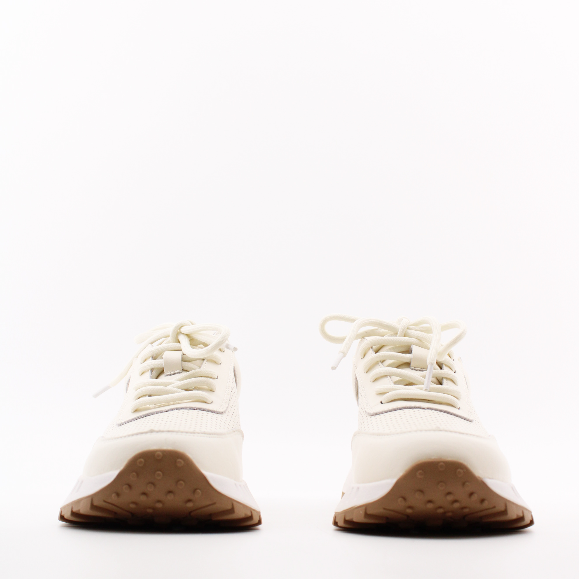 Перфорированные кроссовки кремового цвета.