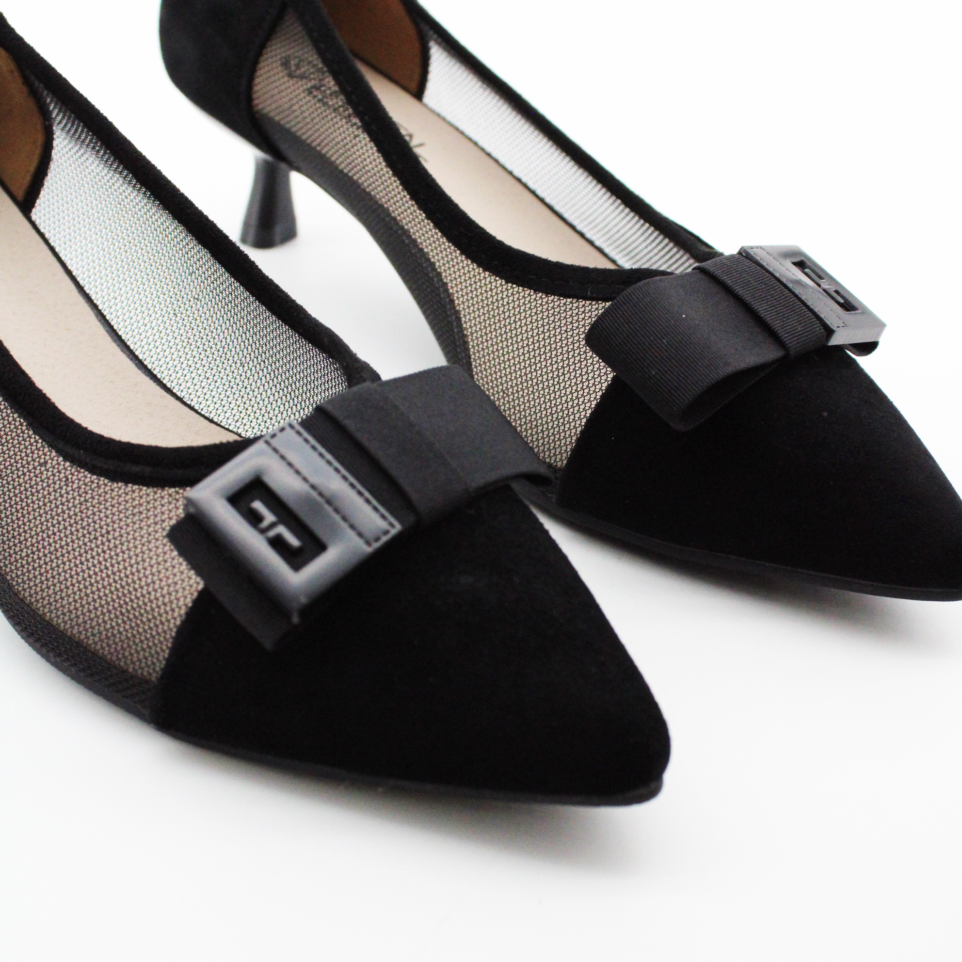 Чёрные туфли с прозрачной сеткой и бантом — элегантность, которая дышит.