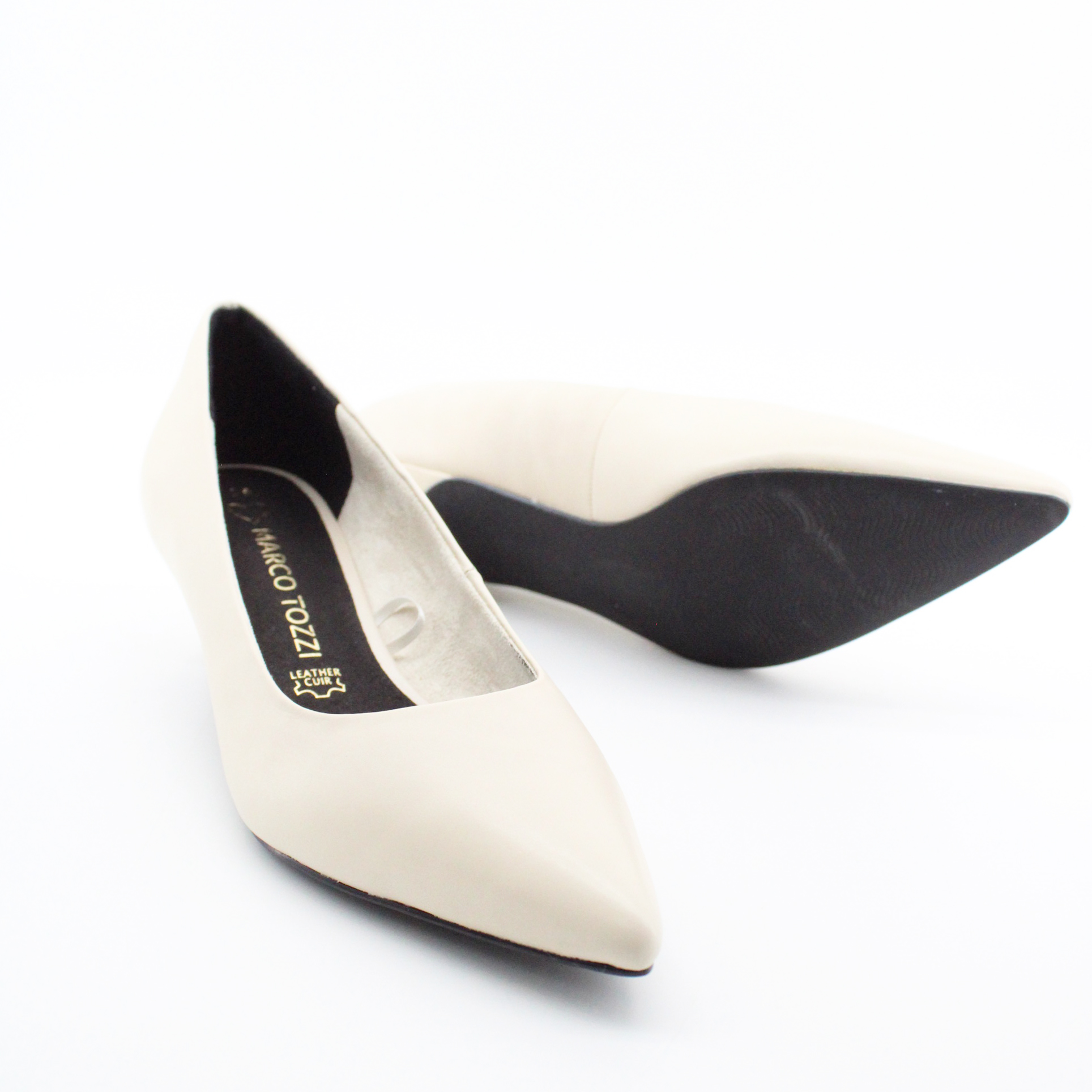 Утонченные женские туфли в благородном кремовом оттенке — эталон элегантности и безупречного вкуса. Классическая модель с заостренным мысом создает изящный силуэт и подчеркивает женственность образа.