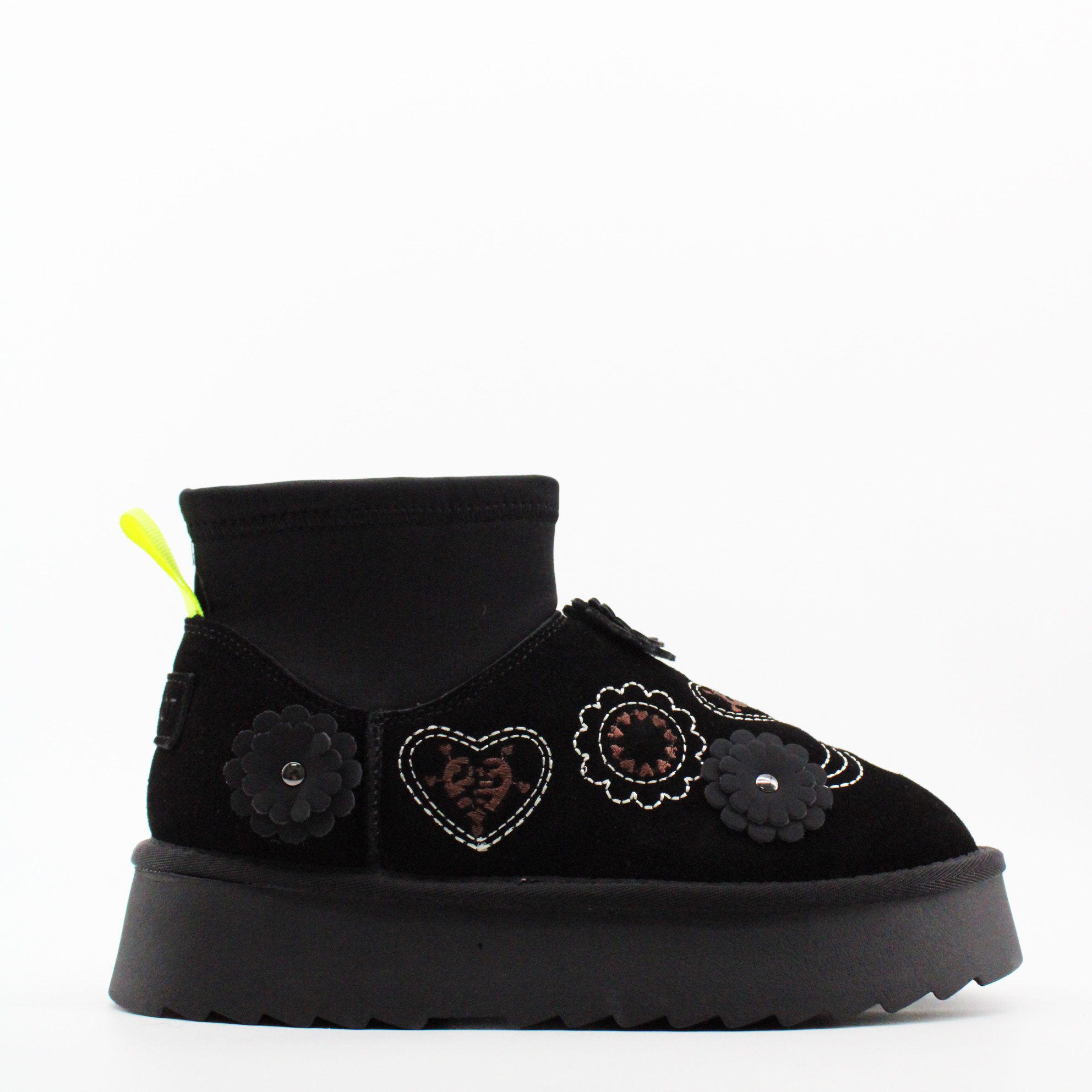 Уютные угги, которые всегда спасают нас в холодный сезон. Это идеальное сочетание стиля и комфорта. Эти мини-ботинки выполнены из высококачественных материалов. Вышивка придает особенную изюменку. Черный цвет подойдет для любого образа.