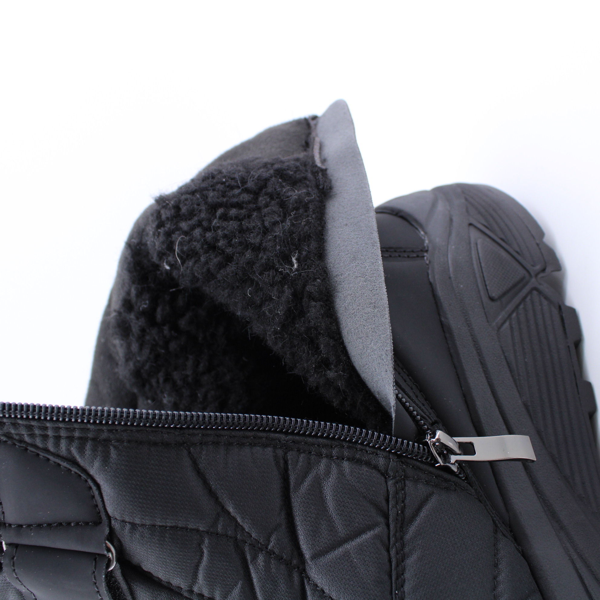 Мужские дутые сапоги выполнены из плотного черного нейлона и высокотехнологичной кожи. Стелька и подкладка из натуральной шерсти надежно сохраняют тепло. Потайная молния сбоку и петля сзади позволяют быстро обуваться. Удобная подошва с амортизацией завершает образ.