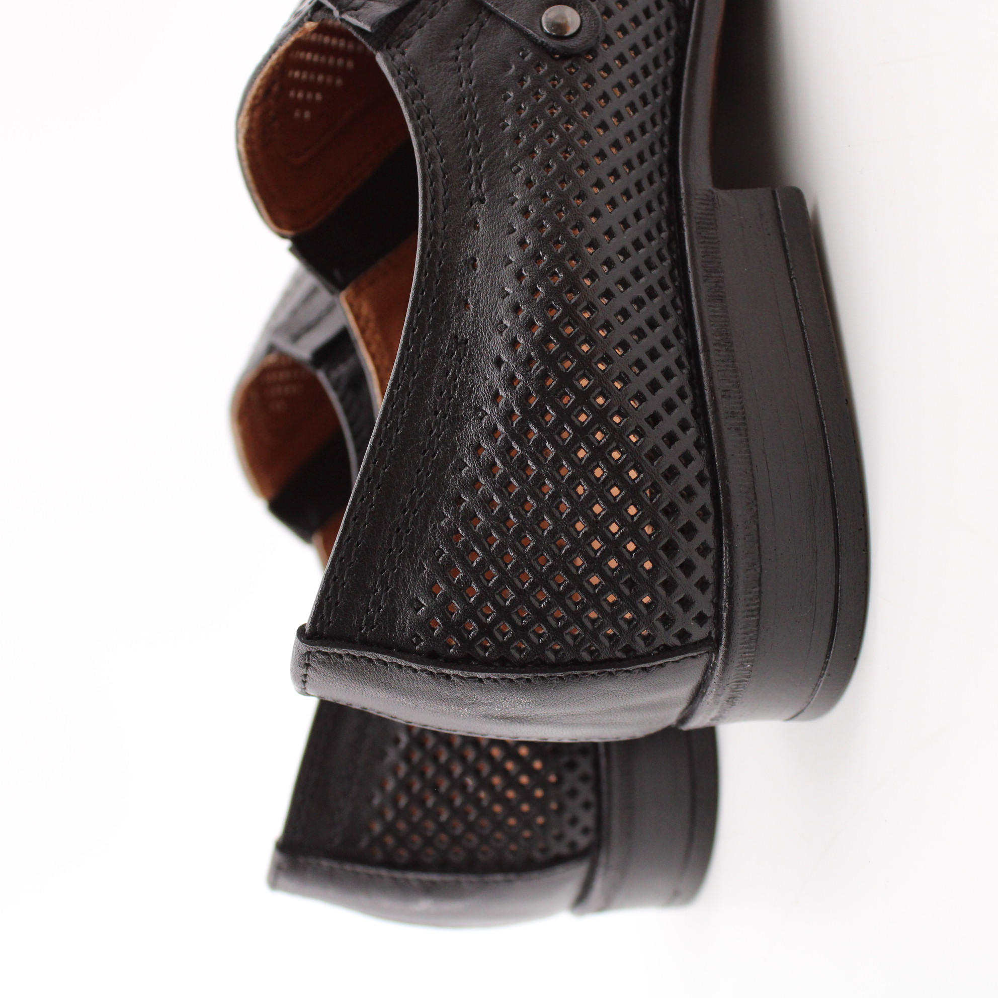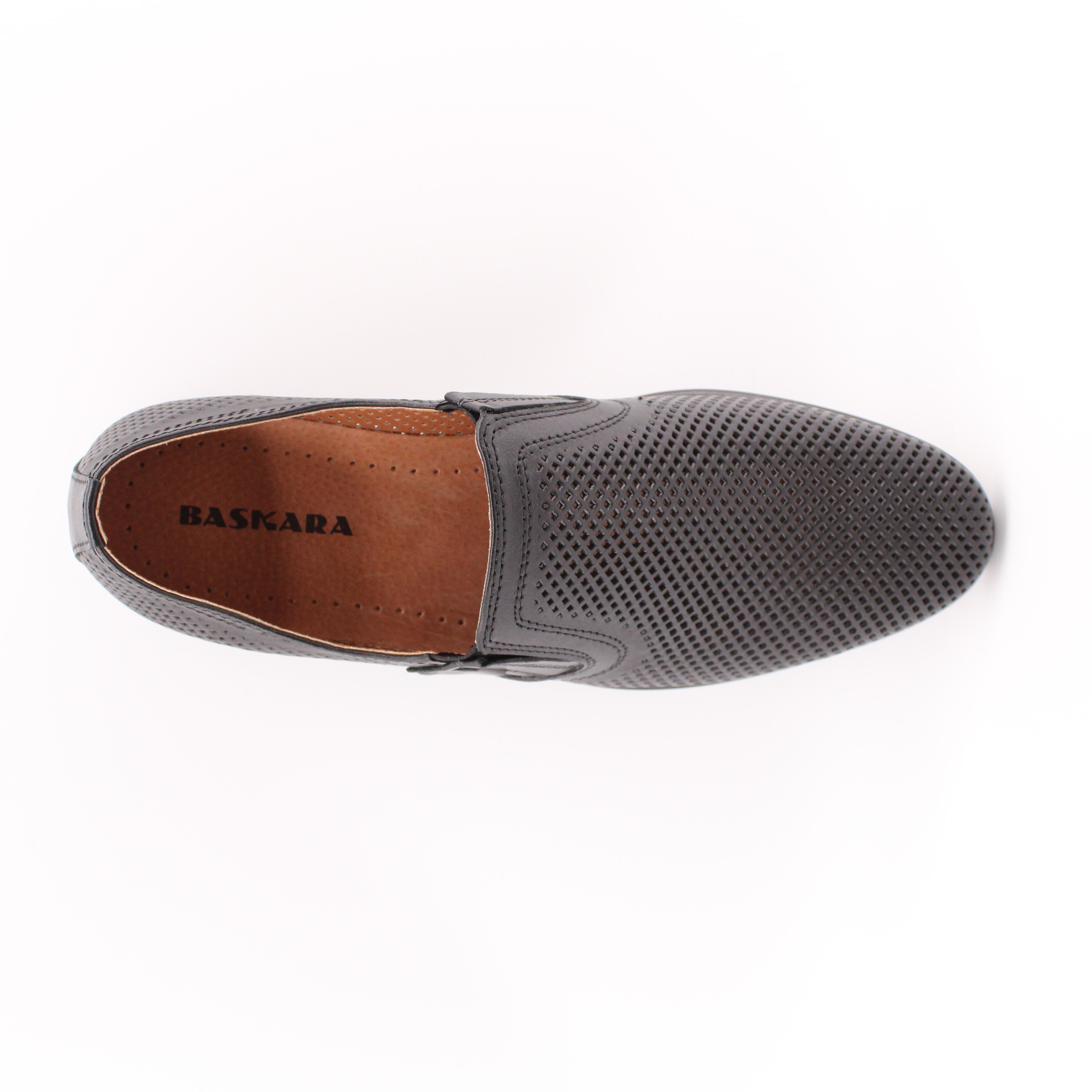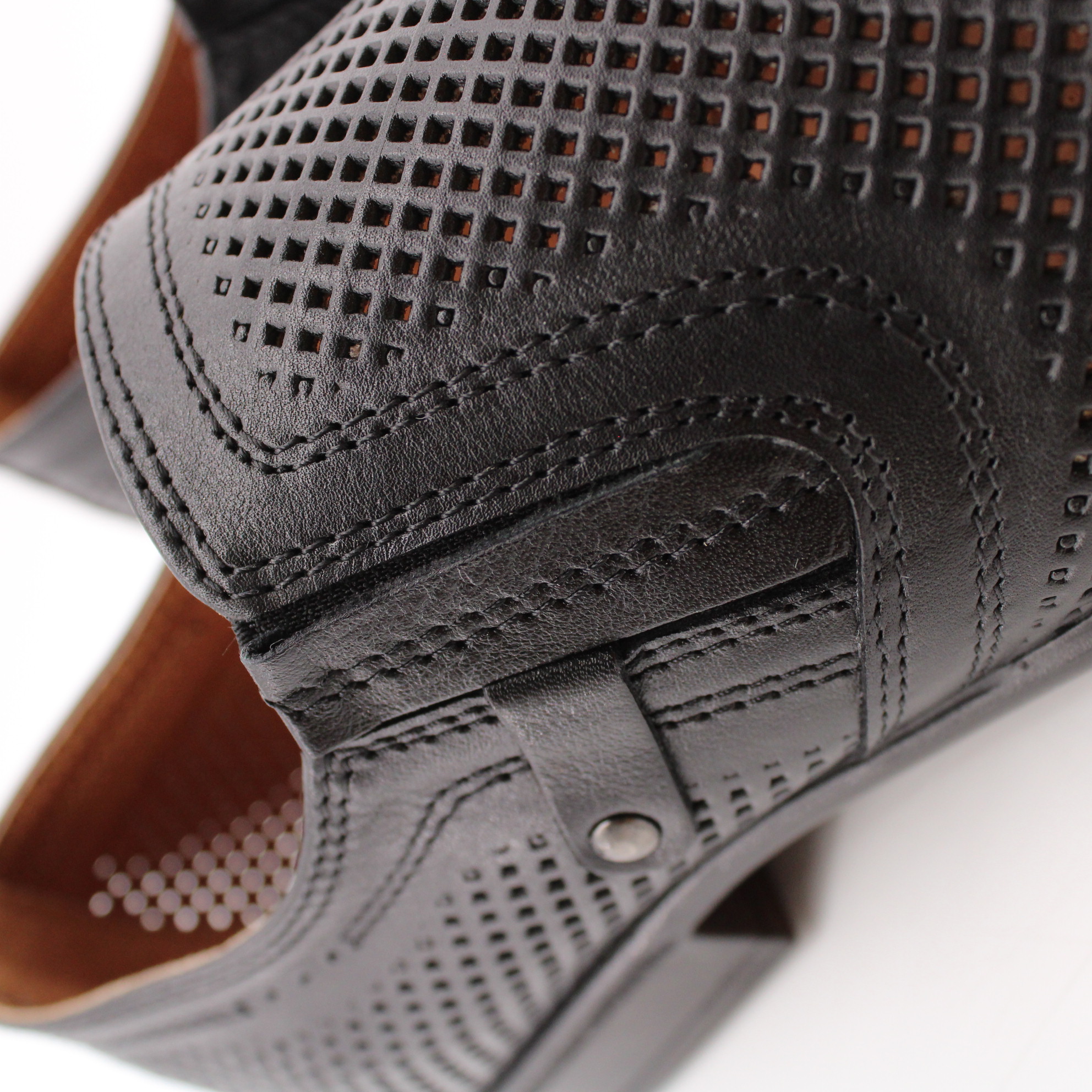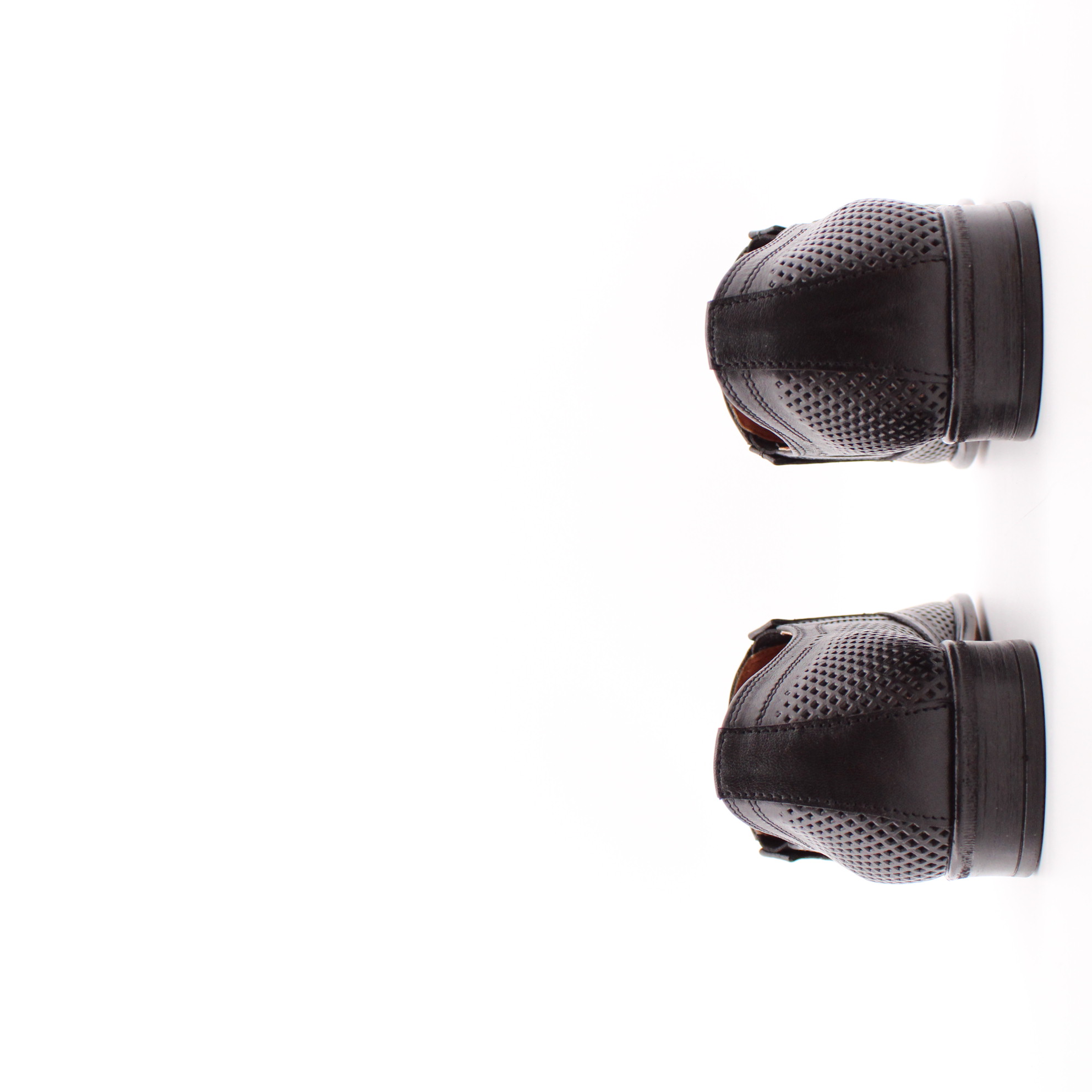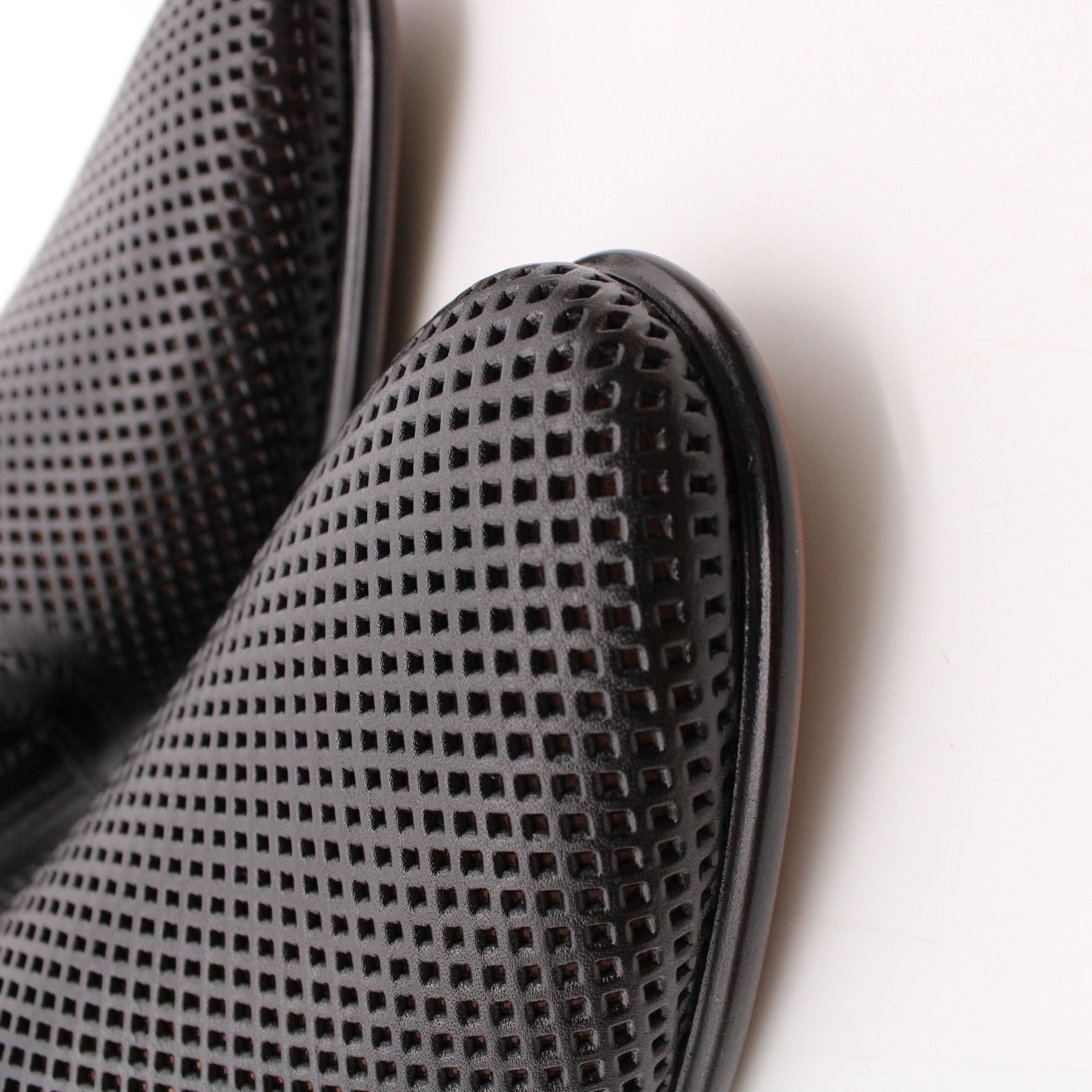 Классические мужские туфли чёрного цвета без шнурка. Модель полностью перфорирована для комфортного микроклимата стопы в тёплое время года.