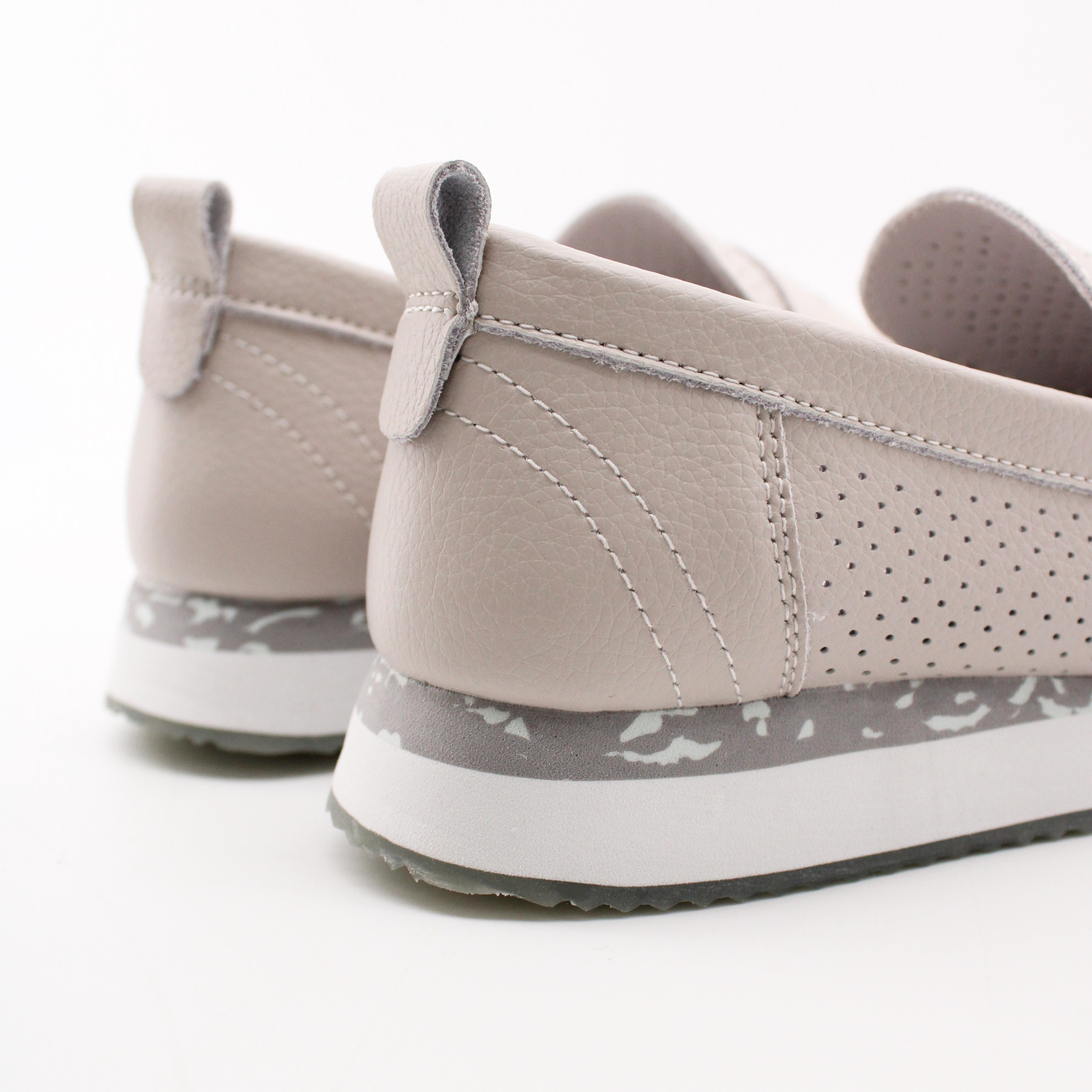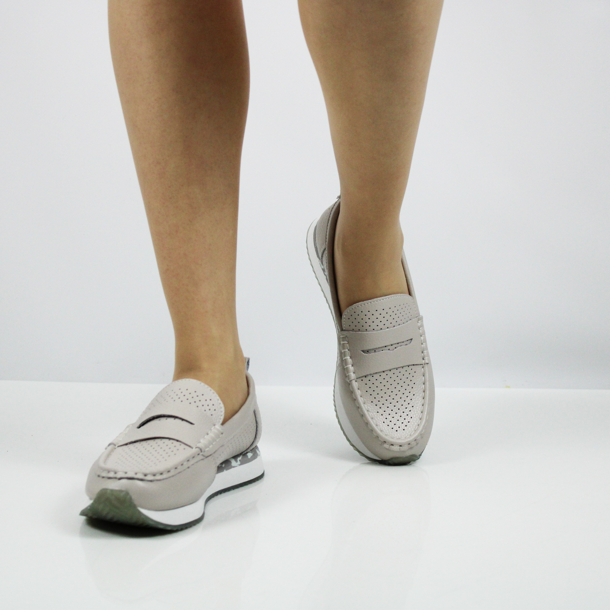 Летние мокасины серого цвета.