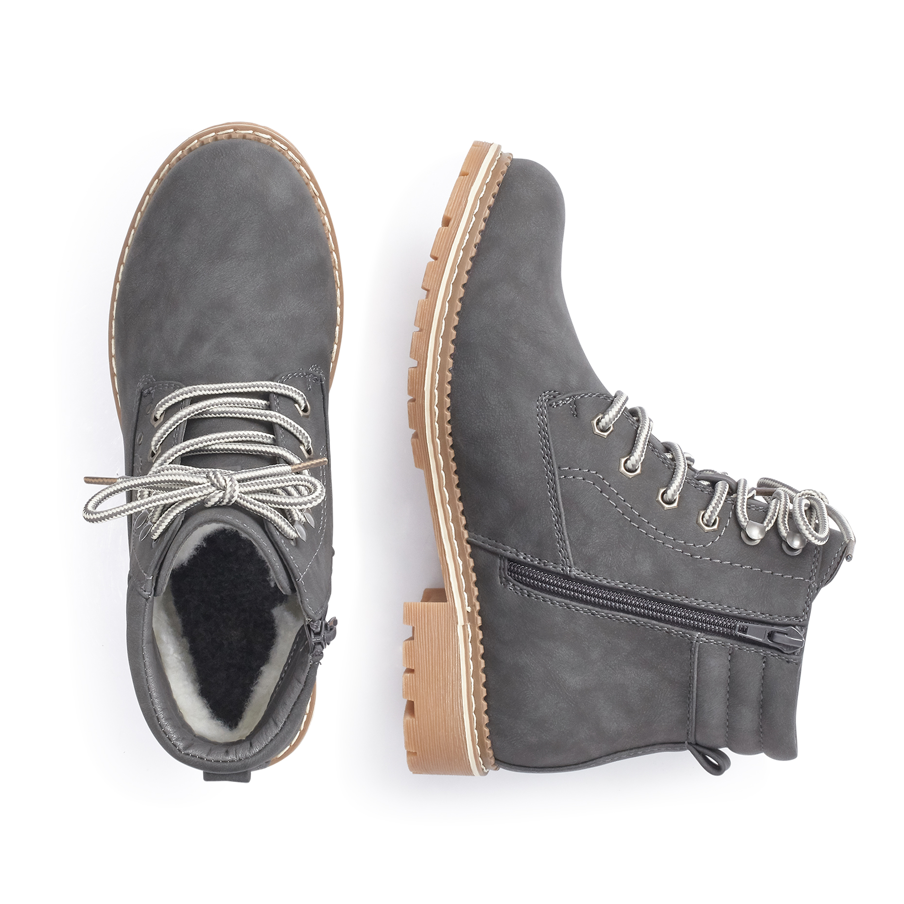 Ботинки женские,немецкого бренда Rieker.Верх изготовлен из искусственной кожи граффитного цвета. Материал подкладки шерсть.Благодаря инновационной климатической мембране «RiekerTex» – будет поглощающать и отталкивать влагу и грязь. Таким образом,