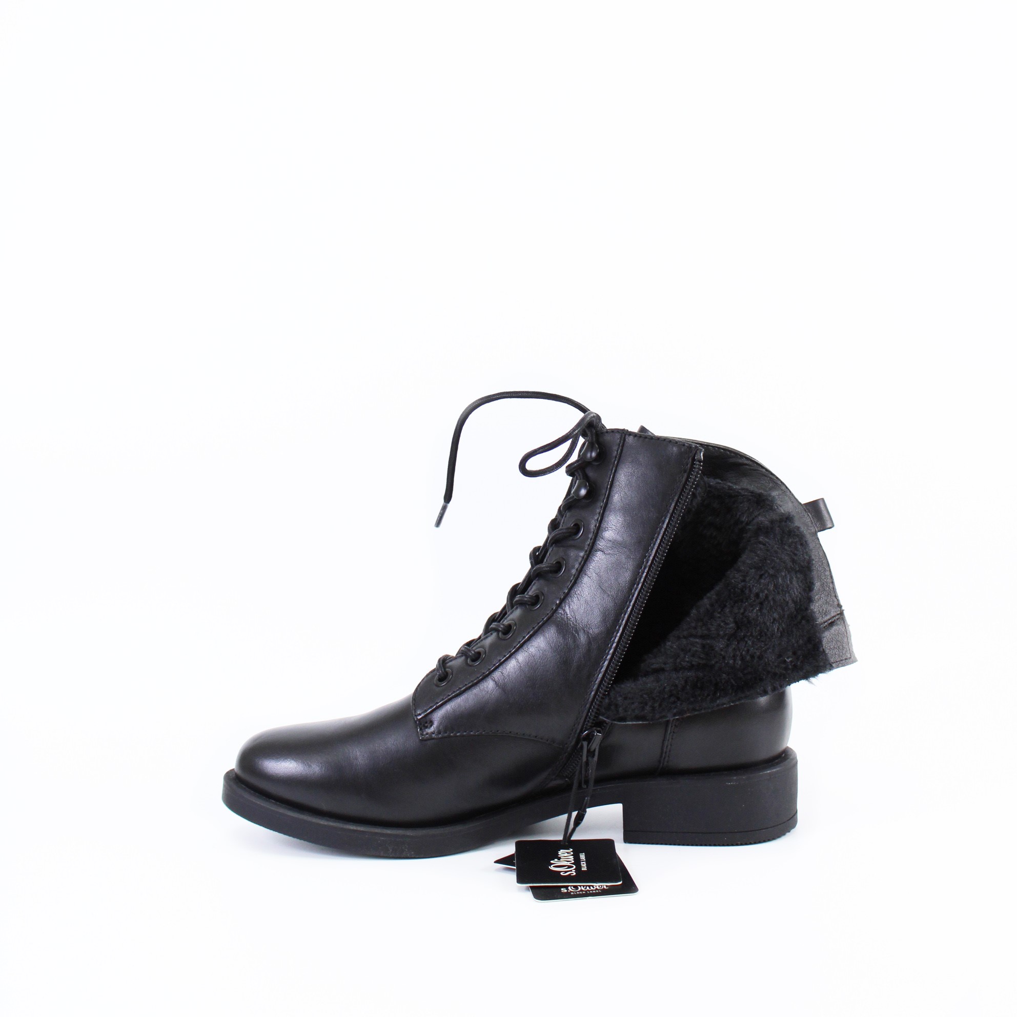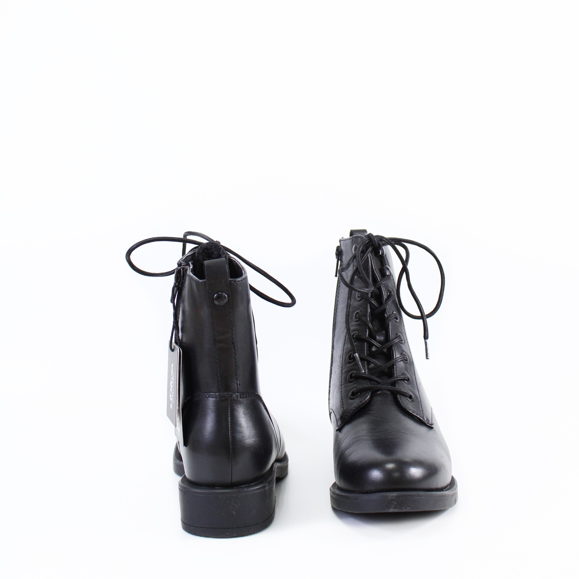—Черные кожаные ботинки на шнурке S.OLIVER