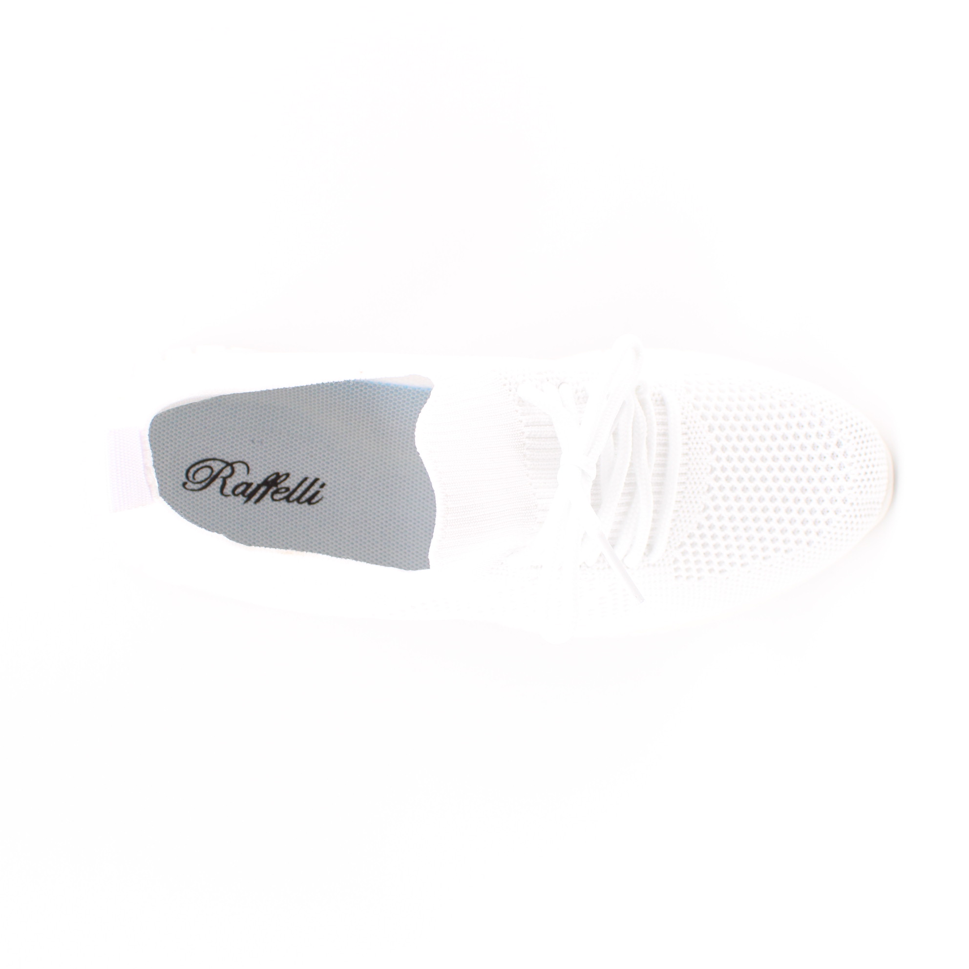 Белые текстильные кроссовки от бренда RAFFELLI.