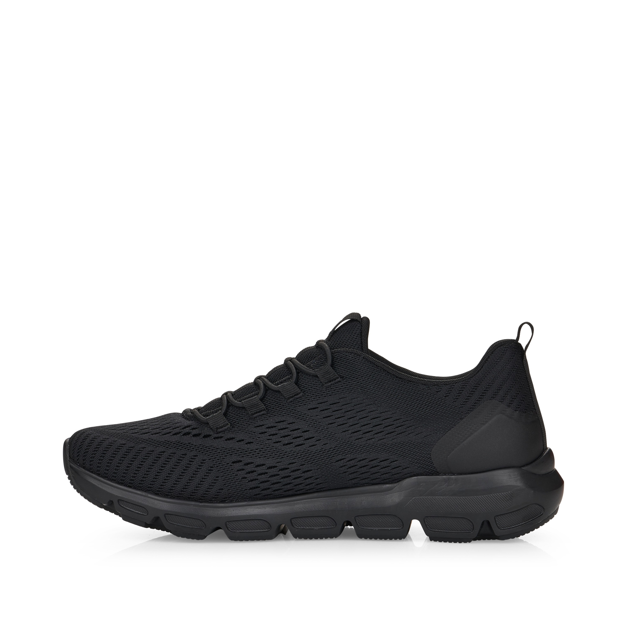 Кроссовки черные от немецкого бренда Rieker.Стелька с технологией memory soft (с эффектом памяти), подстраиваются под индивидуальные особенности стопы, принимая наиболее удобные формы для стопы. Подошва с повышенной упругостью-являются не пассивным предметом гардероба, а лечебным средством. Они мягко амортизируют, снижая давление на ногу и суставы во время ходьбы или долгого стояния.