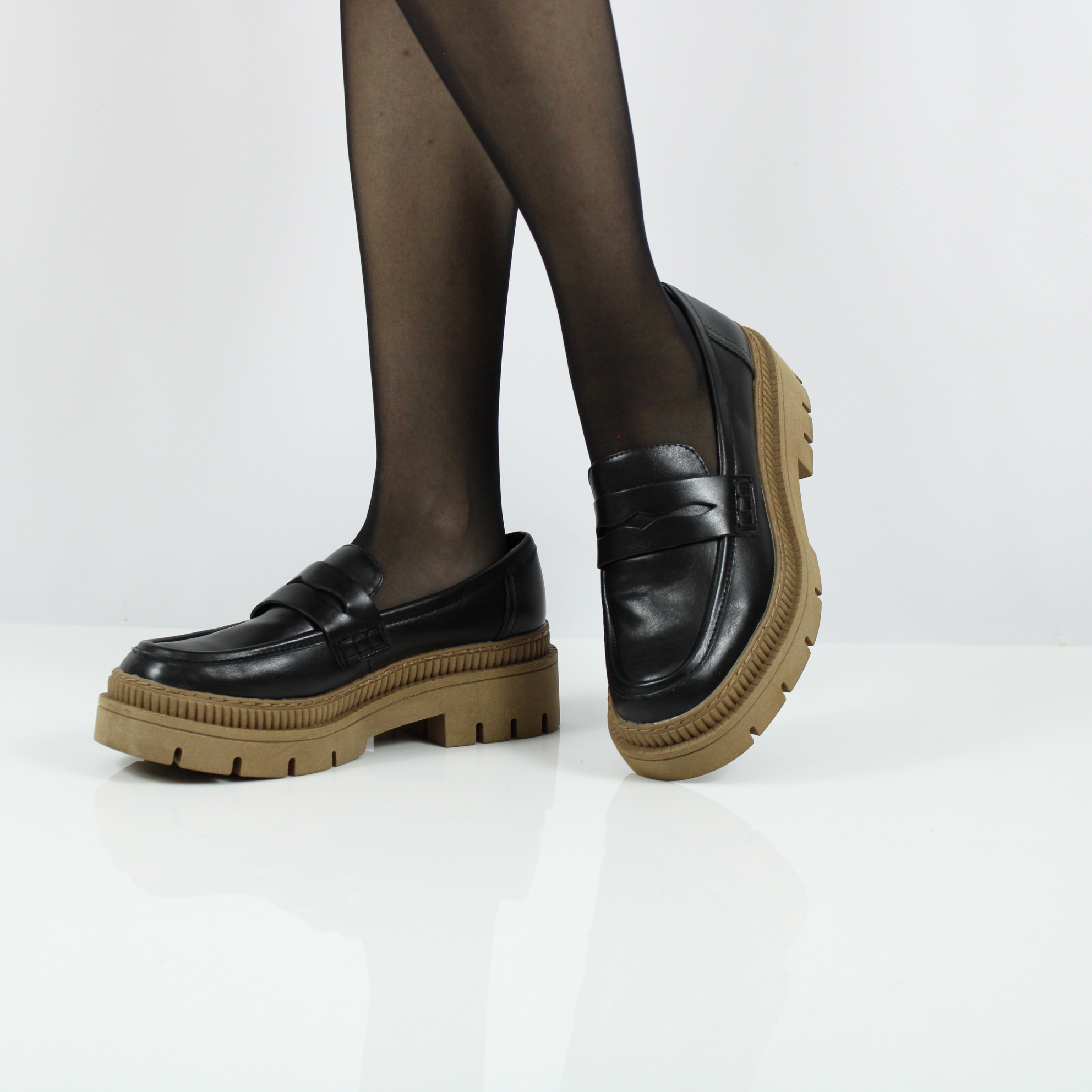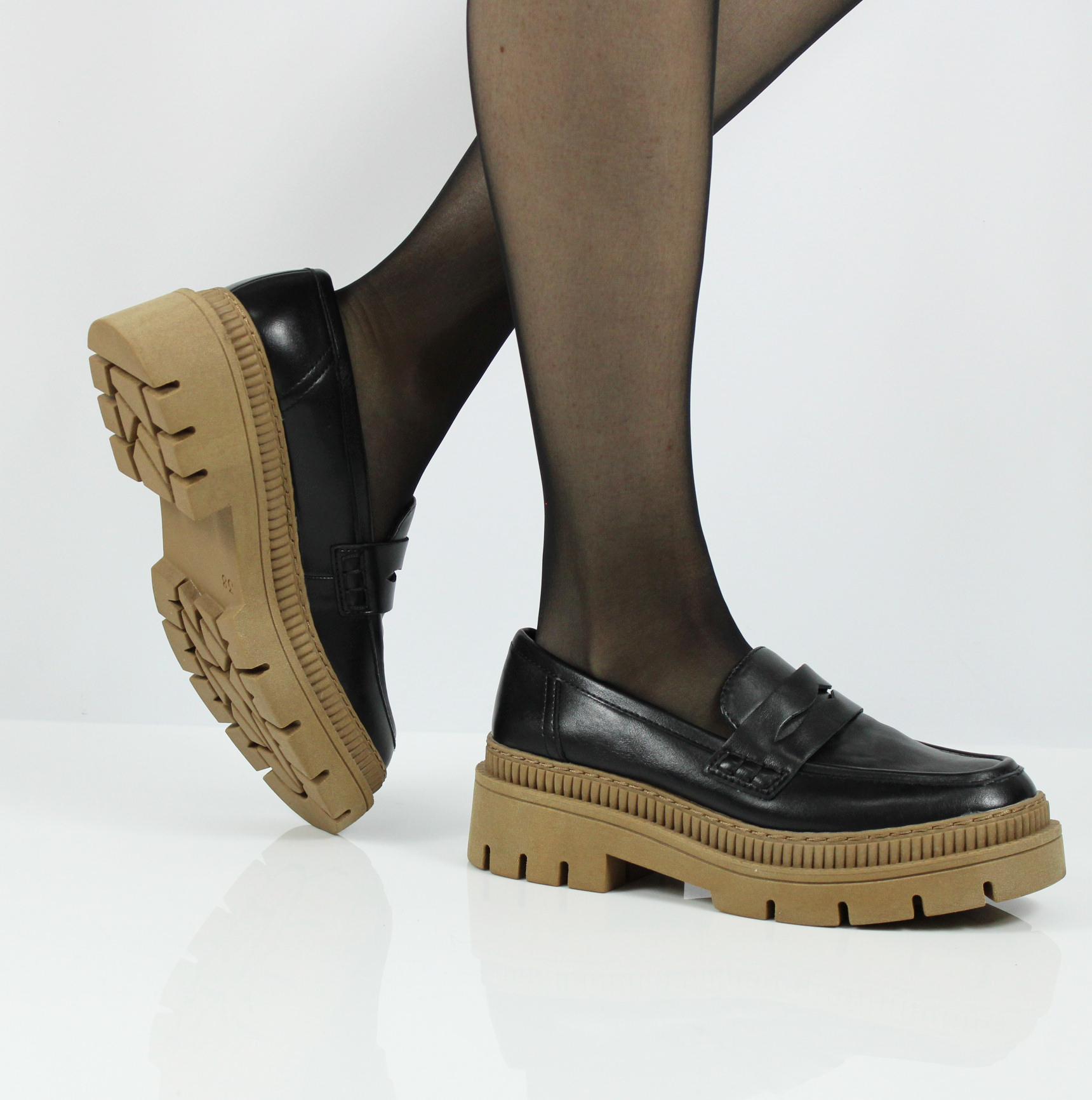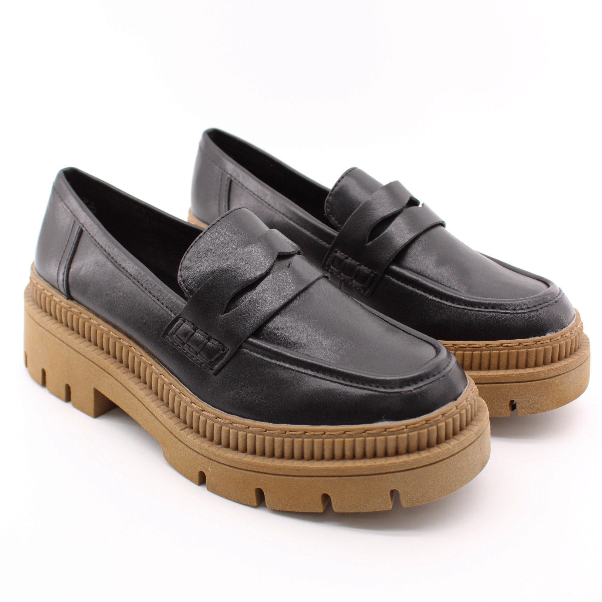 Черные лоферы на коричневой подошве от бренда MARCO TOZZI.