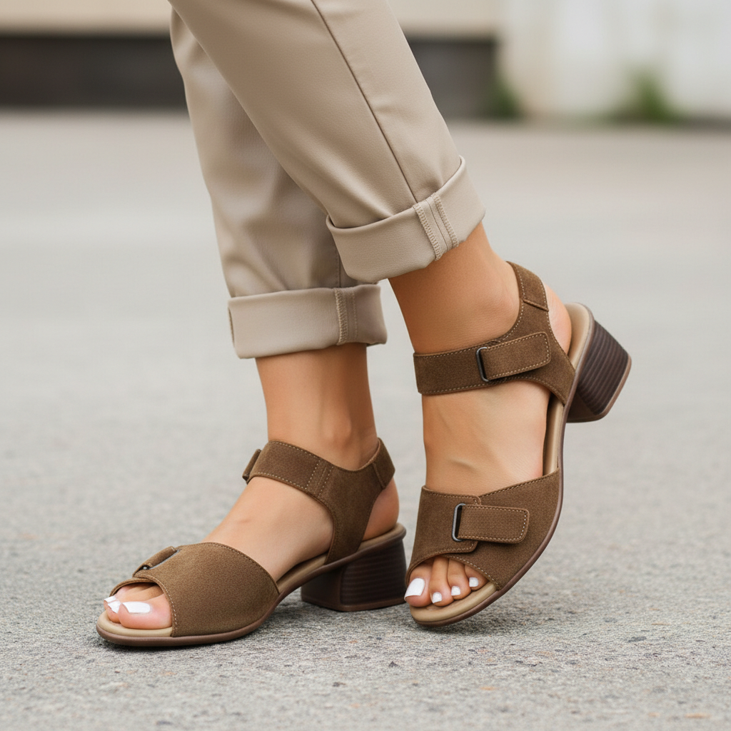 Босоножки из натуральной замши коричневого цвета.