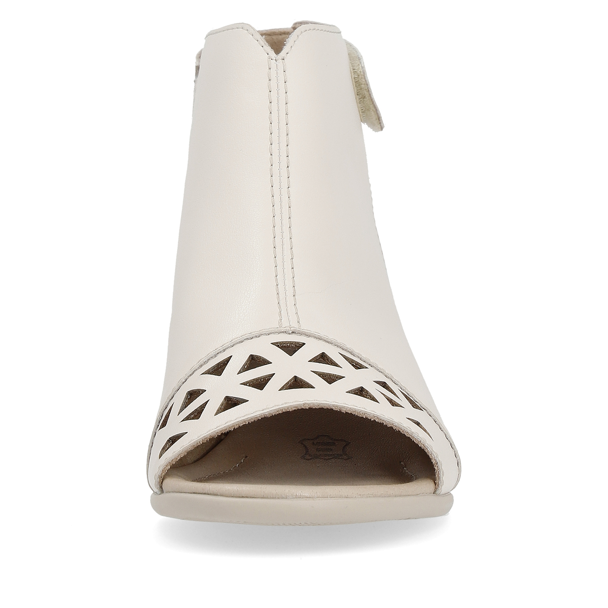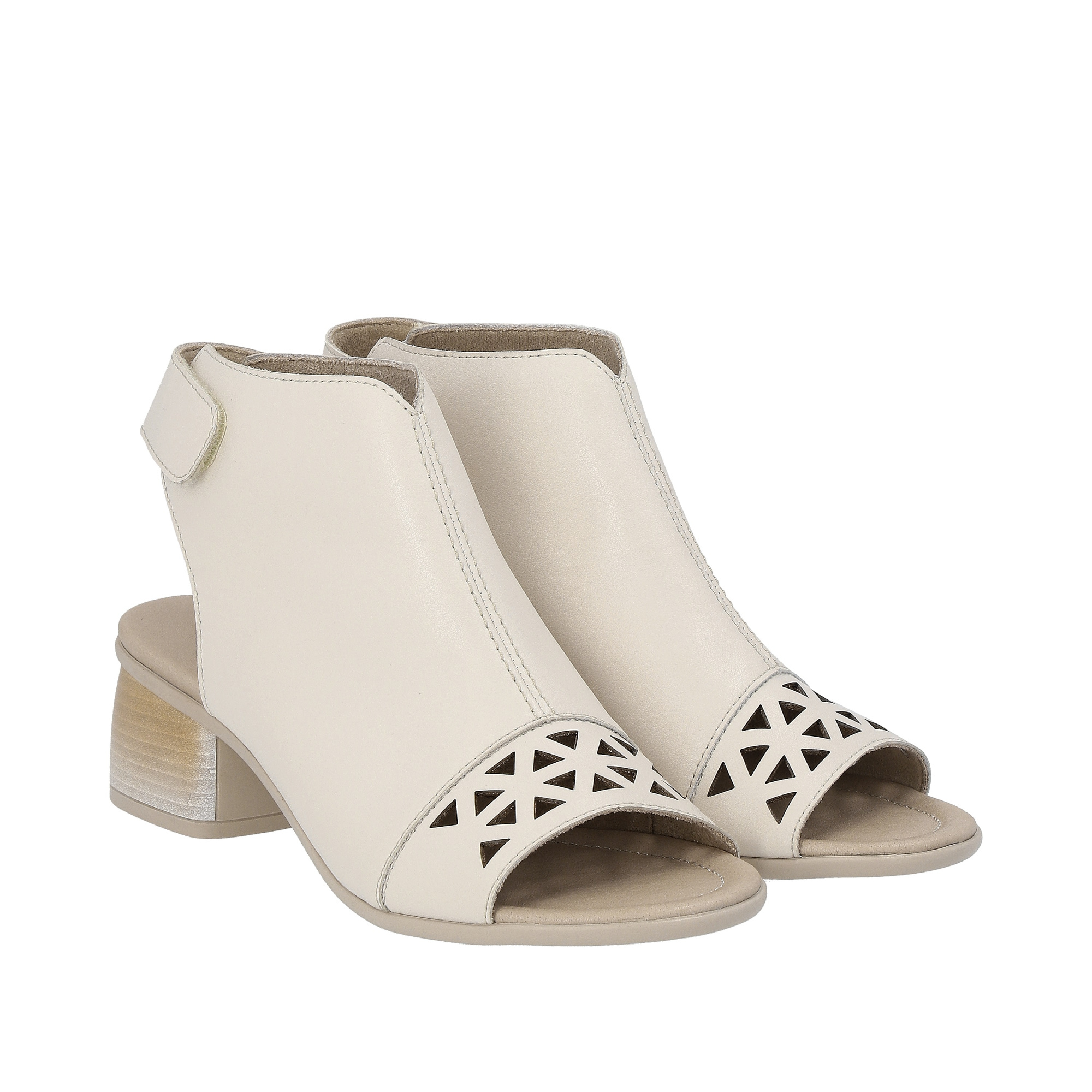 Особенностью этих босоножек является узорная сквозная перфорация спереди, которая придает им изысканный вид. Задний ремешок на липучке обеспечивает удобную посадку и фиксацию на ноге. Детали: - застежка - залип