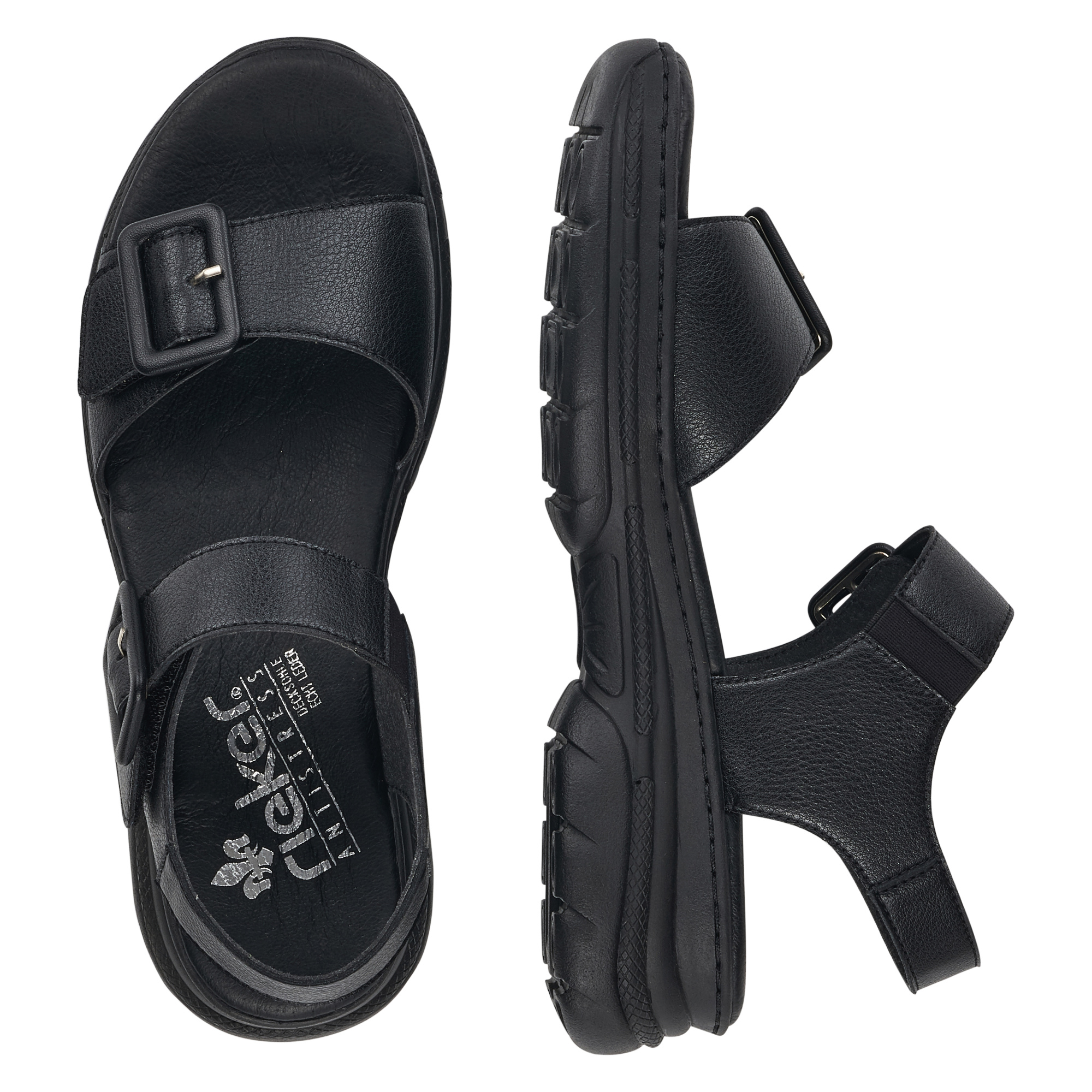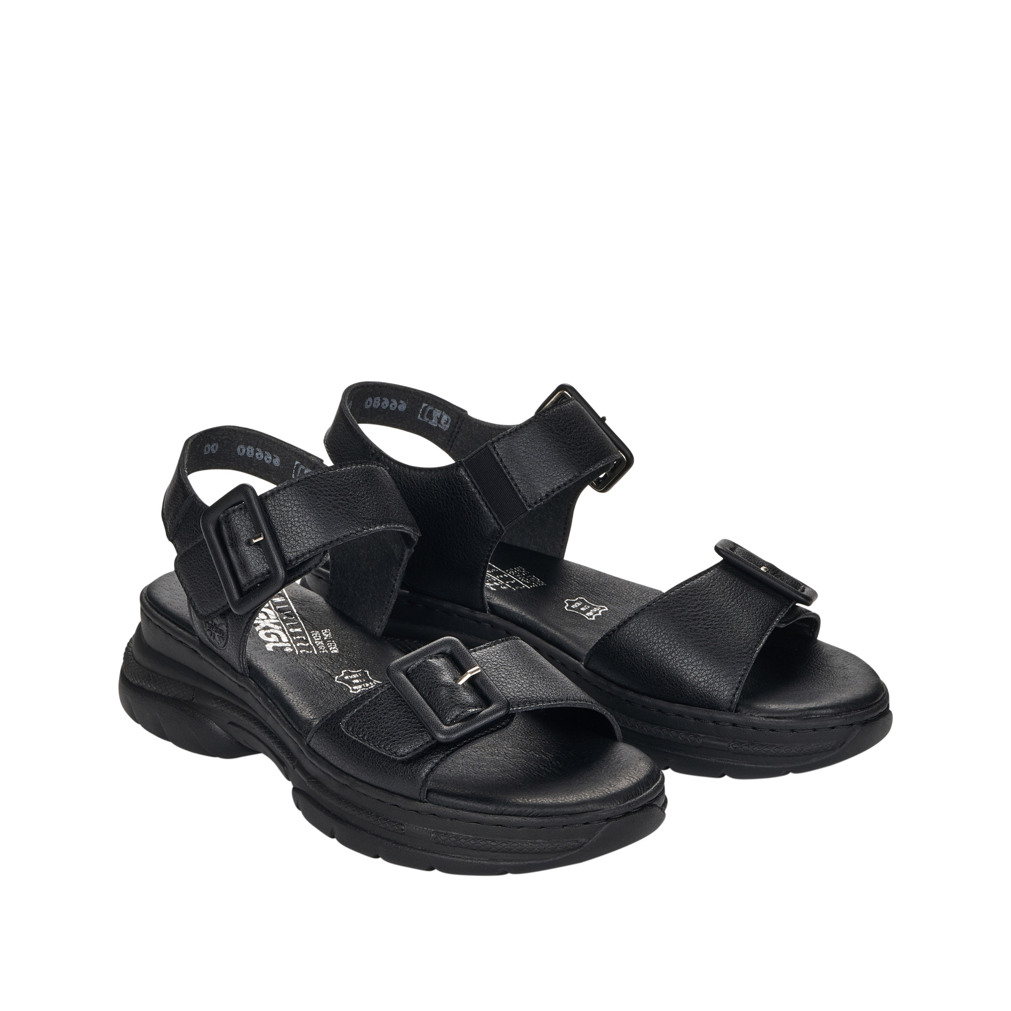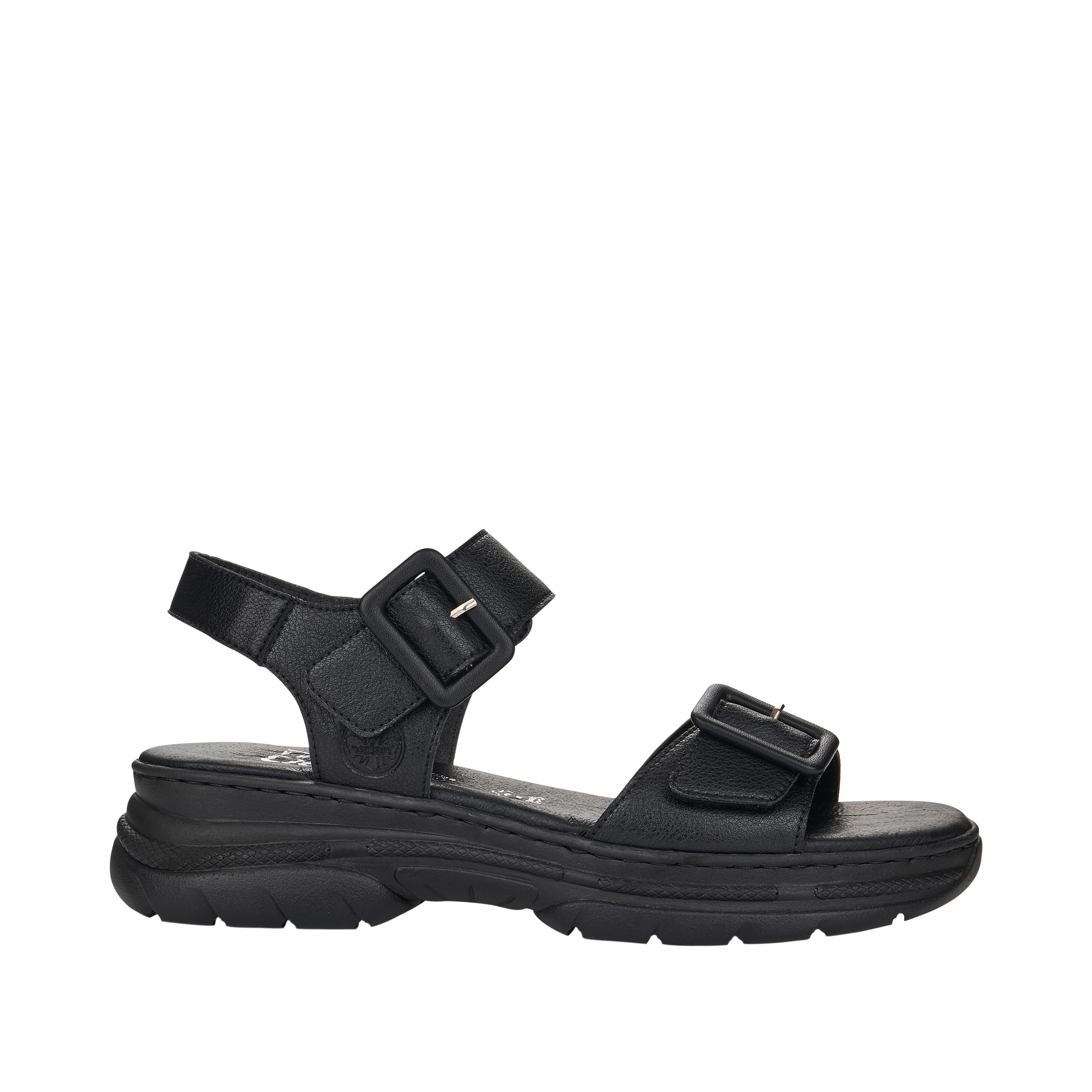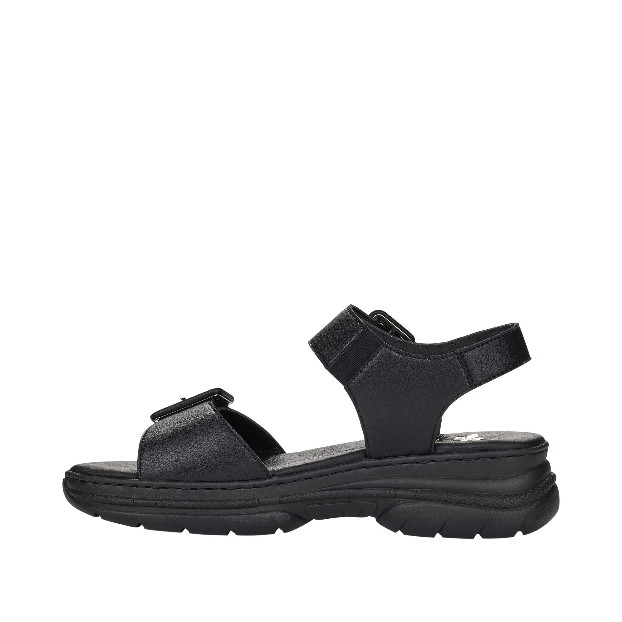 Босоножки RIEKER  сочетание максимального удобства, износостойких материалов и презентабельного вида. Модель разработана с учетом модных трендов (черный цвет актуален в этом сезоне) и адаптирована к интенсивной носке каждый день. Rieker отлично сидит, благодаря продуманной конструкции, и снижает тем самым нагрузку на ноги, что особенно заметно, если вы весь день активно двигаетесь. Плюс не требует слишком сложного ухода.