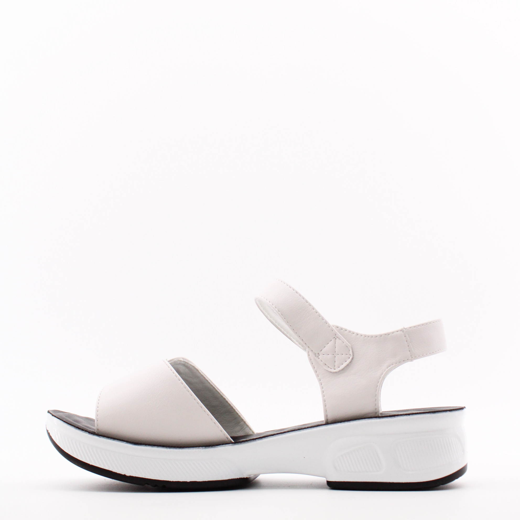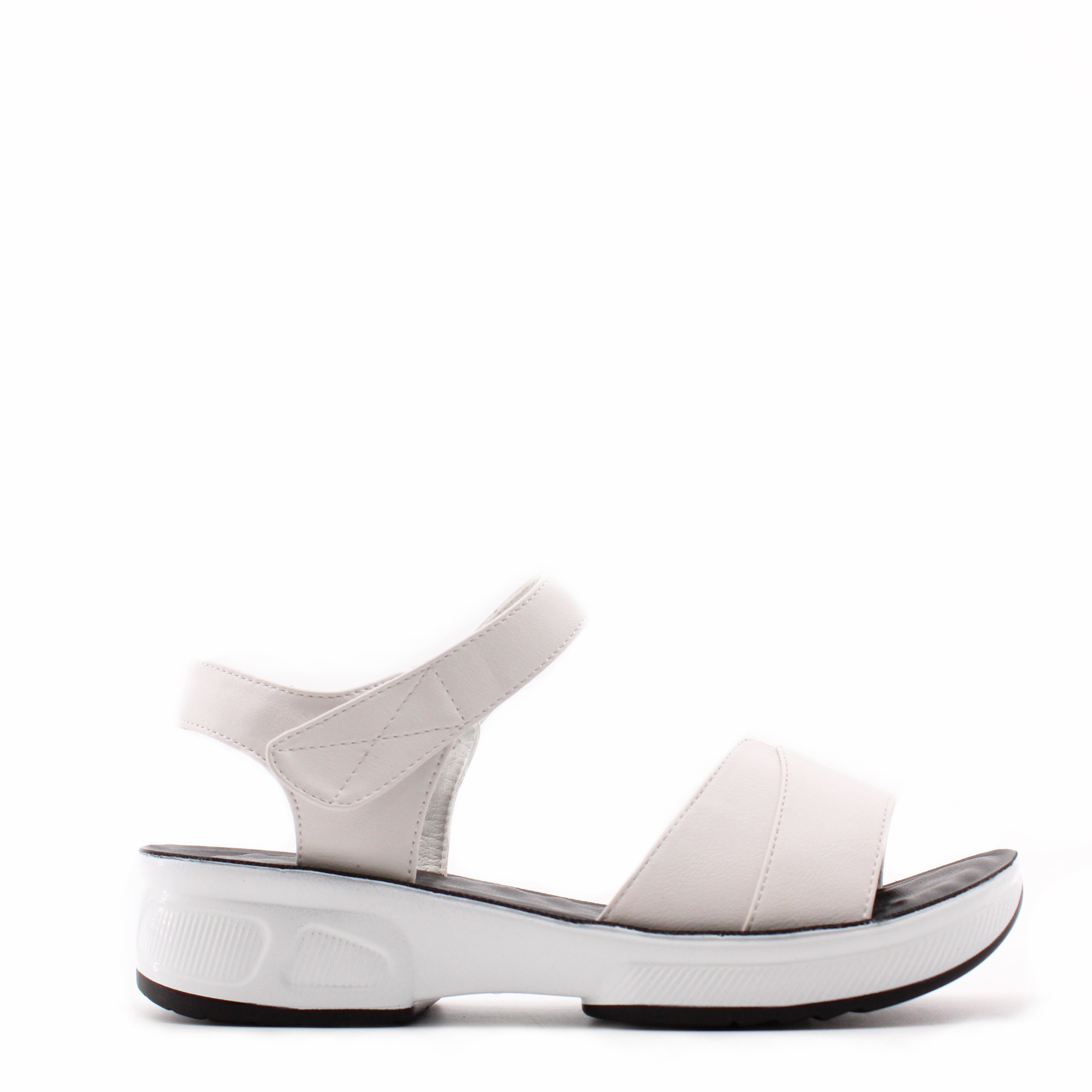 Летние босоножки белого цвета на спортивной подошве. Модная модель имеет женственный дизайн.