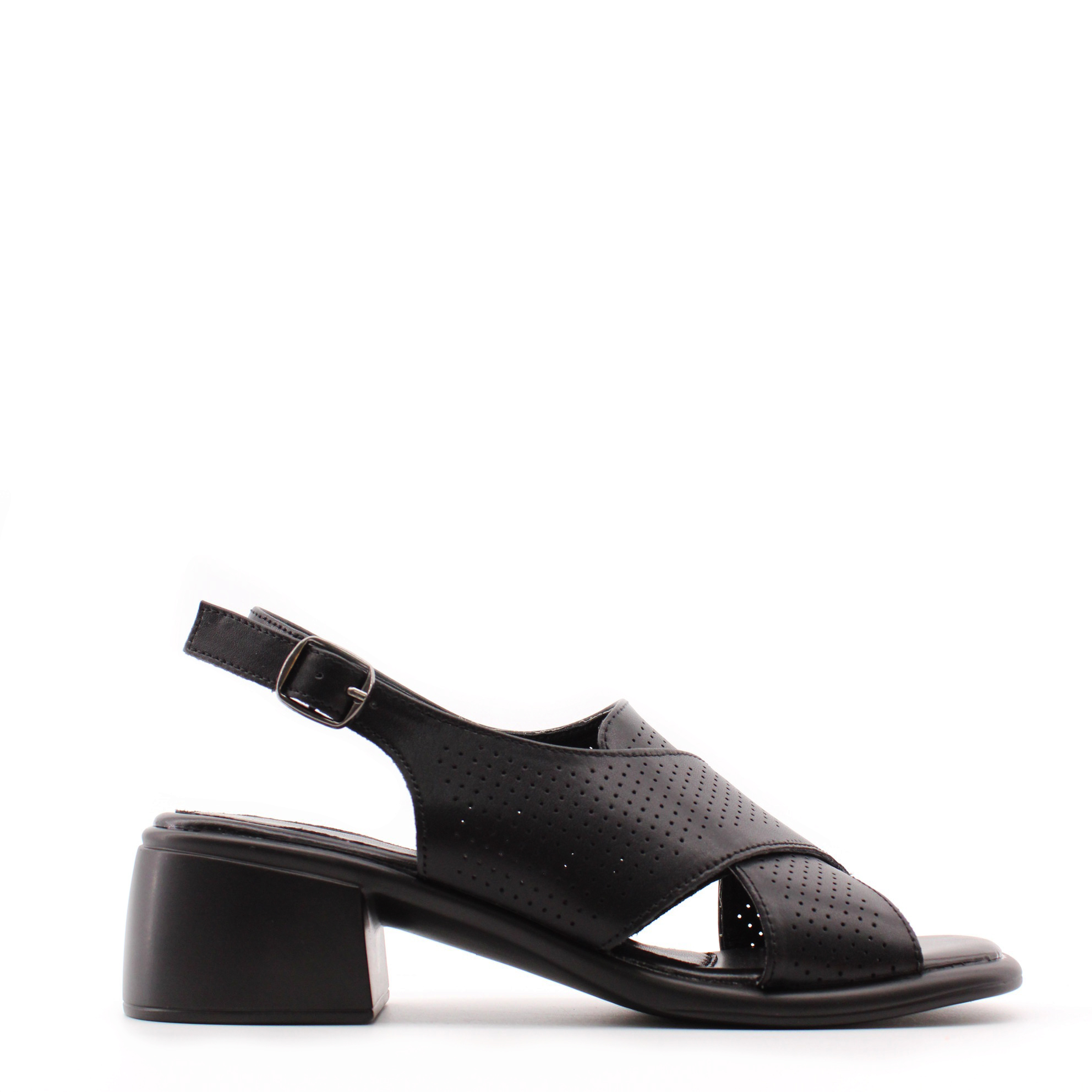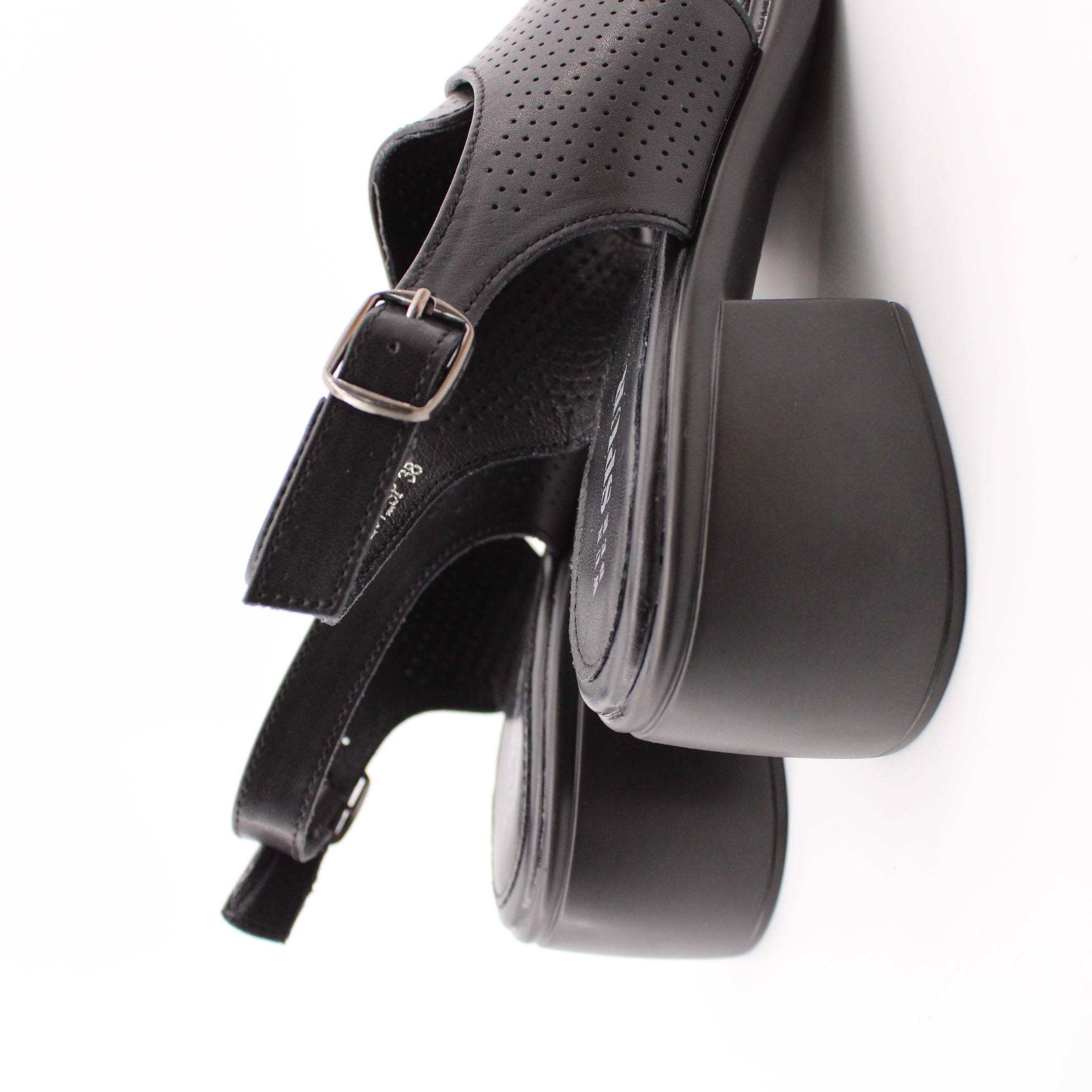 Босоножки SPUR крупная перфорация создаст эффект воздухопроницаемости. Устойчивый каблук среднего размера остается всегда в моде.