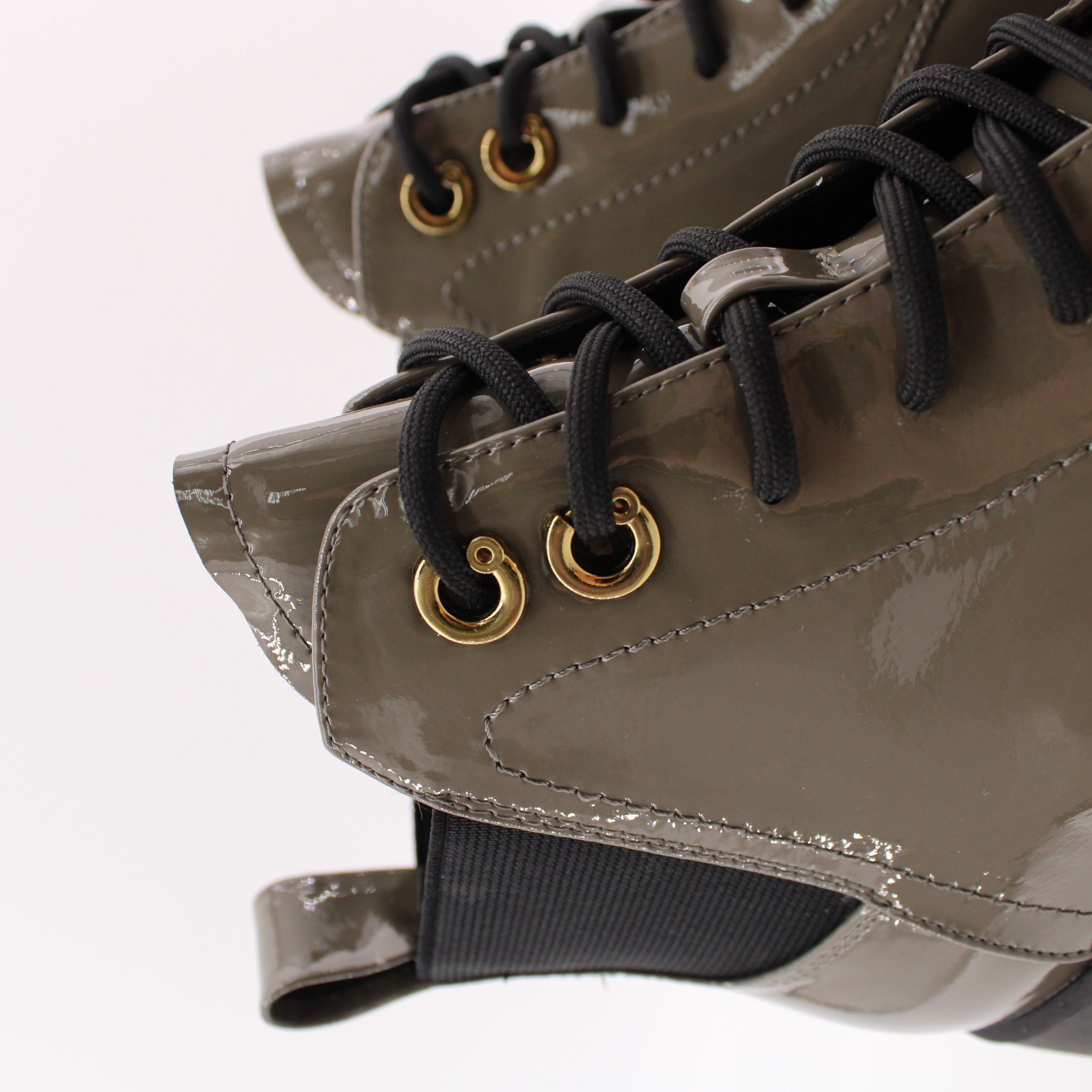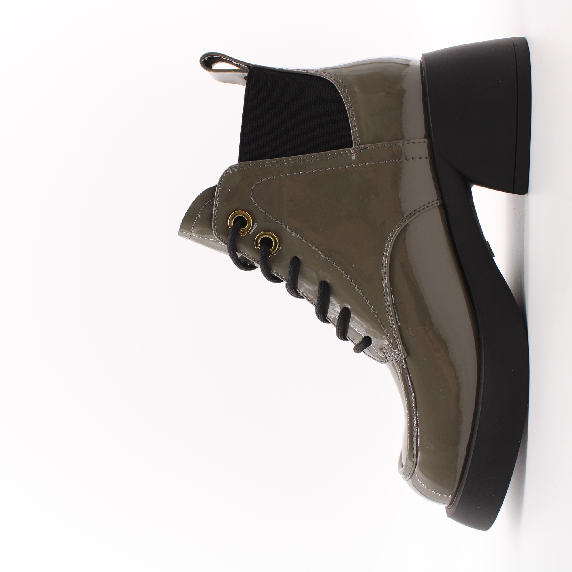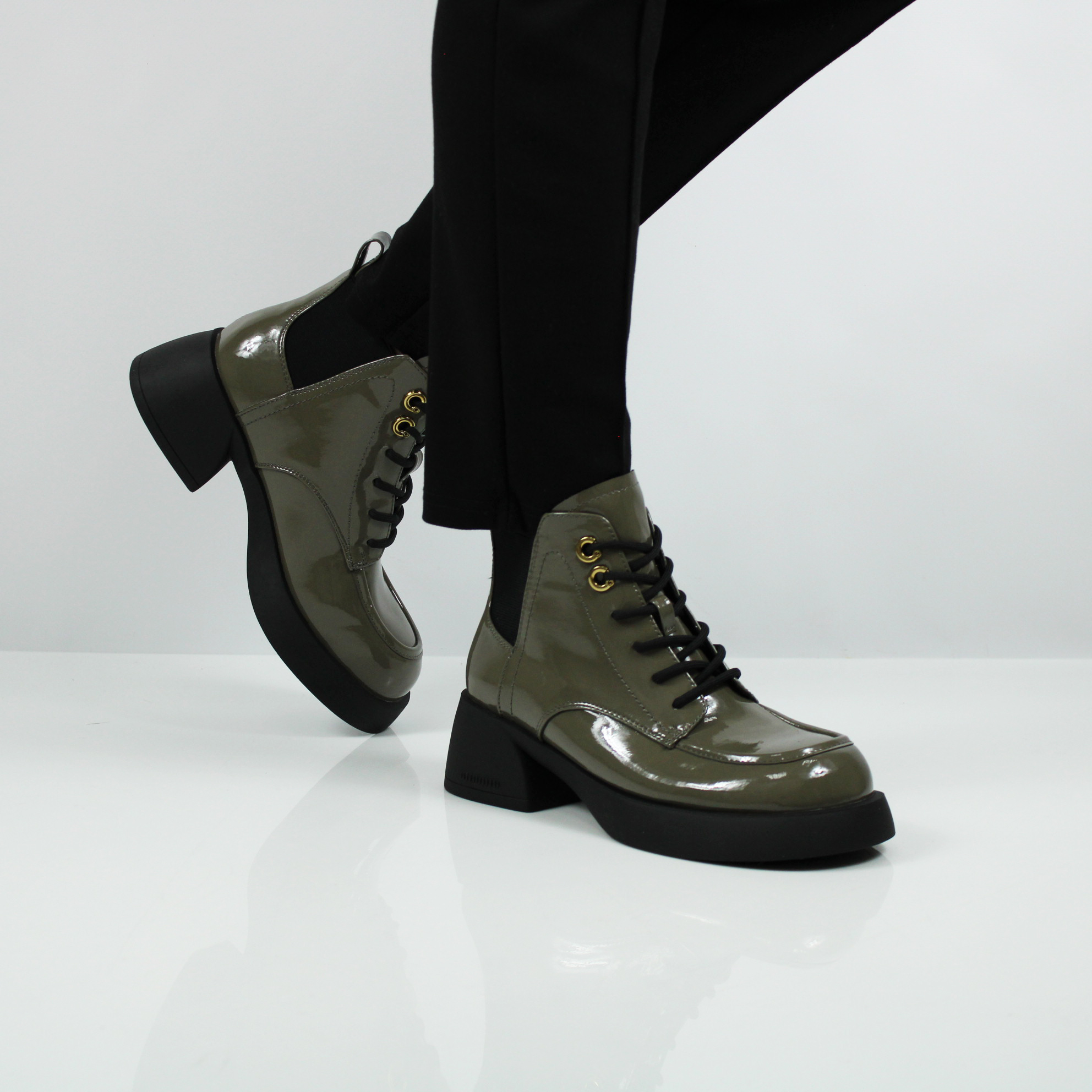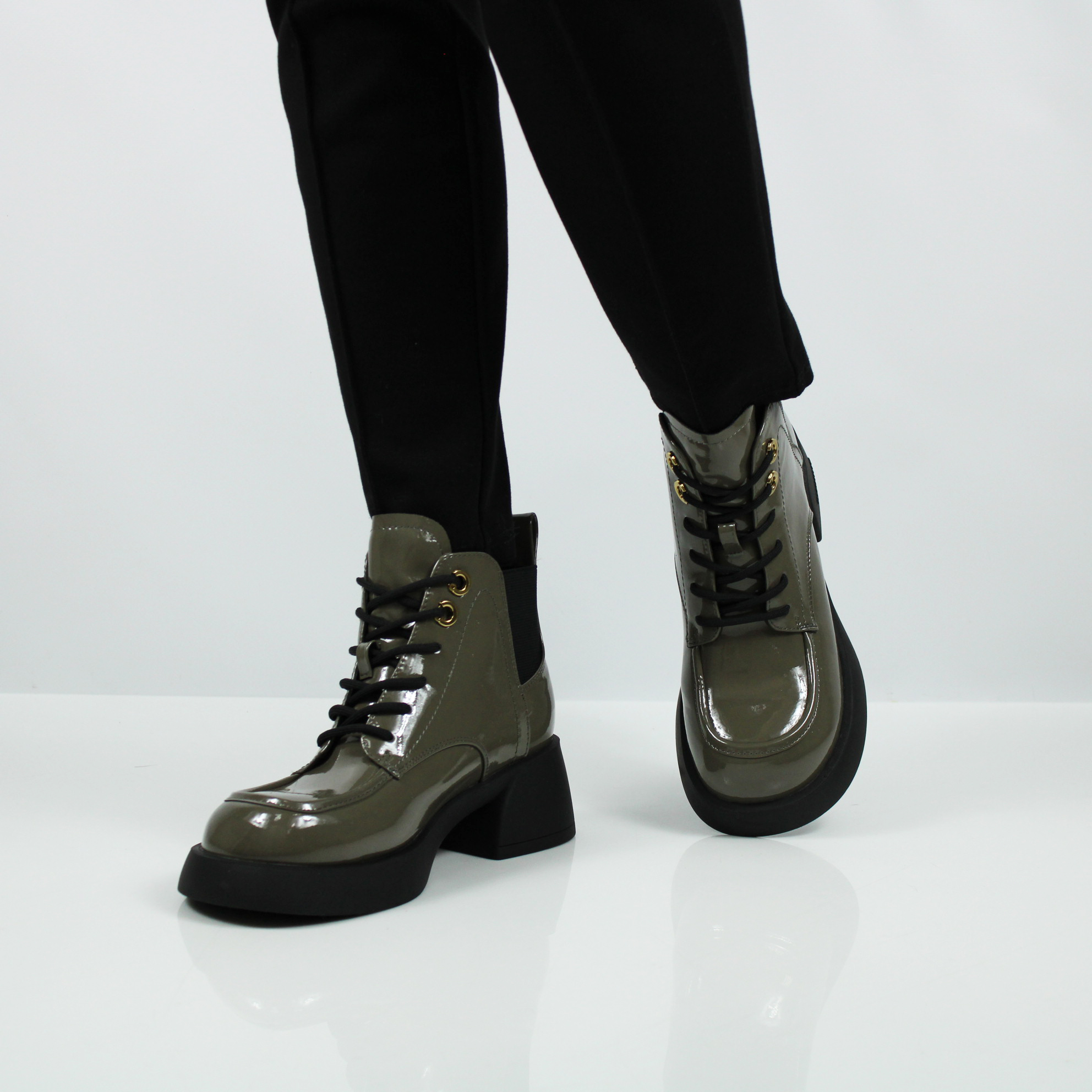 Лаковые ботильоны цвета хаки.