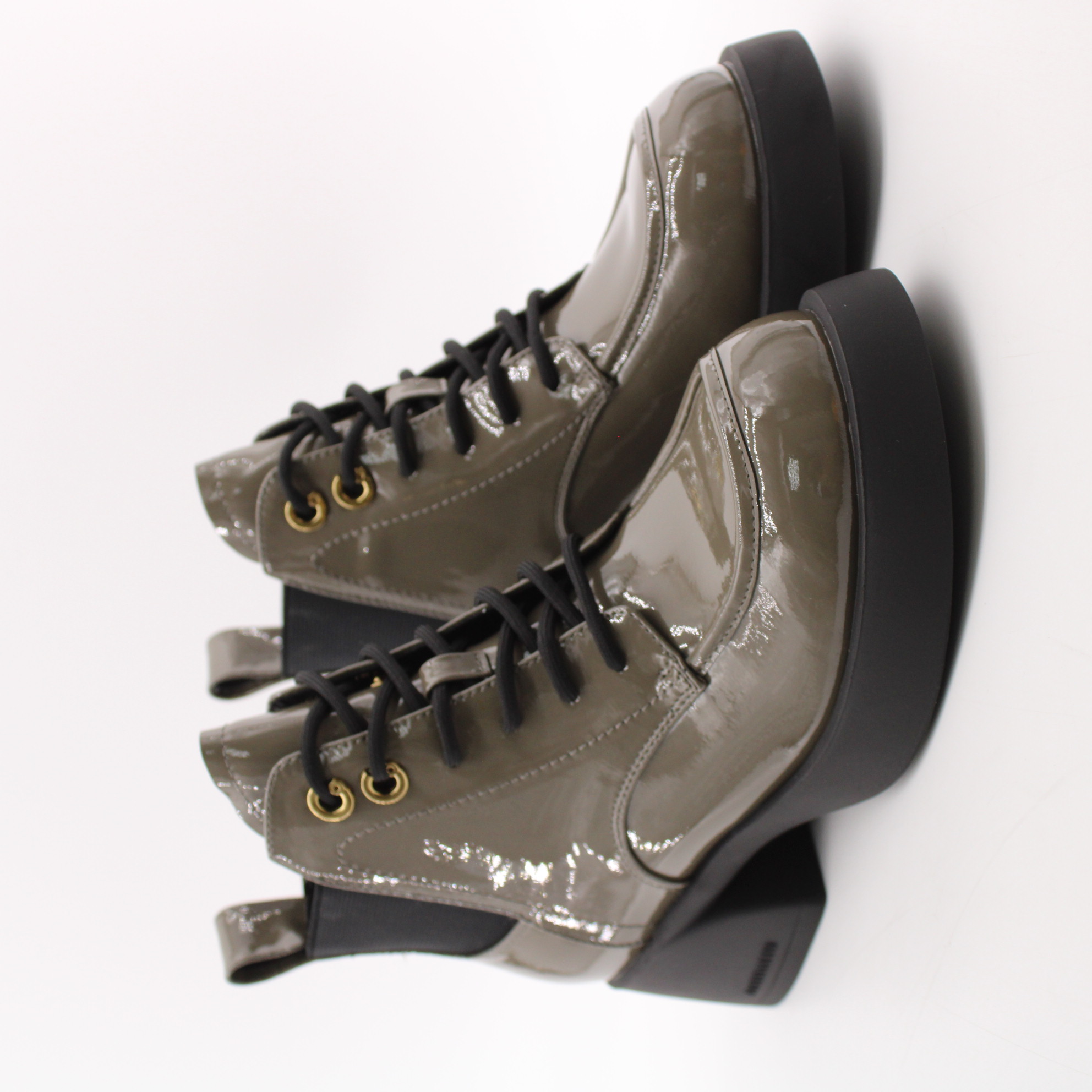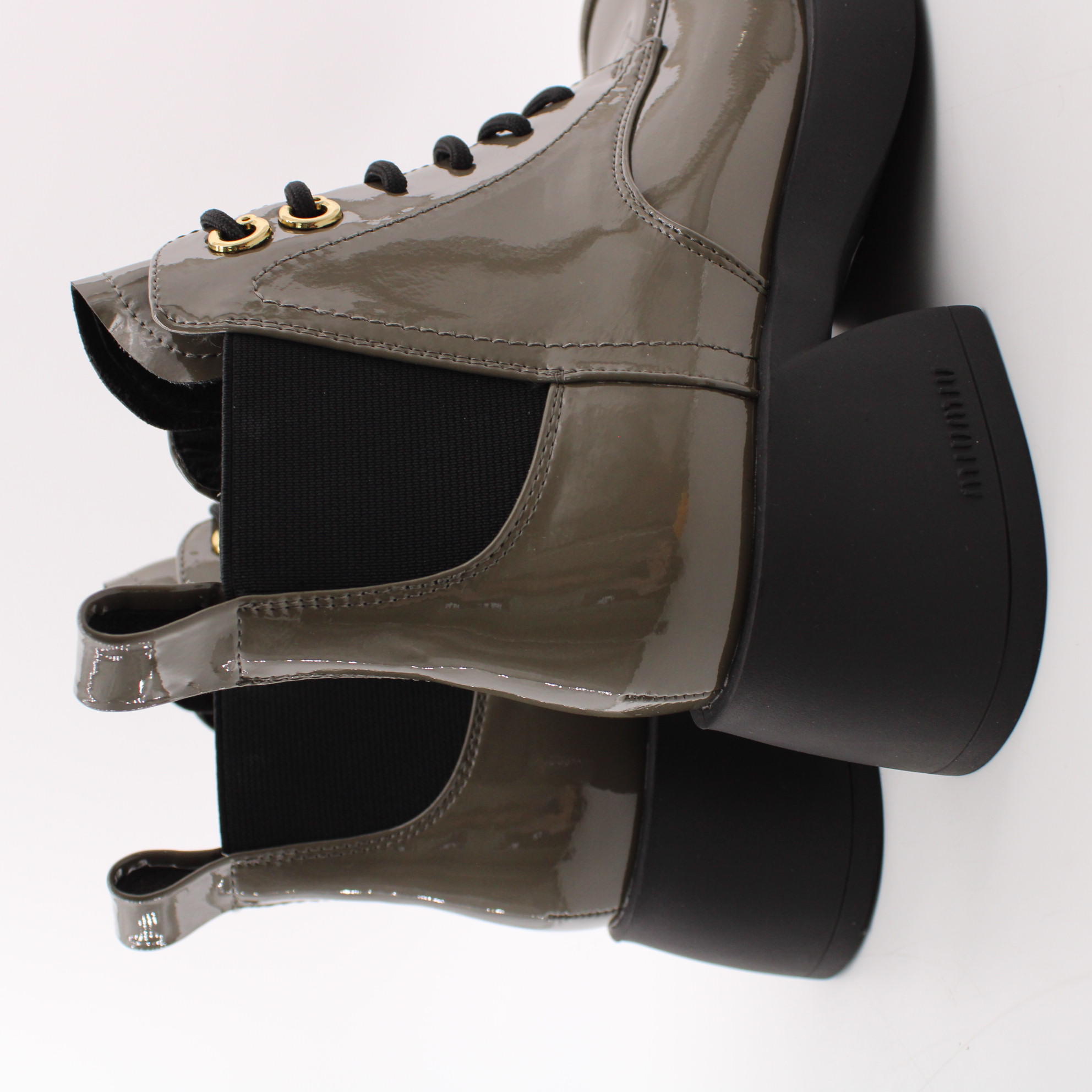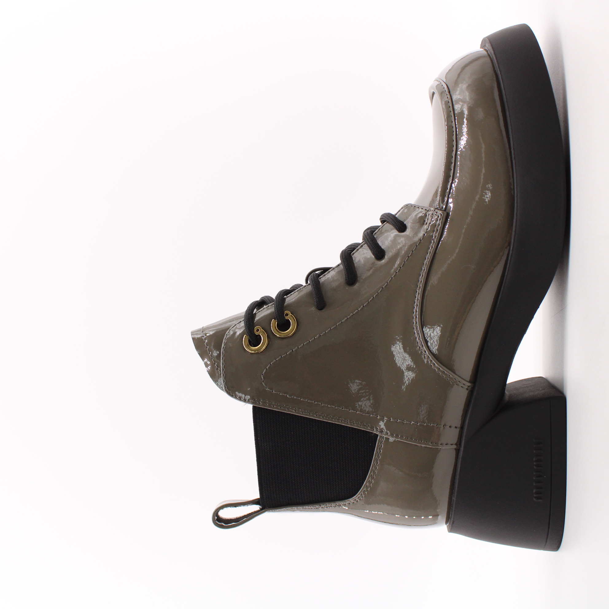 Лаковые ботильоны цвета хаки.