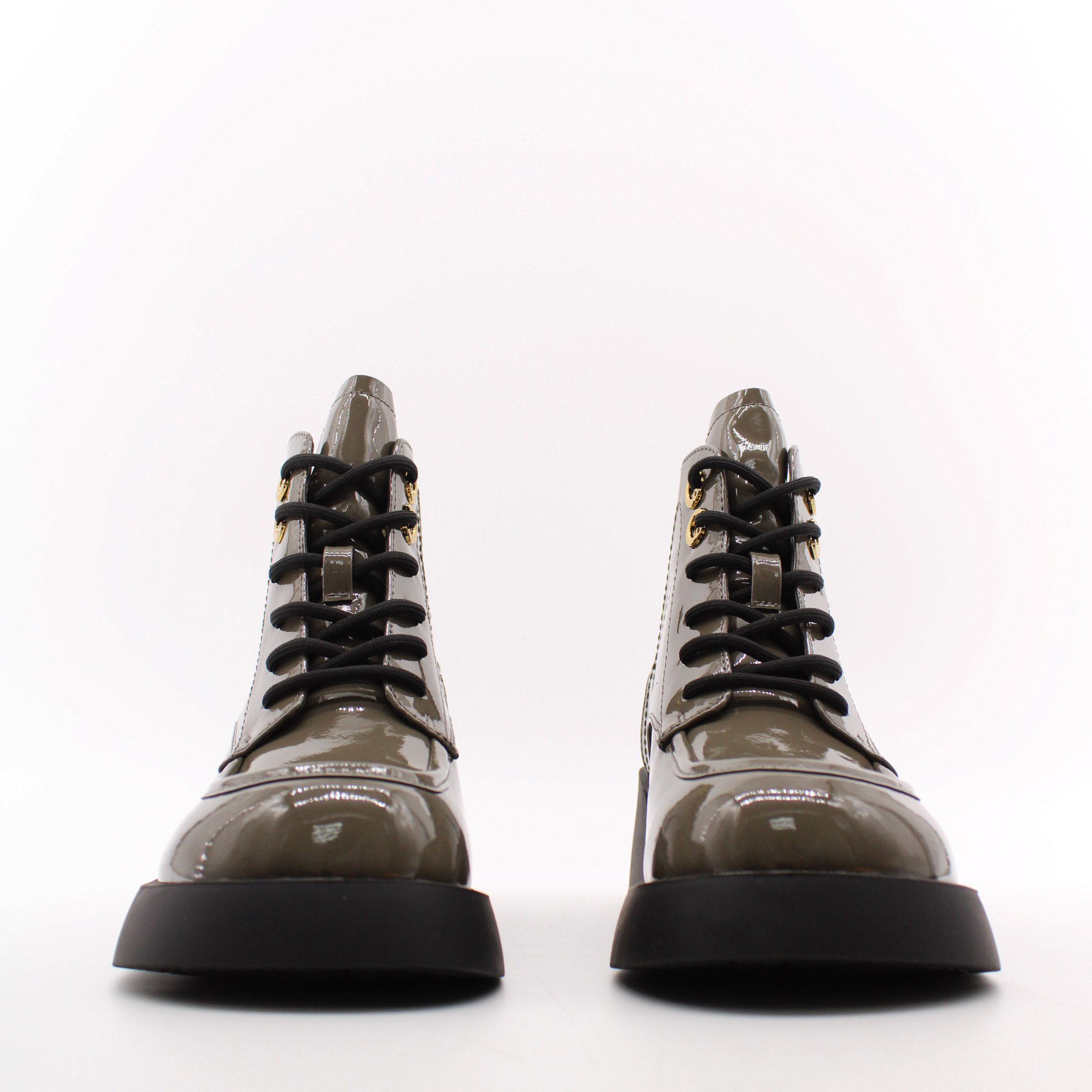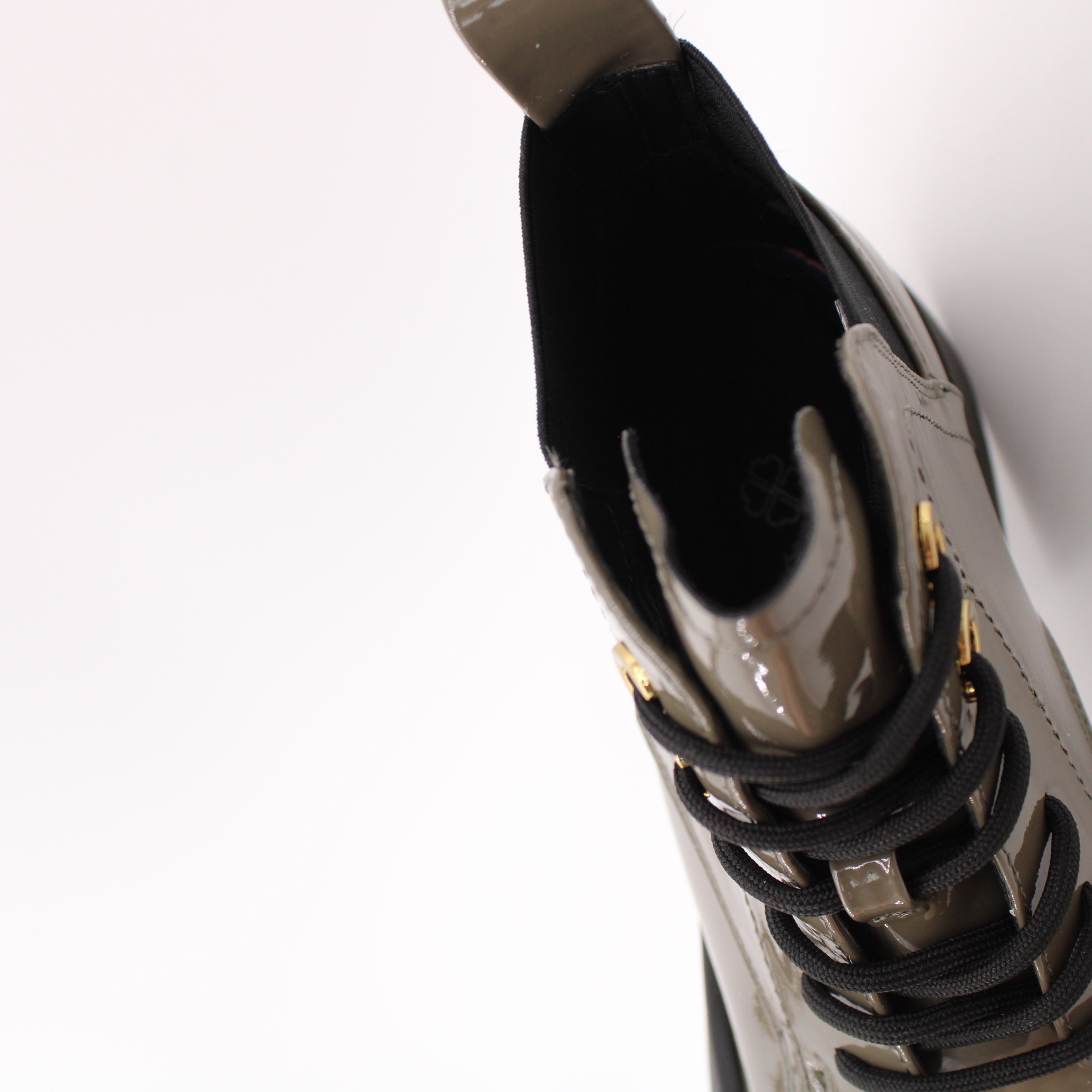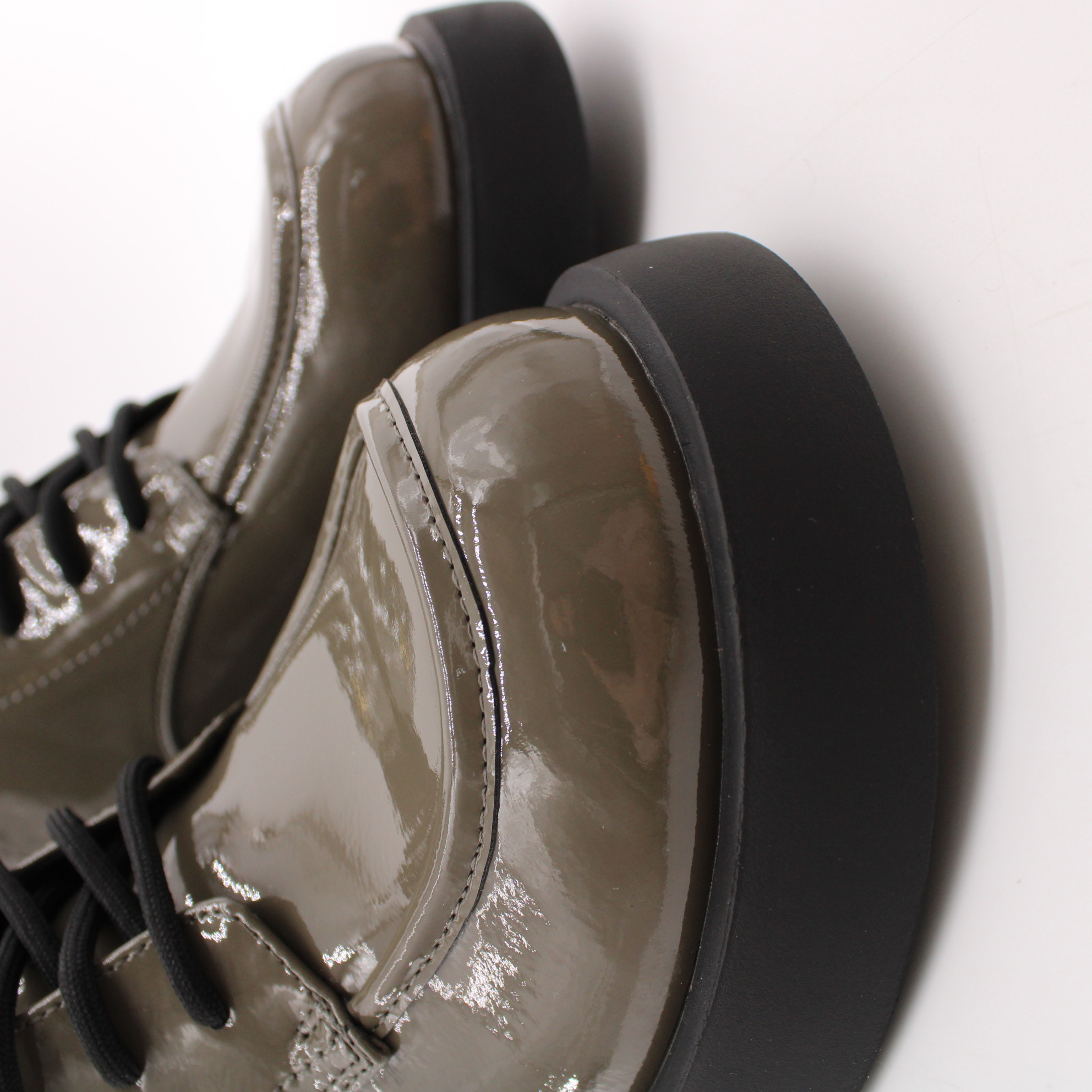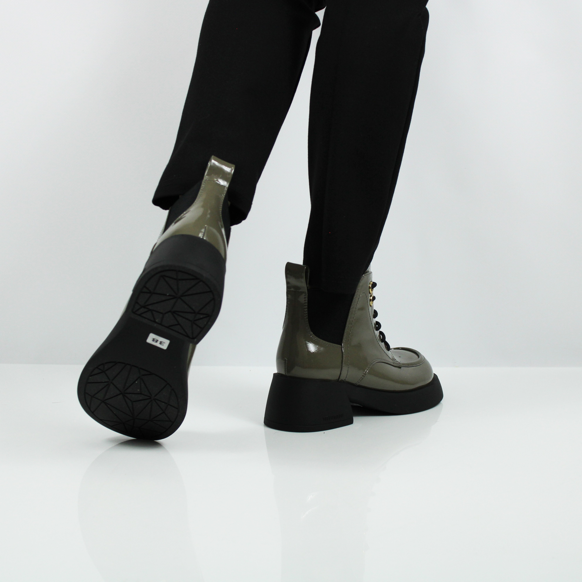 Лаковые ботильоны цвета хаки.