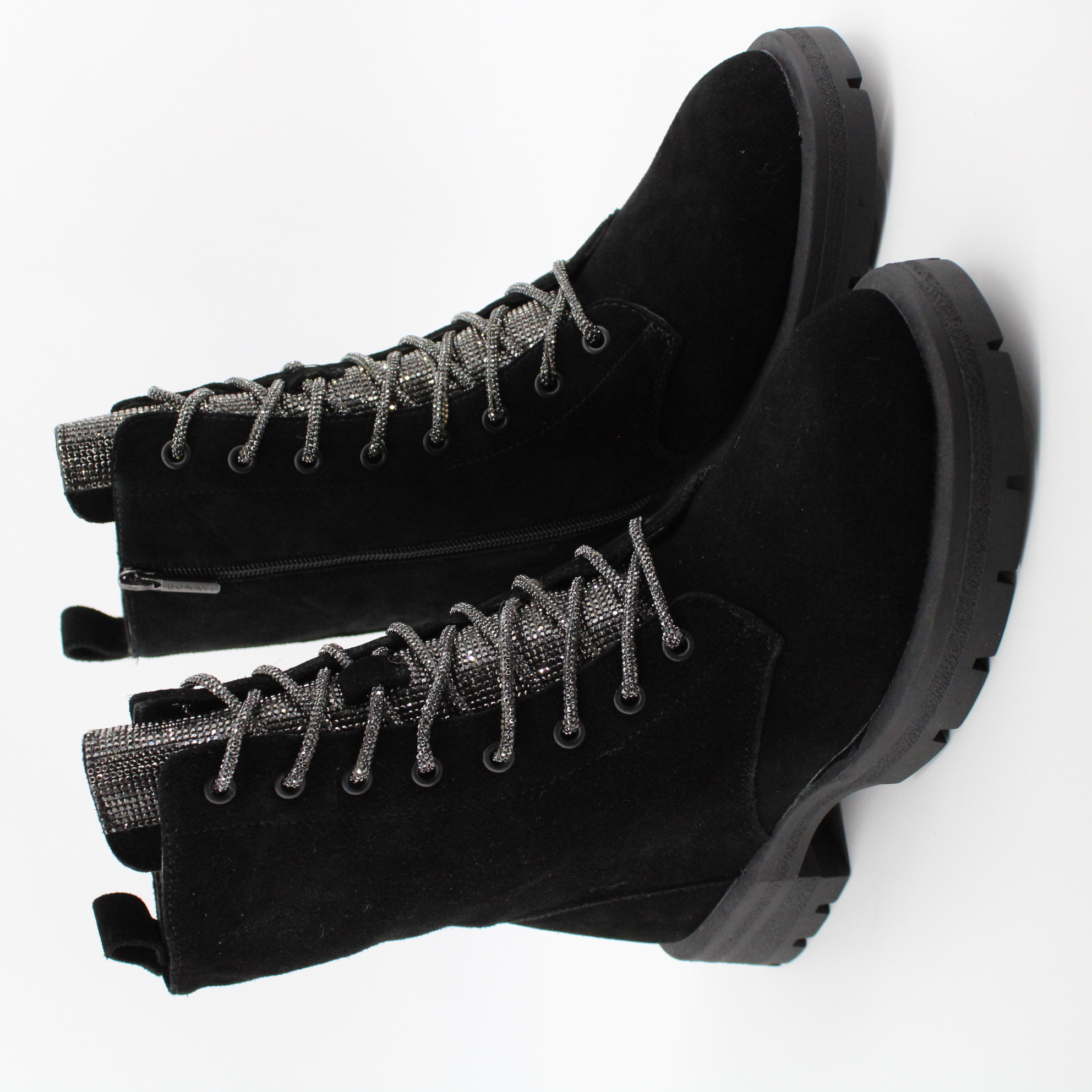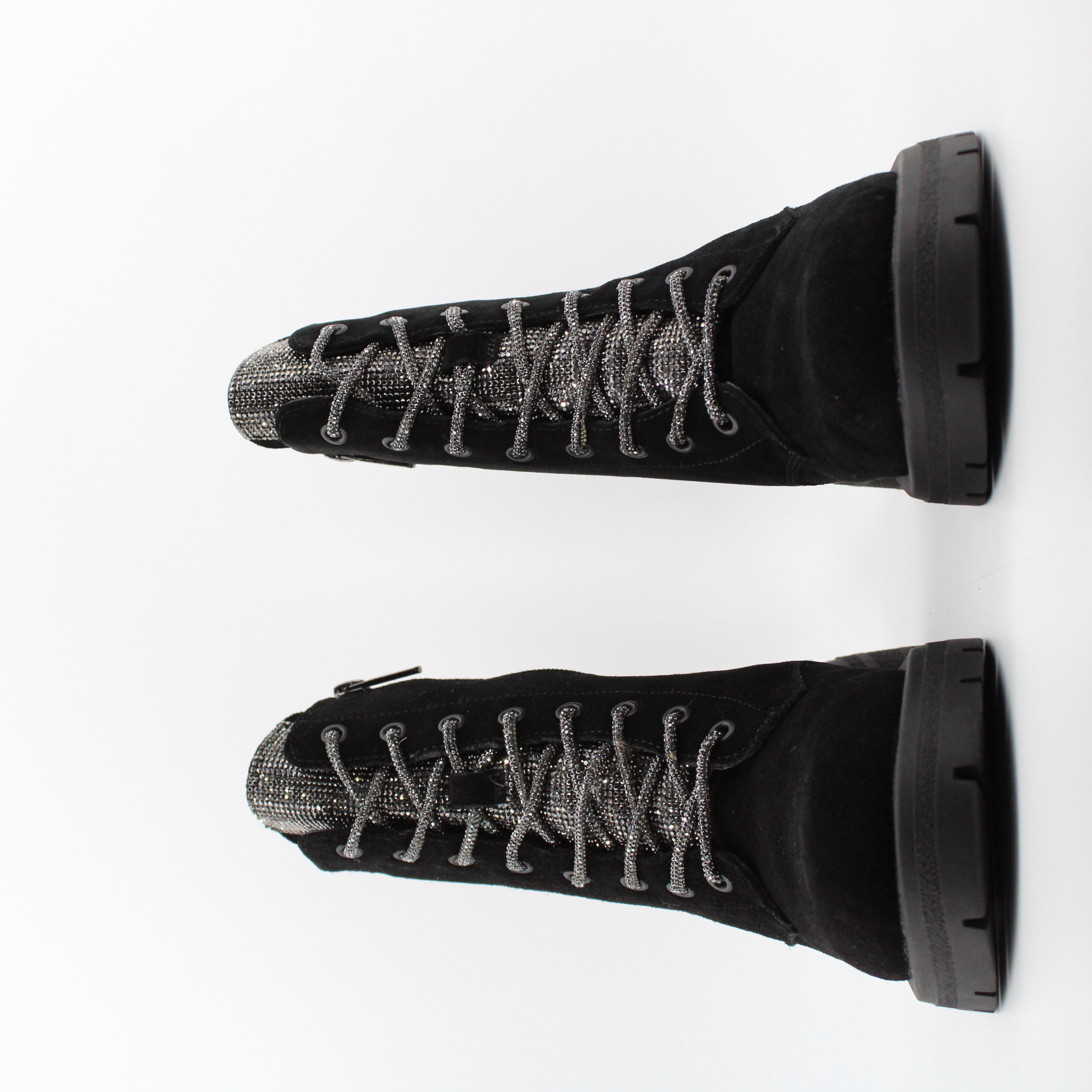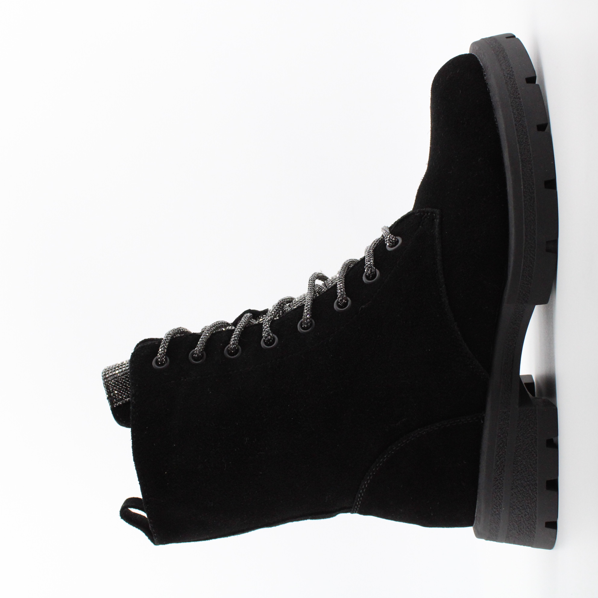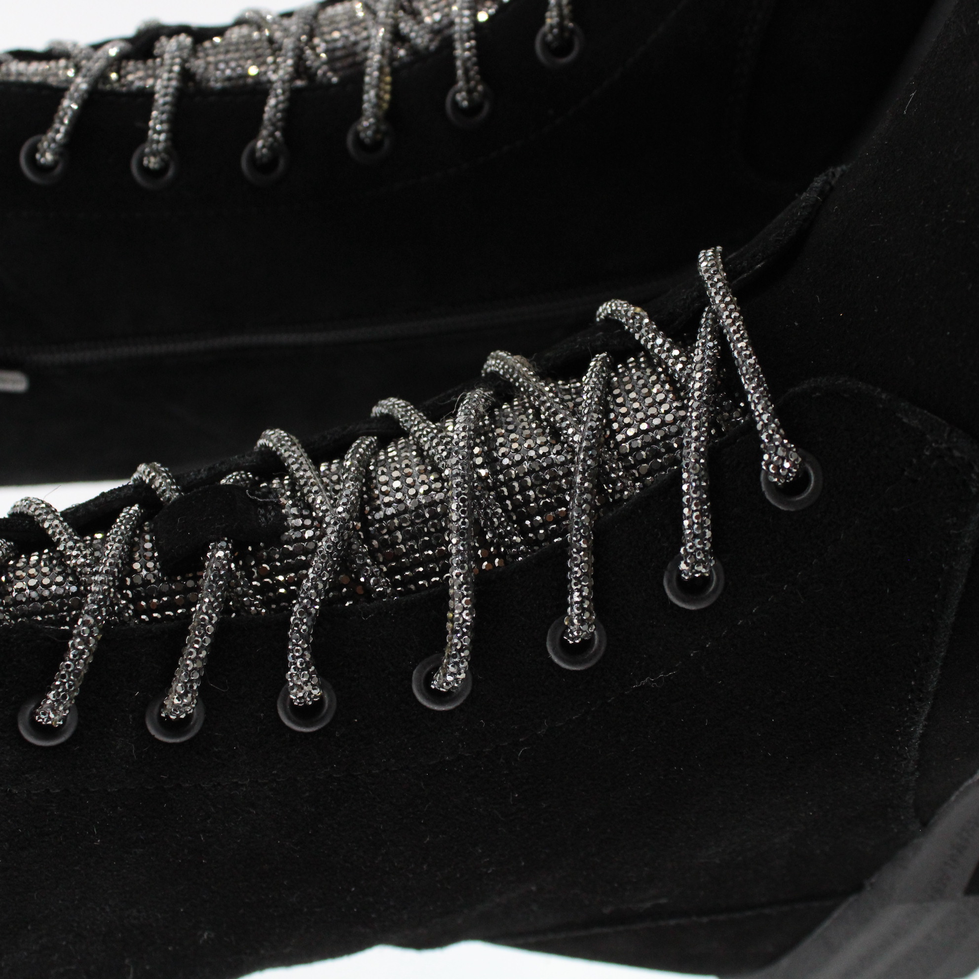 - серебристая шнуровка и декор из страз на язычке