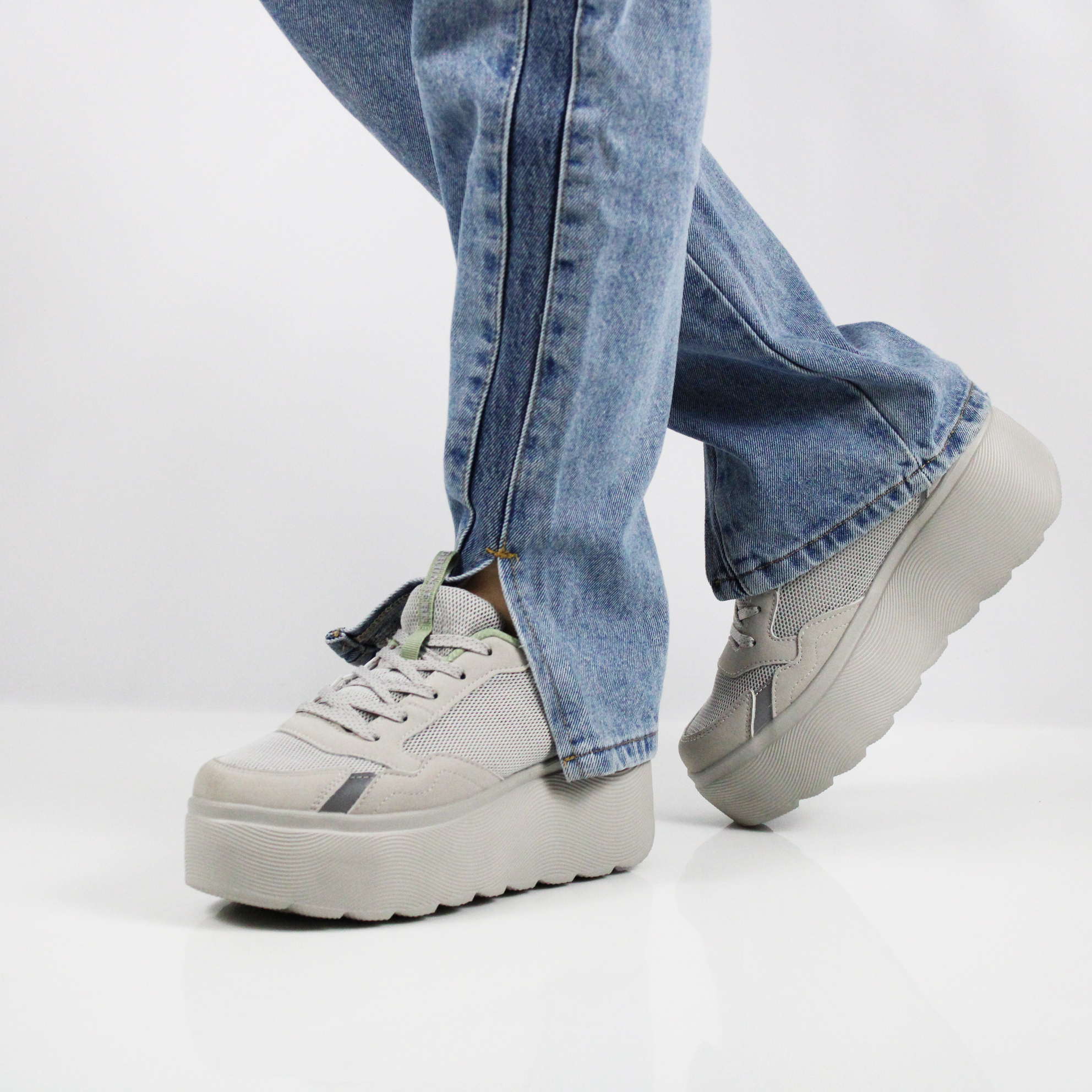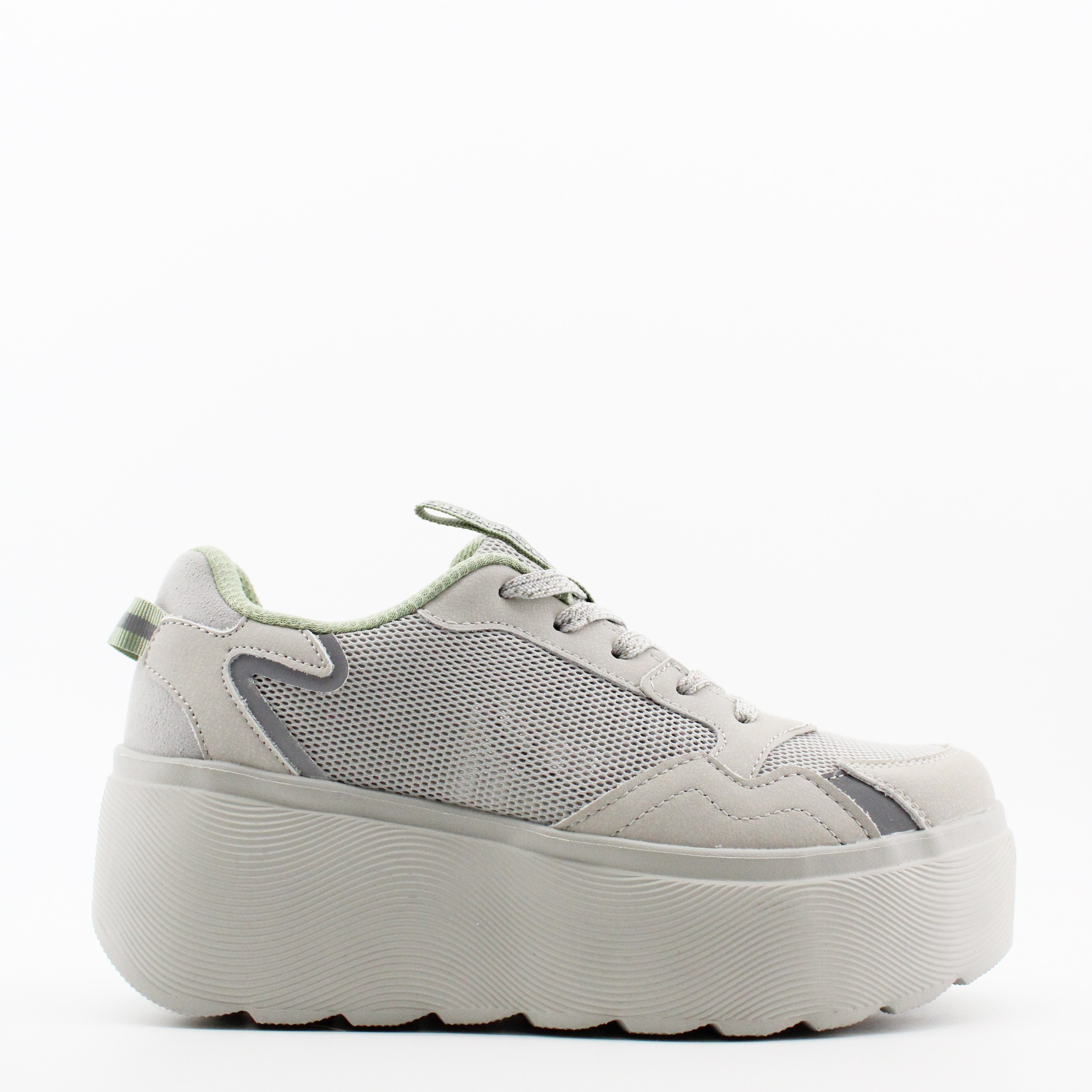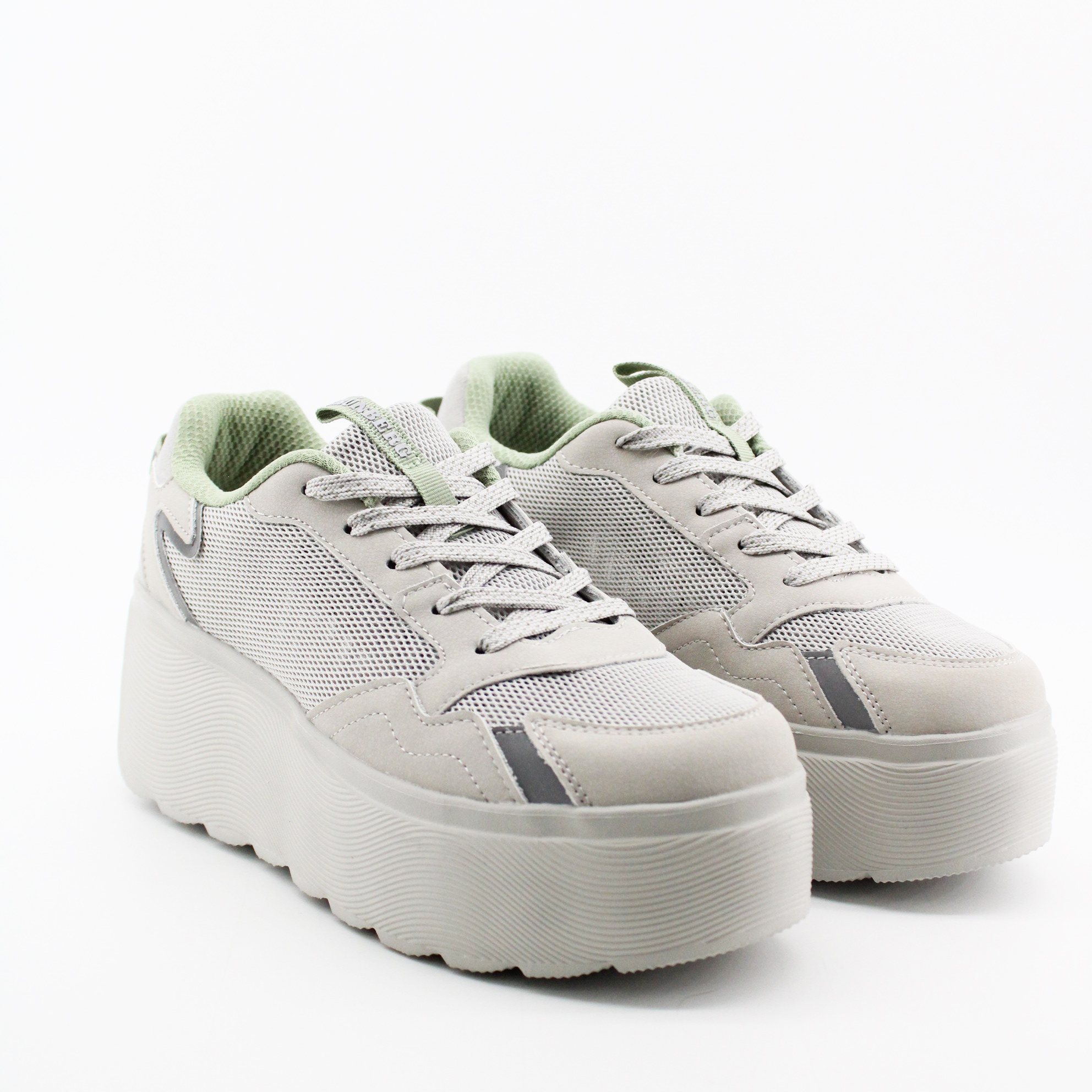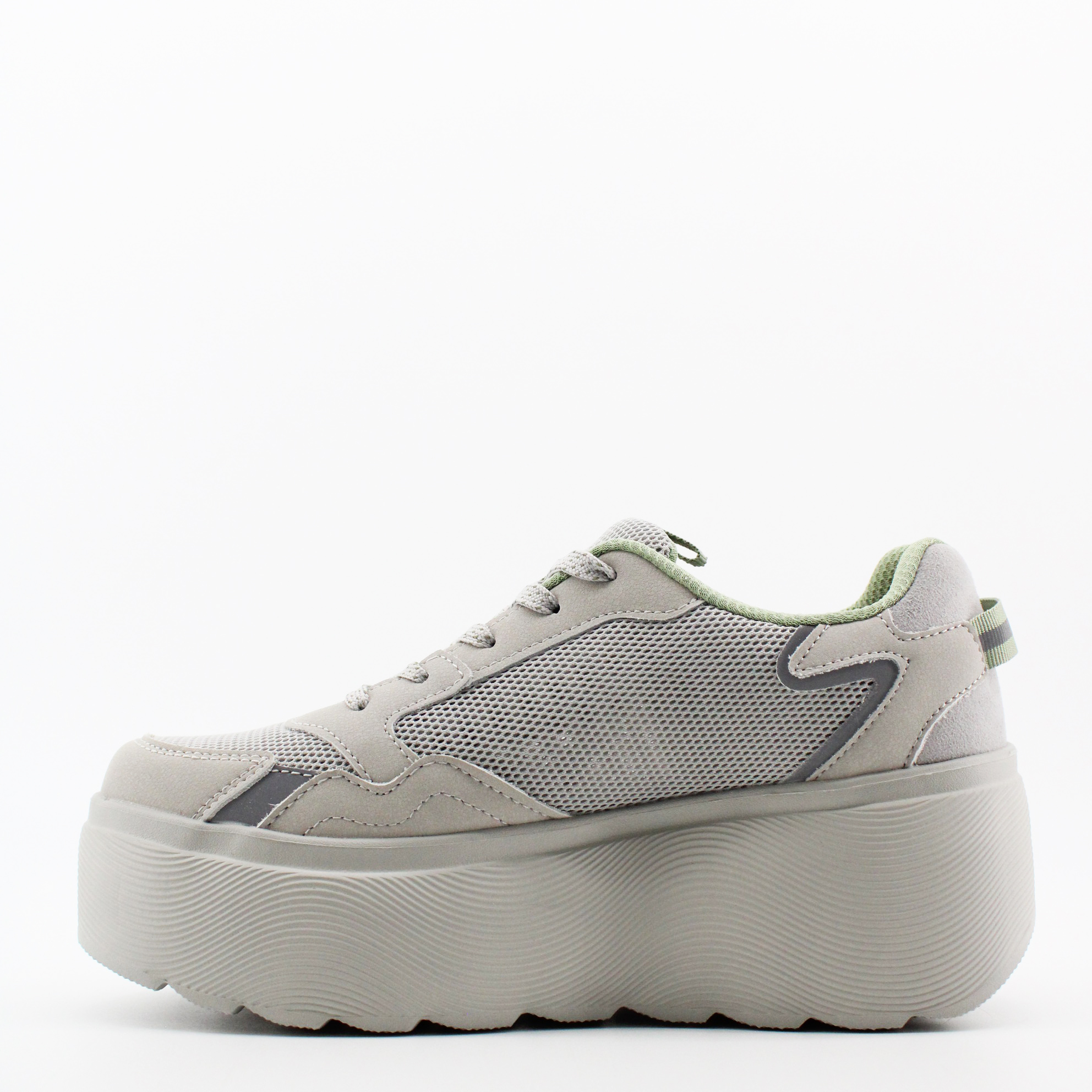 Женские кеды GRUNBERG в сером цвете. Верх выполнен из микрополитекса – инновационного волокнистого материала, обладающего высокой гигроскопичностью и дышащими свойствами. Объемная платформа из EPR - легкого полимера, делает комфортным каждый шаг.
