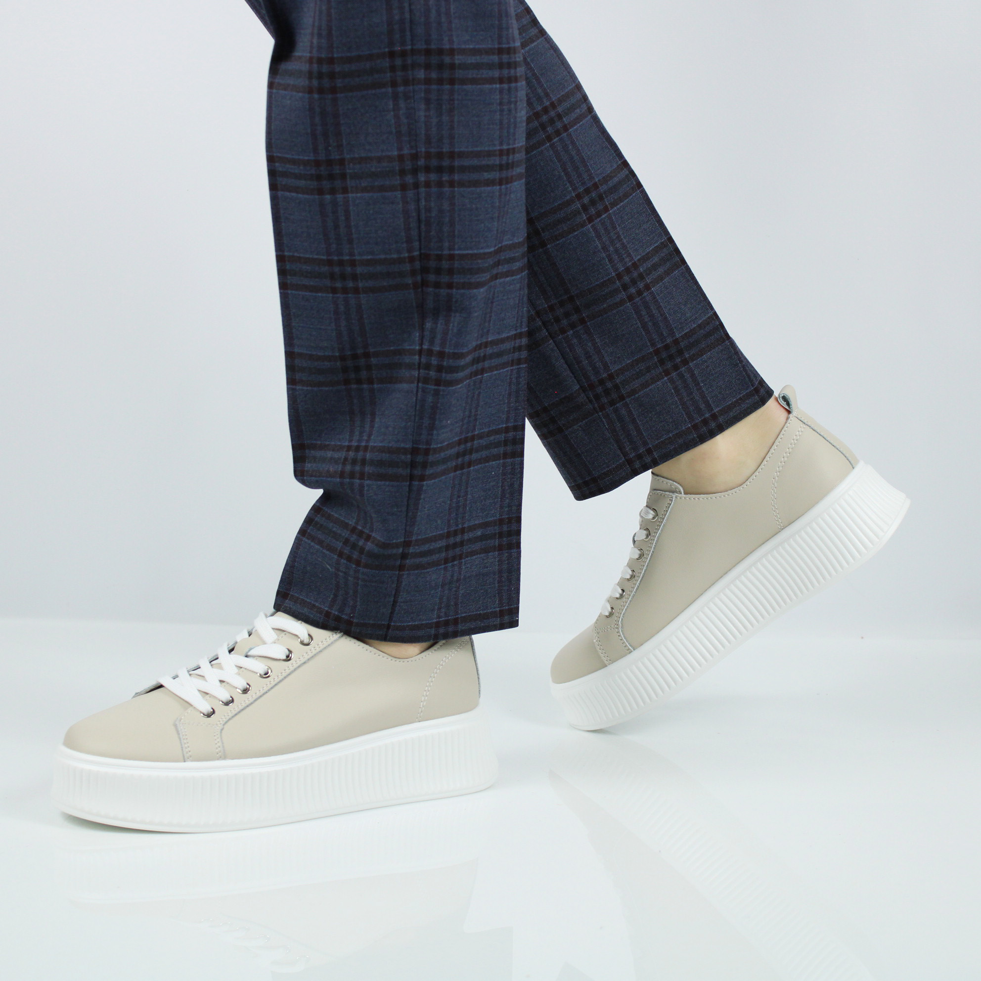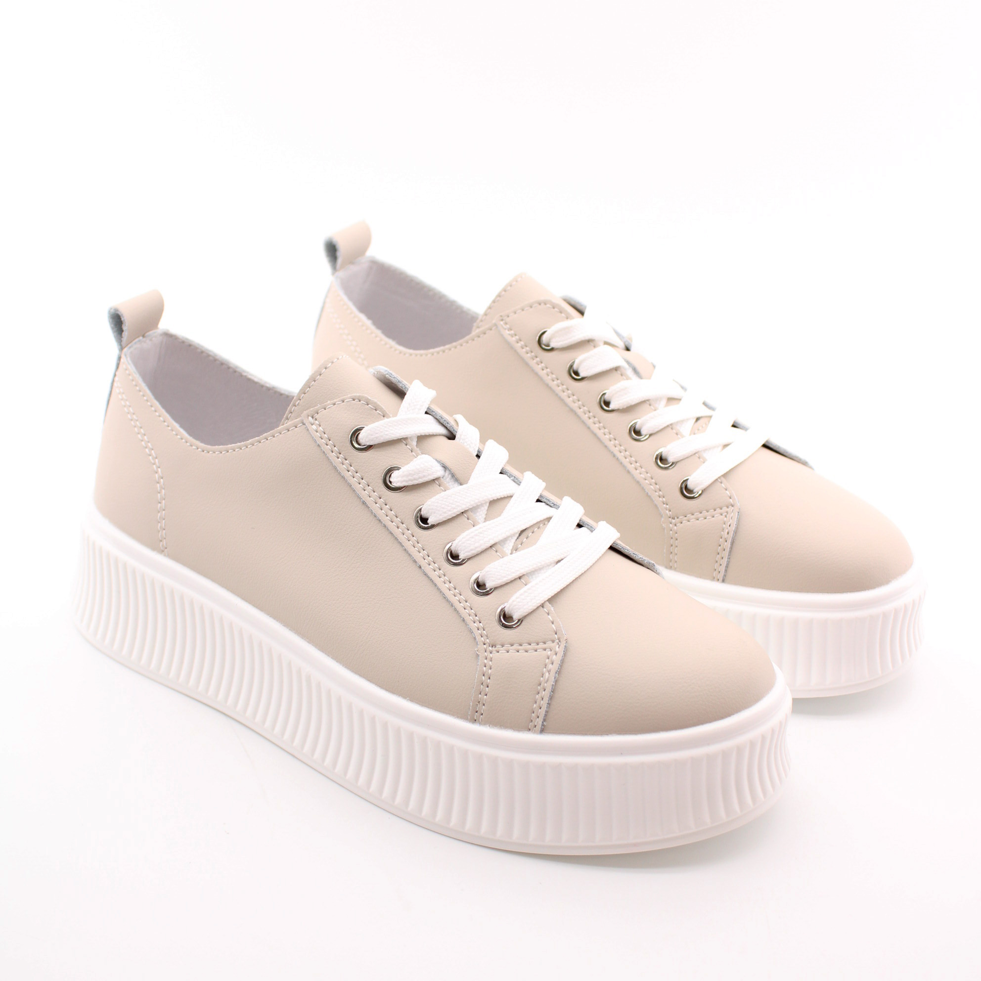 Бежевые кеды на рифленной подошве.