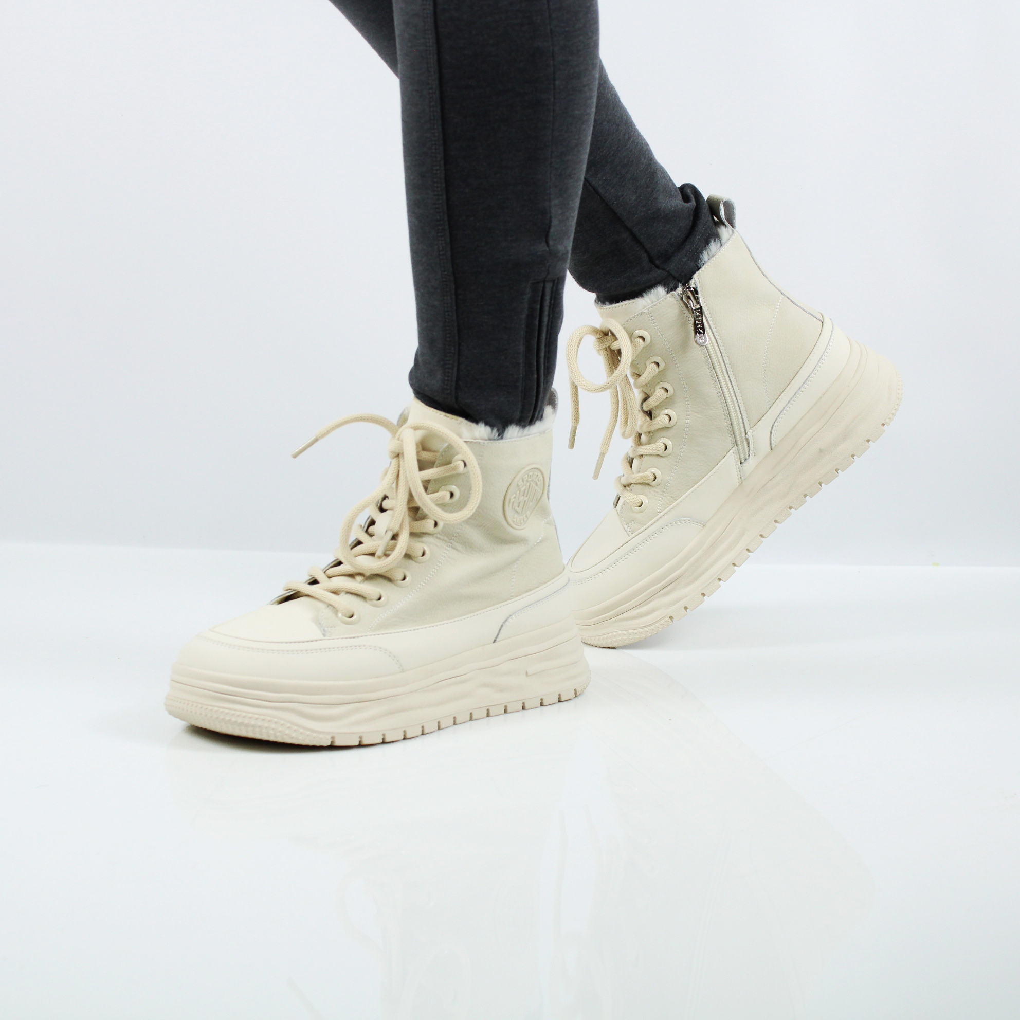 Зимние кеды от бренда RESPECT. Кроссовки можно носить с пуховиками, и с шубами, и с пальто — главное, чтобы все детали образа гармонично сочетались и вписывались в общую концепцию.