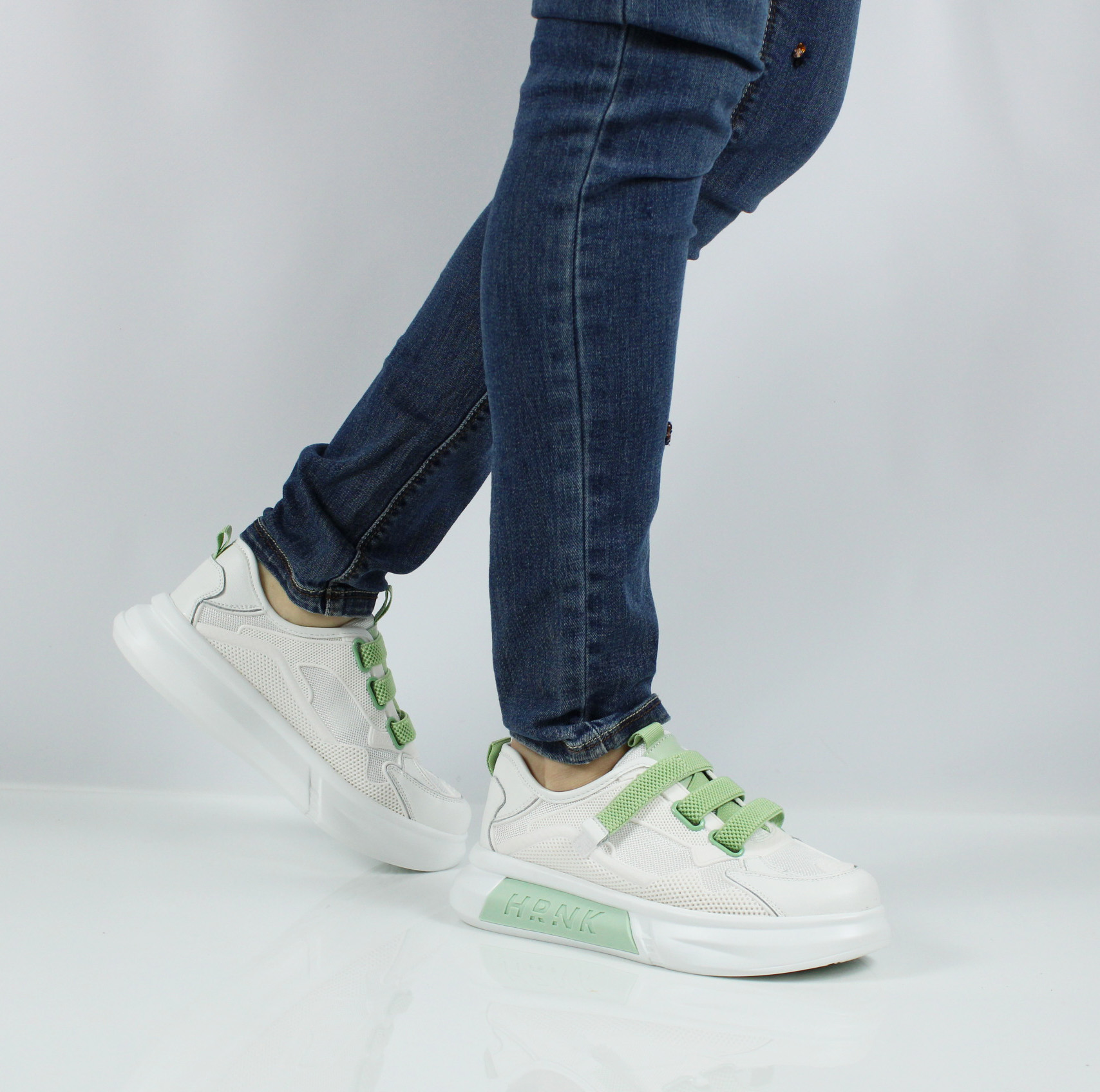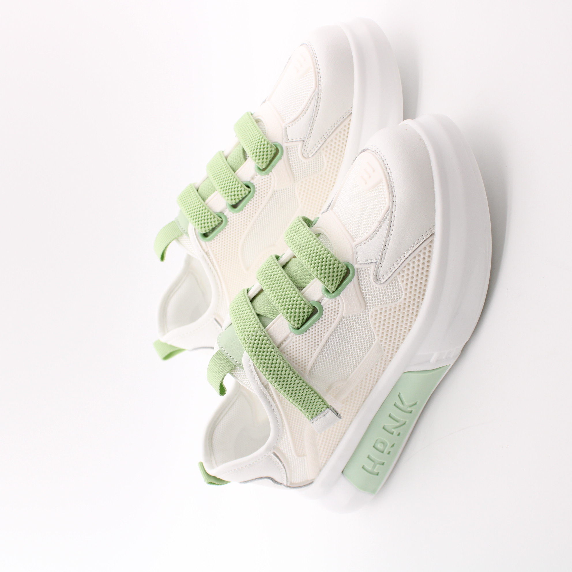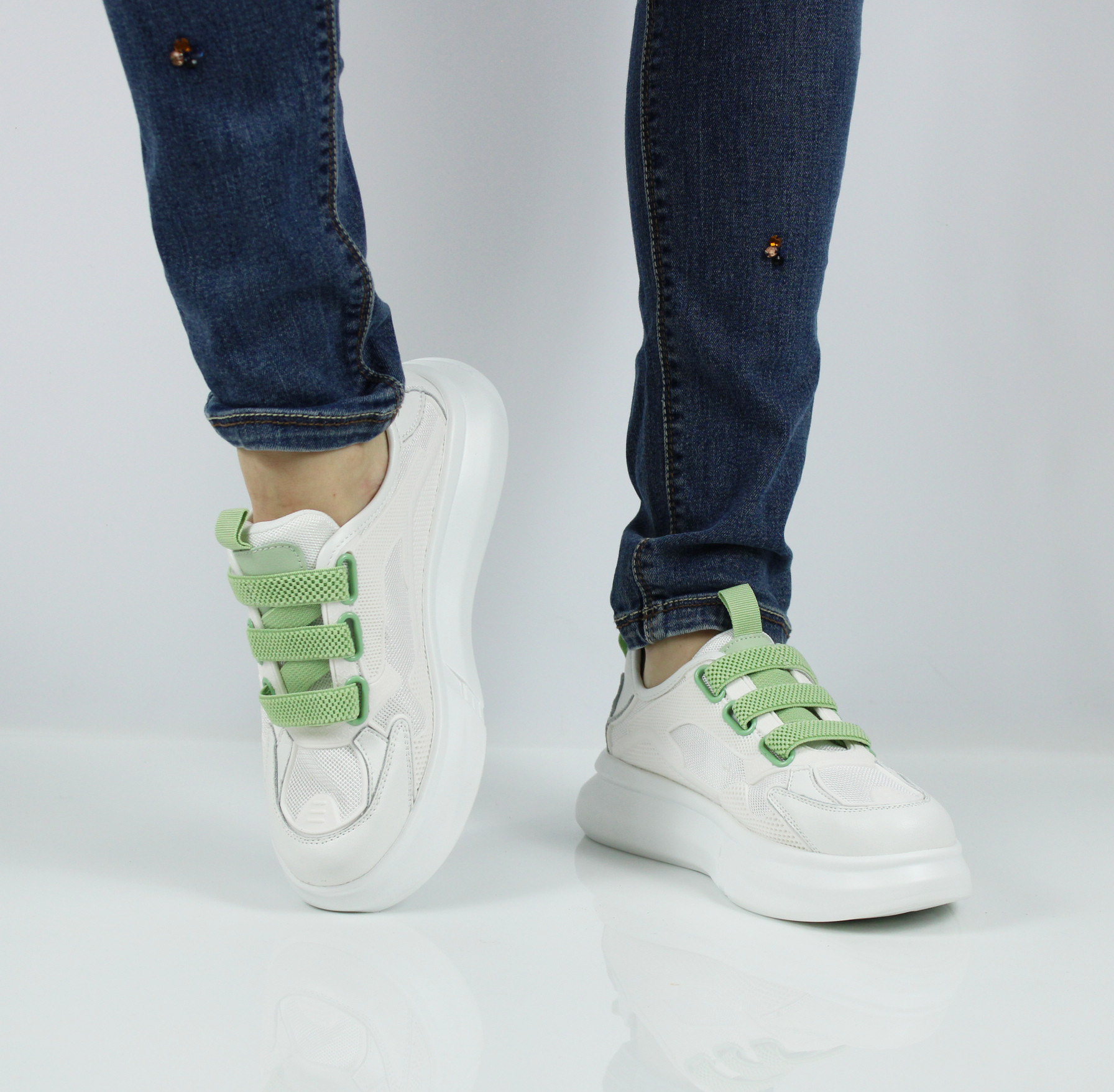 Летние кроссовки - сеточка от бренда LUKME.Кеды на высокой подошве — мечта девушек и женщин маленького роста, потому что модель визуально удлиняет ноги, делает силуэт более стройным и привлекательным.  Зеленые вставки яркий элемент на белых кедах.
