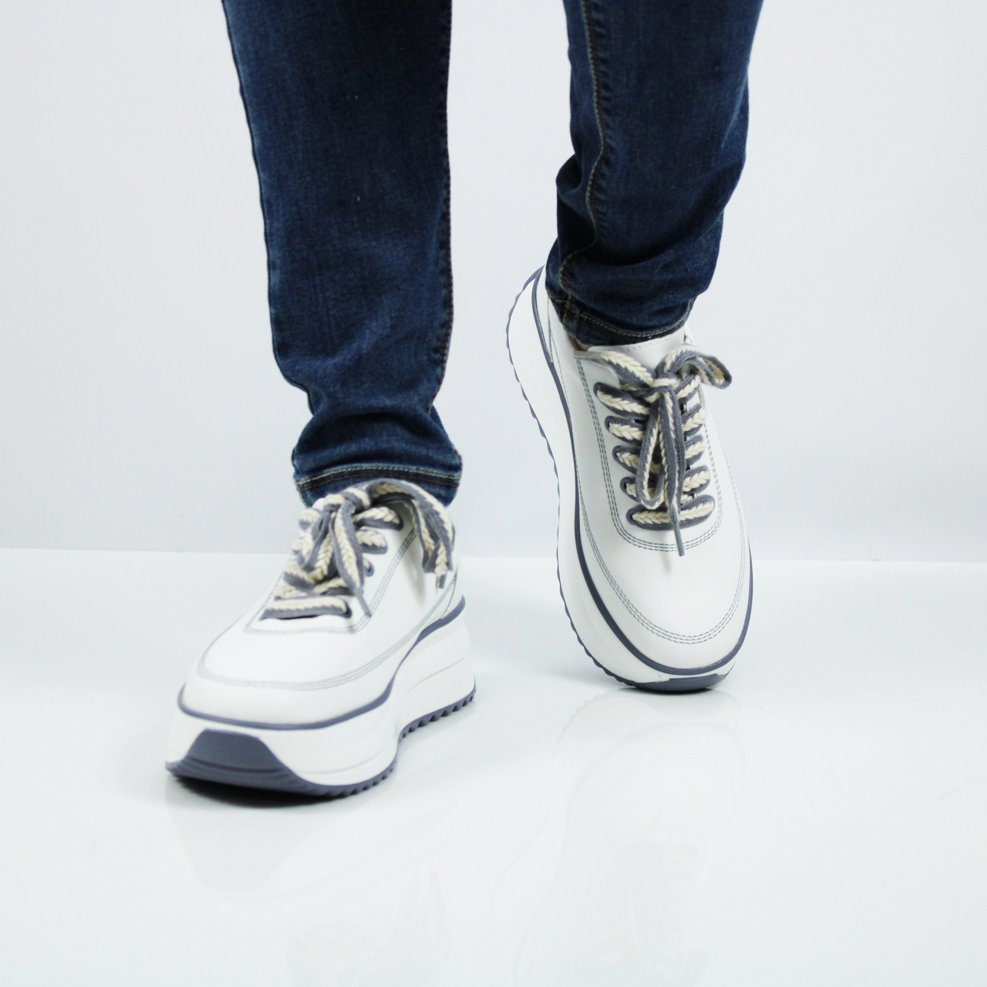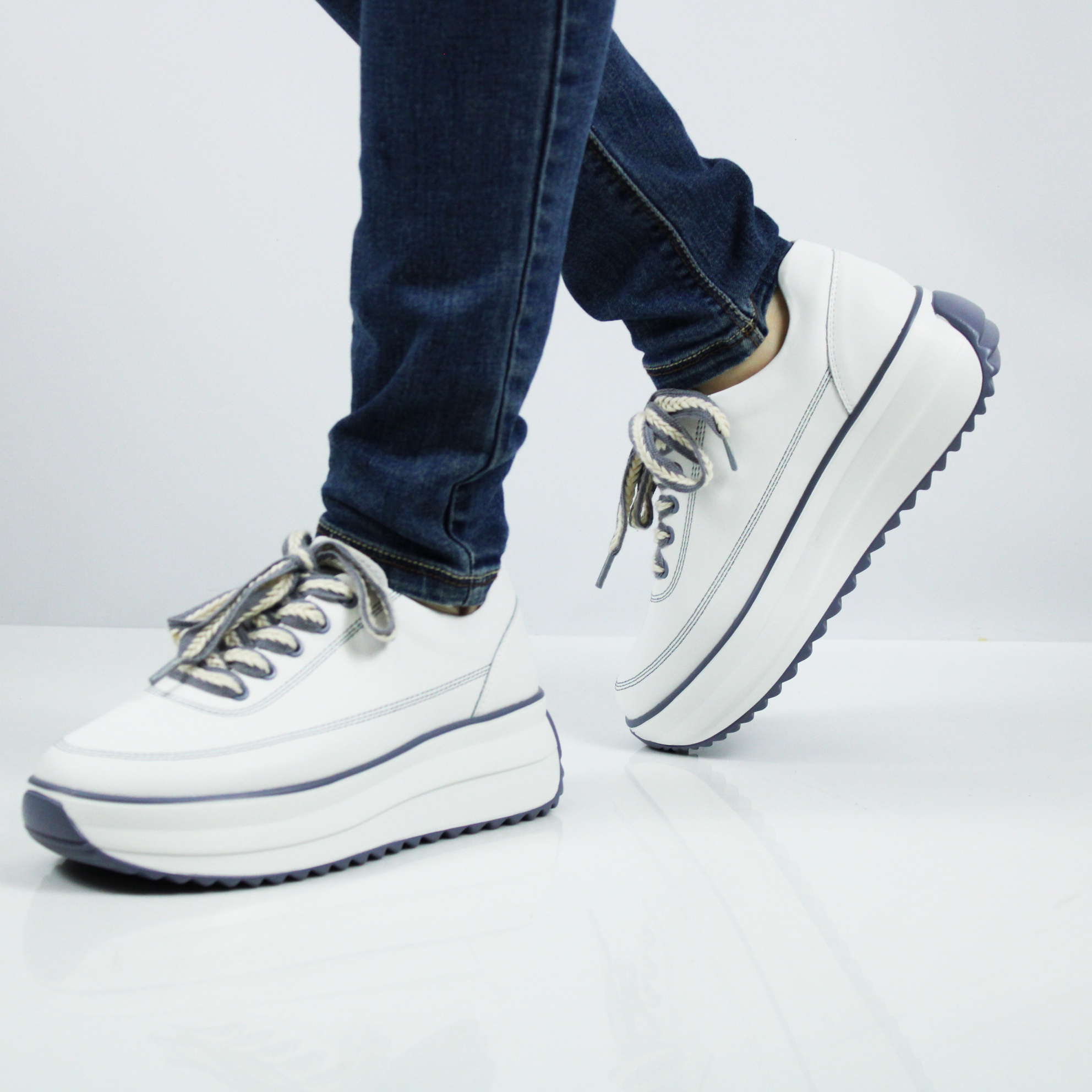 Белые кроссовки на платформе.