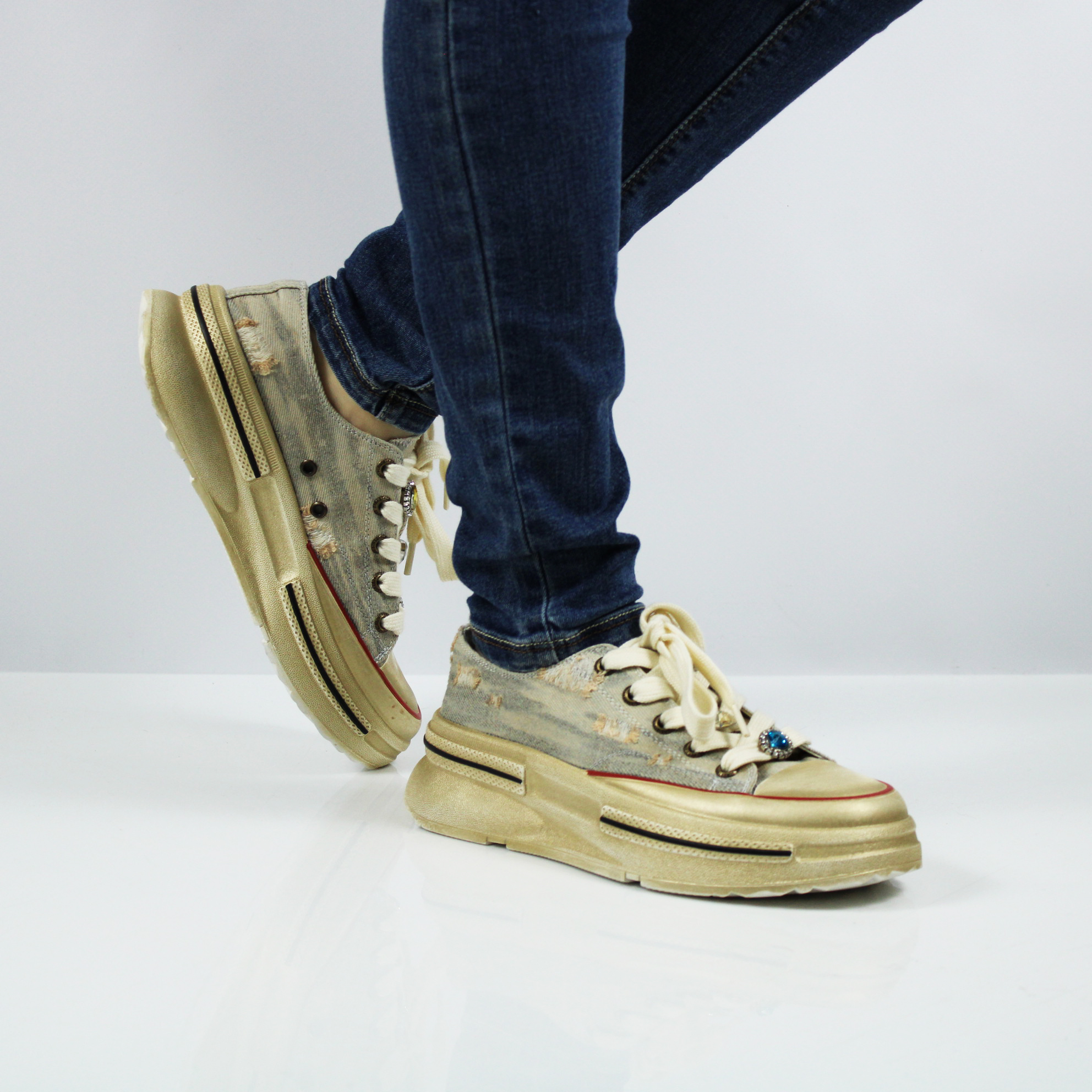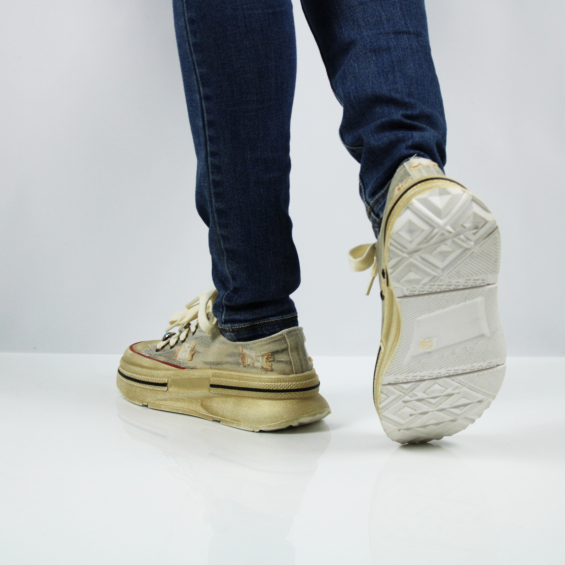 - эффект потертости на текстиле и подошве