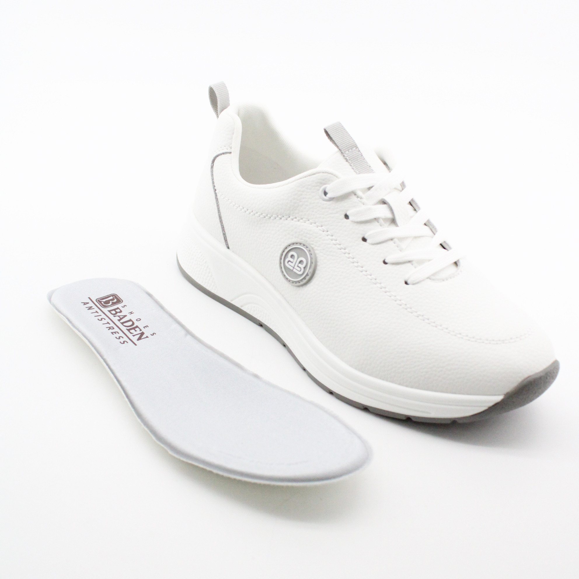 Белые кроссовки из натуральной кожи.