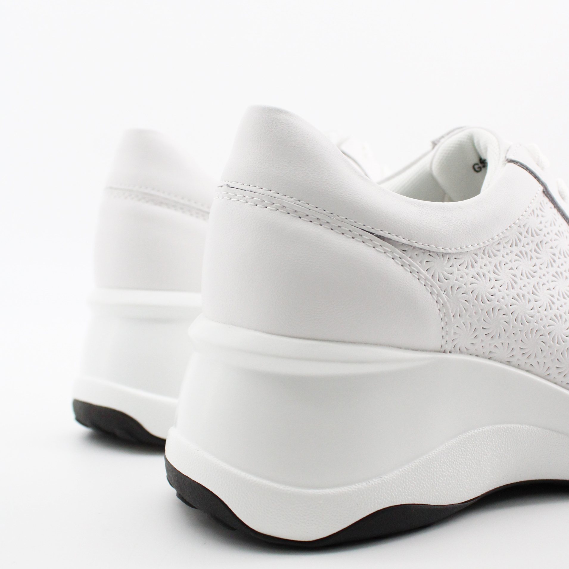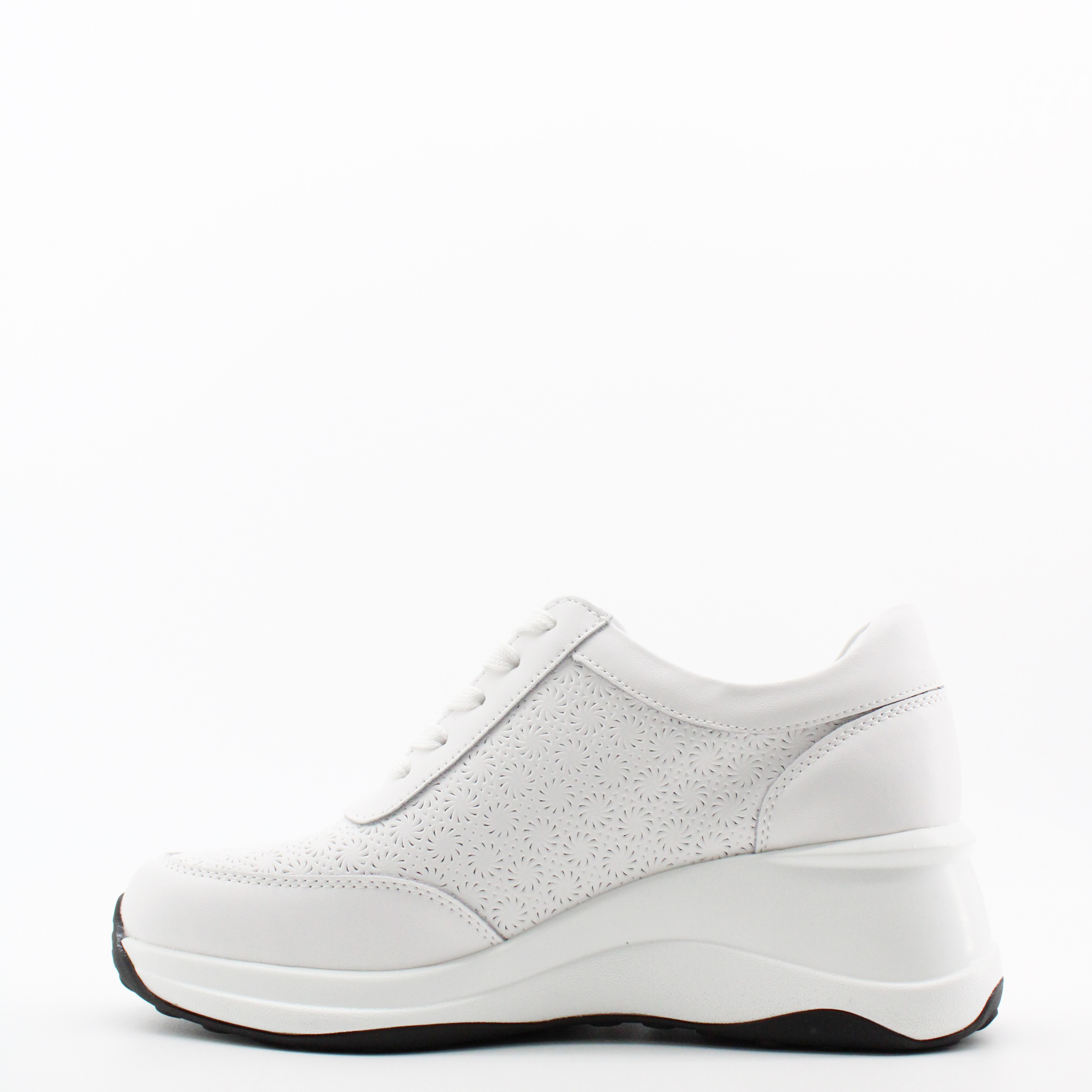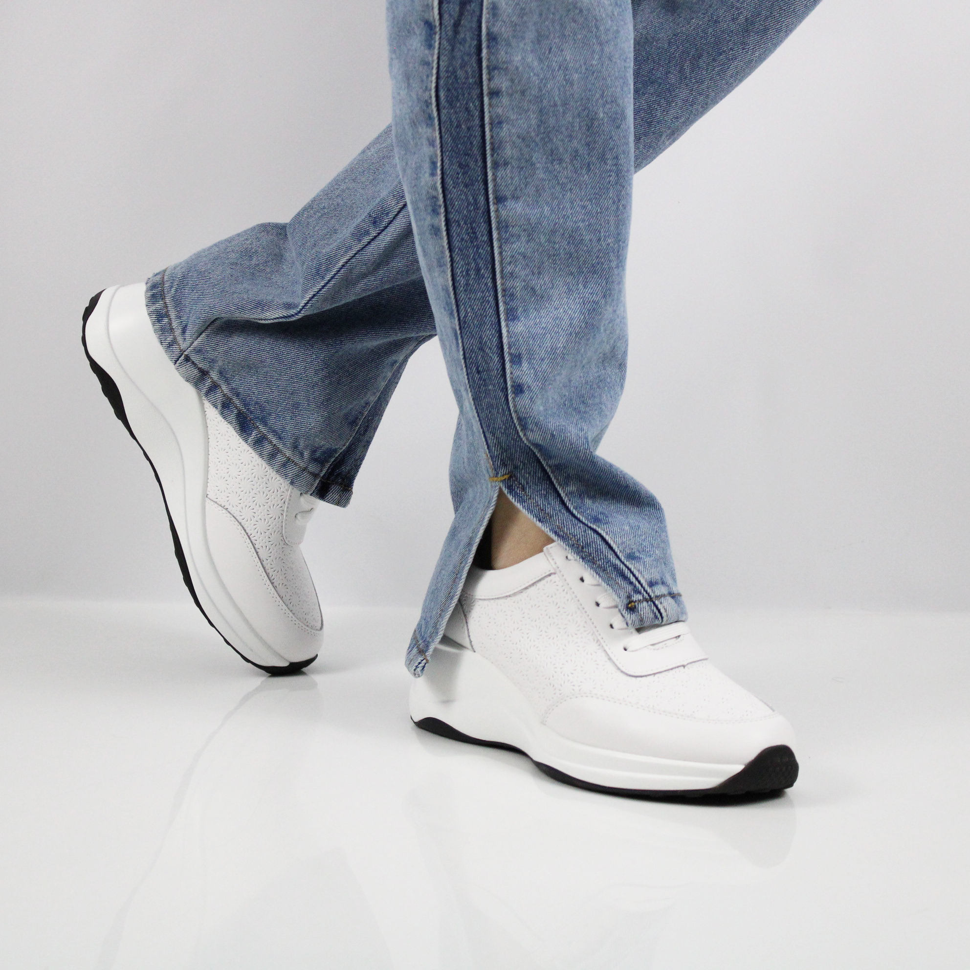 Белые кожаные кроссовки на танкетке.
