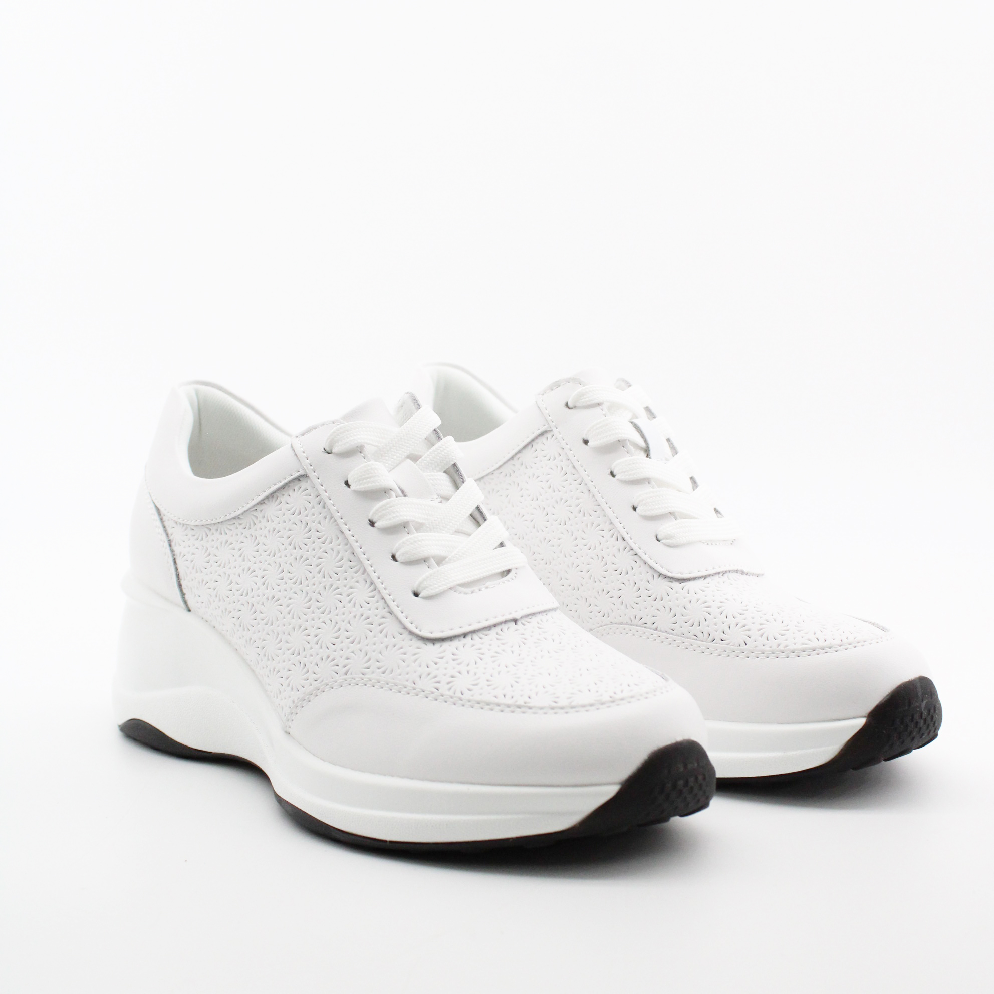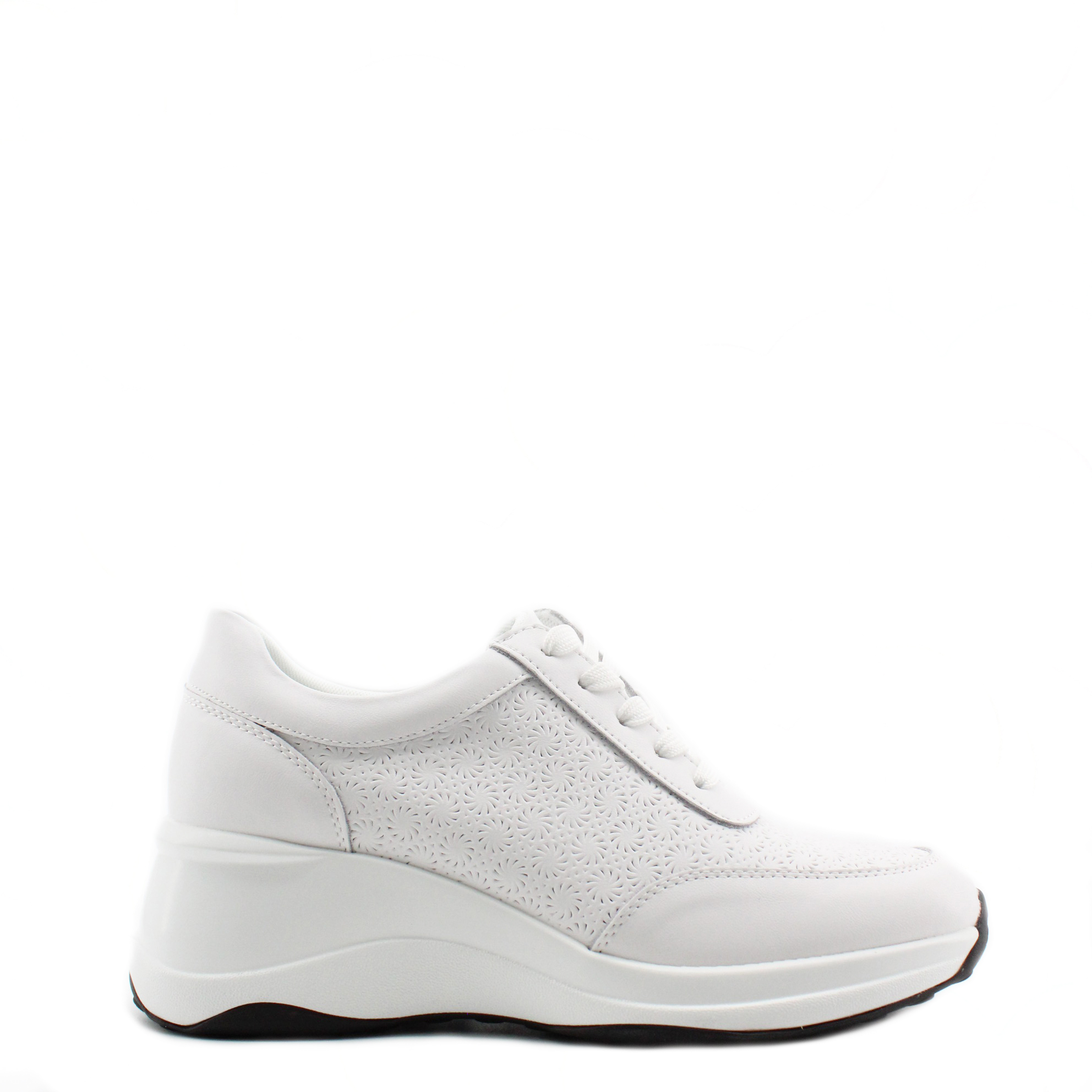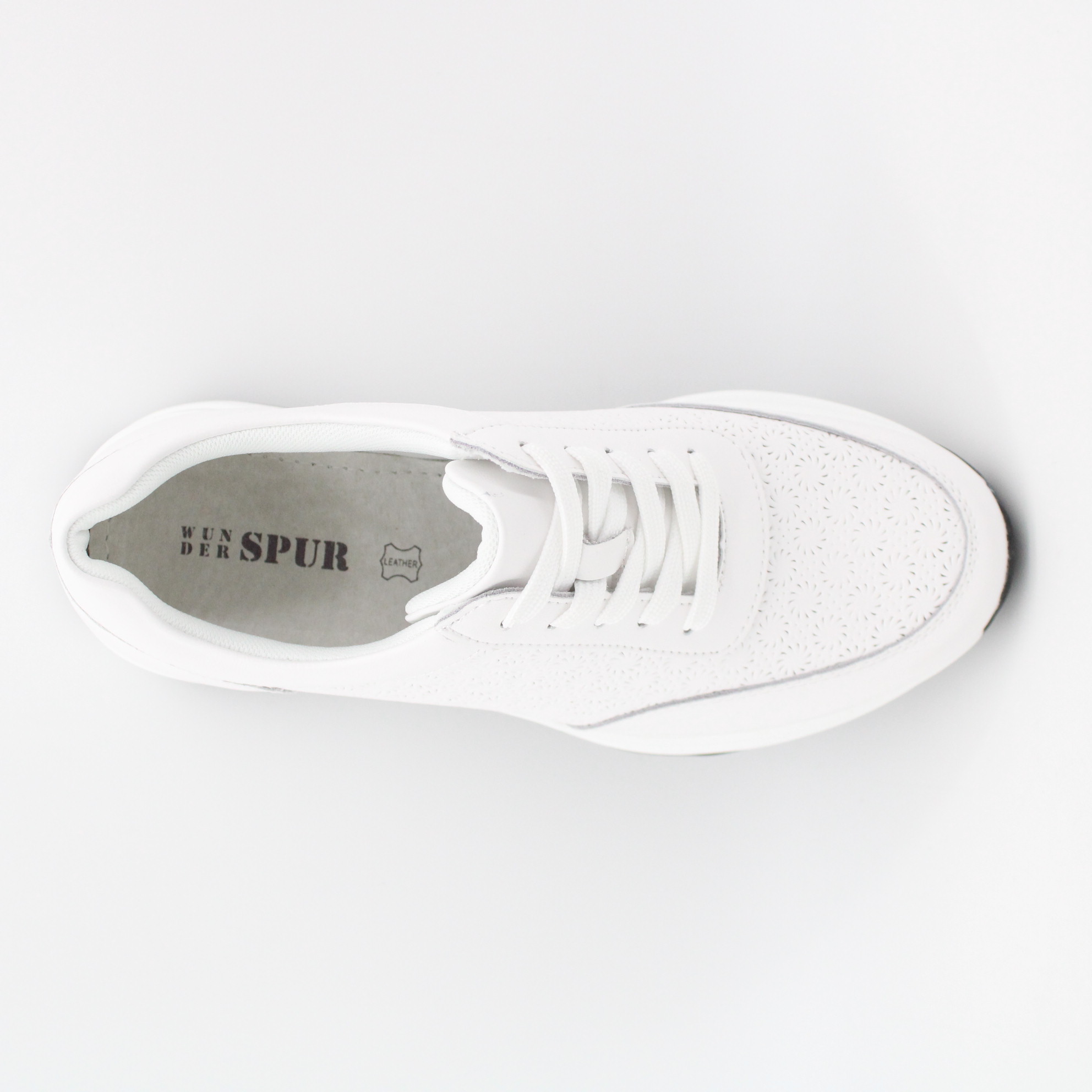 Белые кожаные кроссовки на танкетке.
