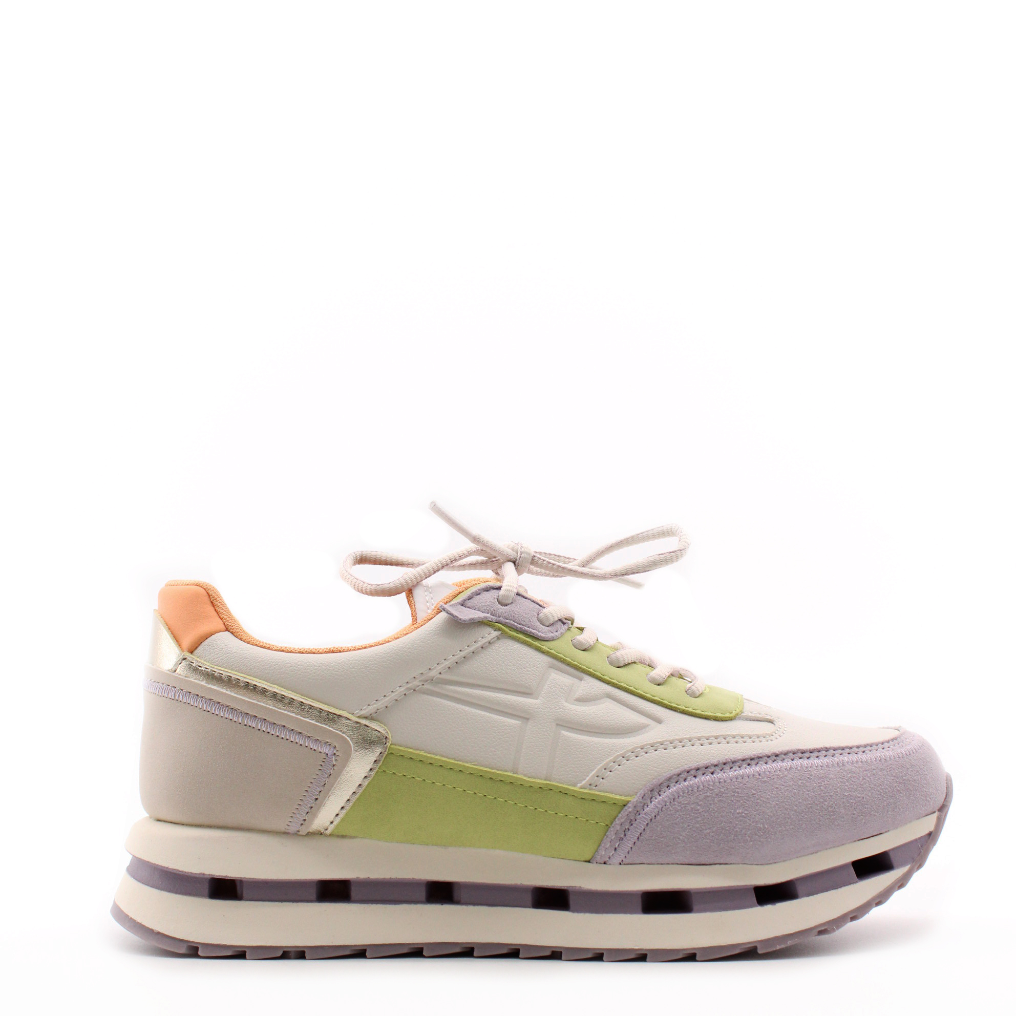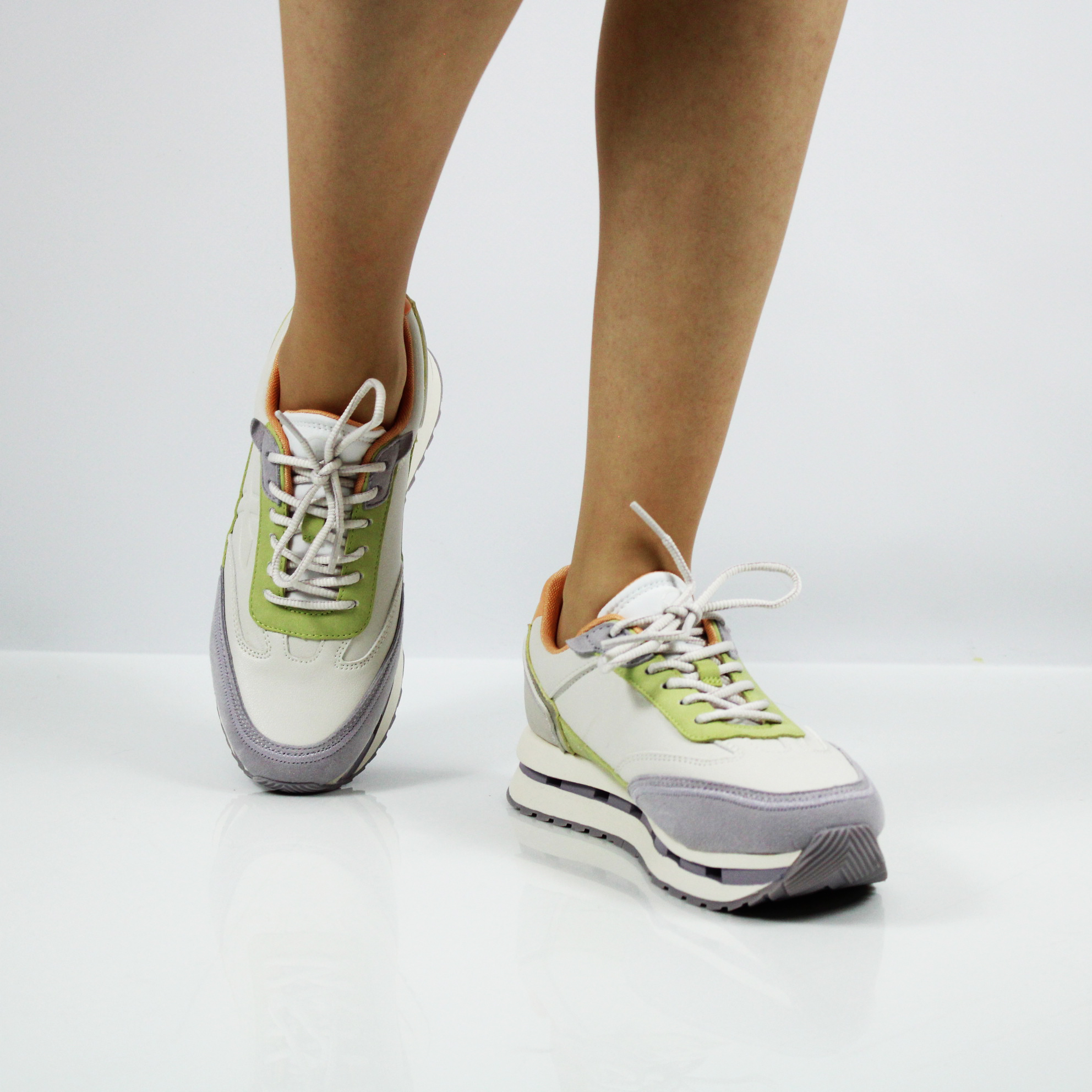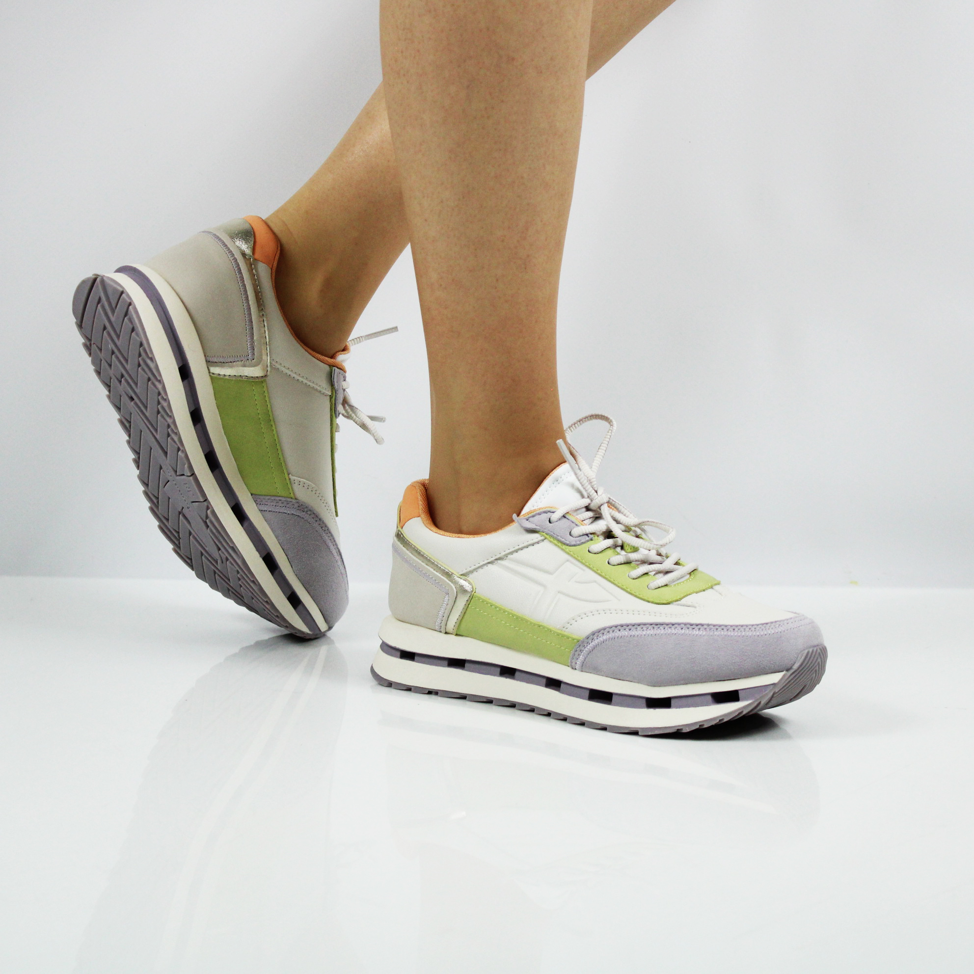 Стильные кроссовки Tamaris в лилово-салатовых оттенках с неповторимой комбинацией материалов станут любимой парой обуви ее обладательницы.