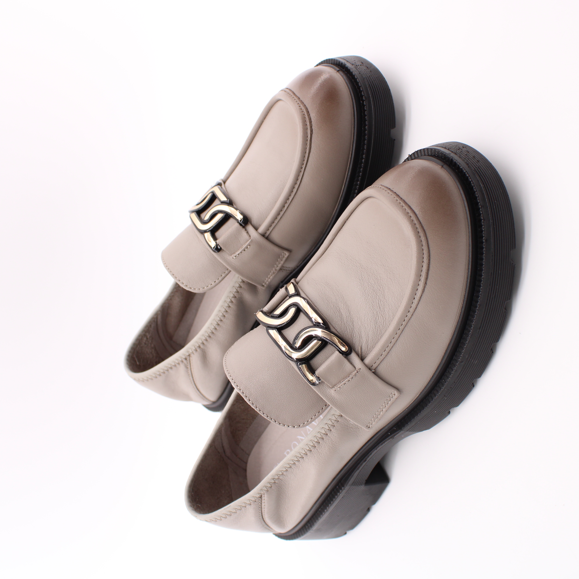 Стильные лоферы серого цвета.