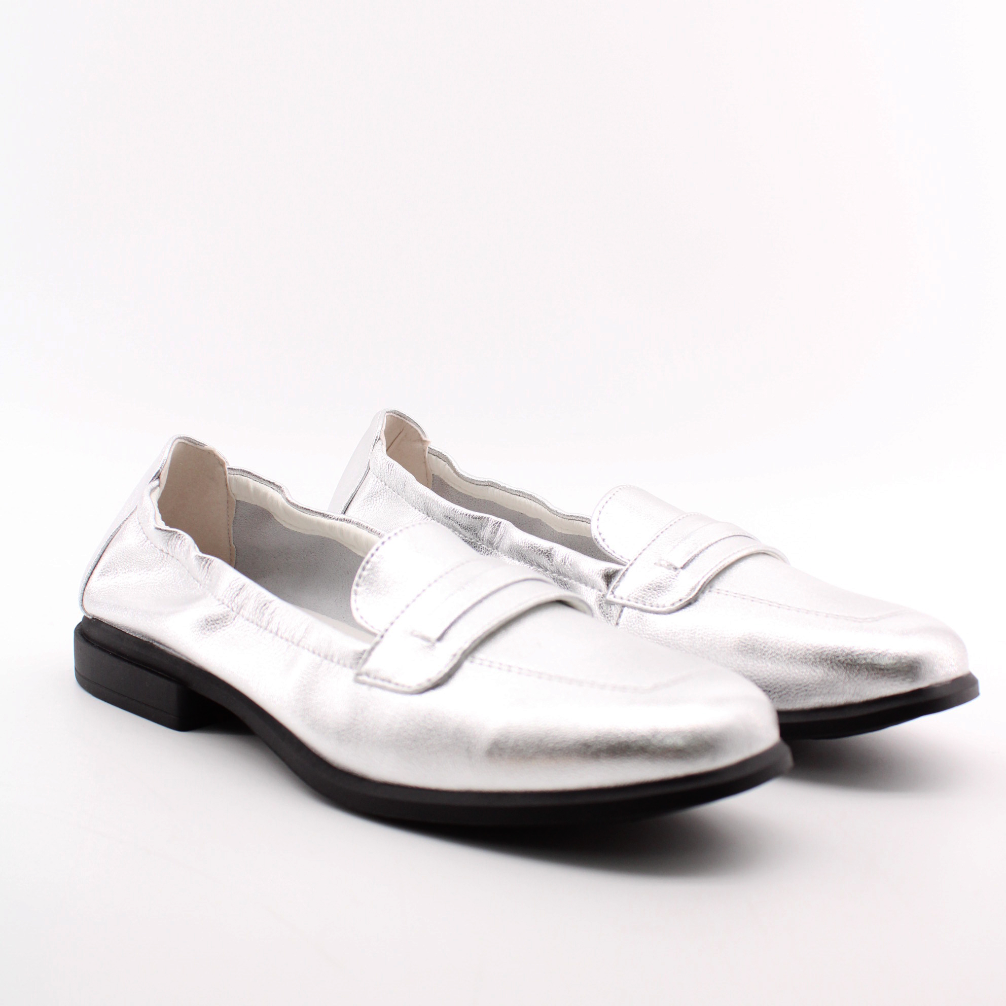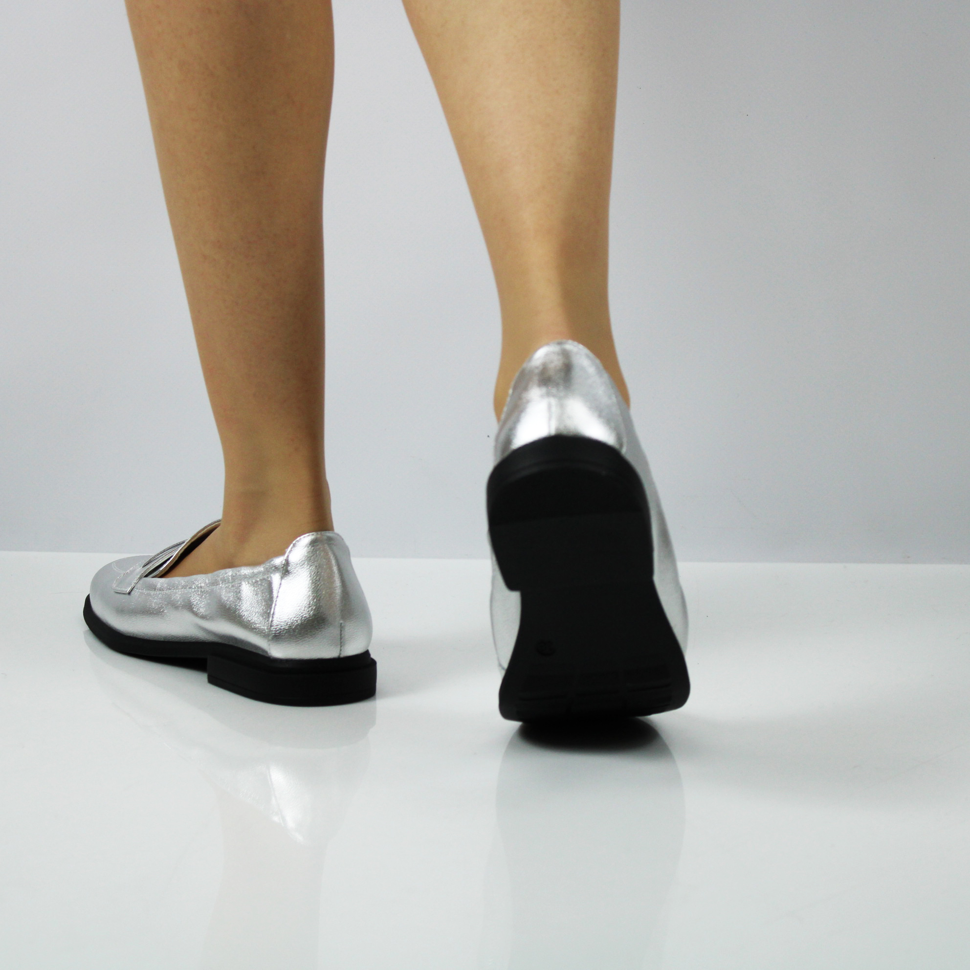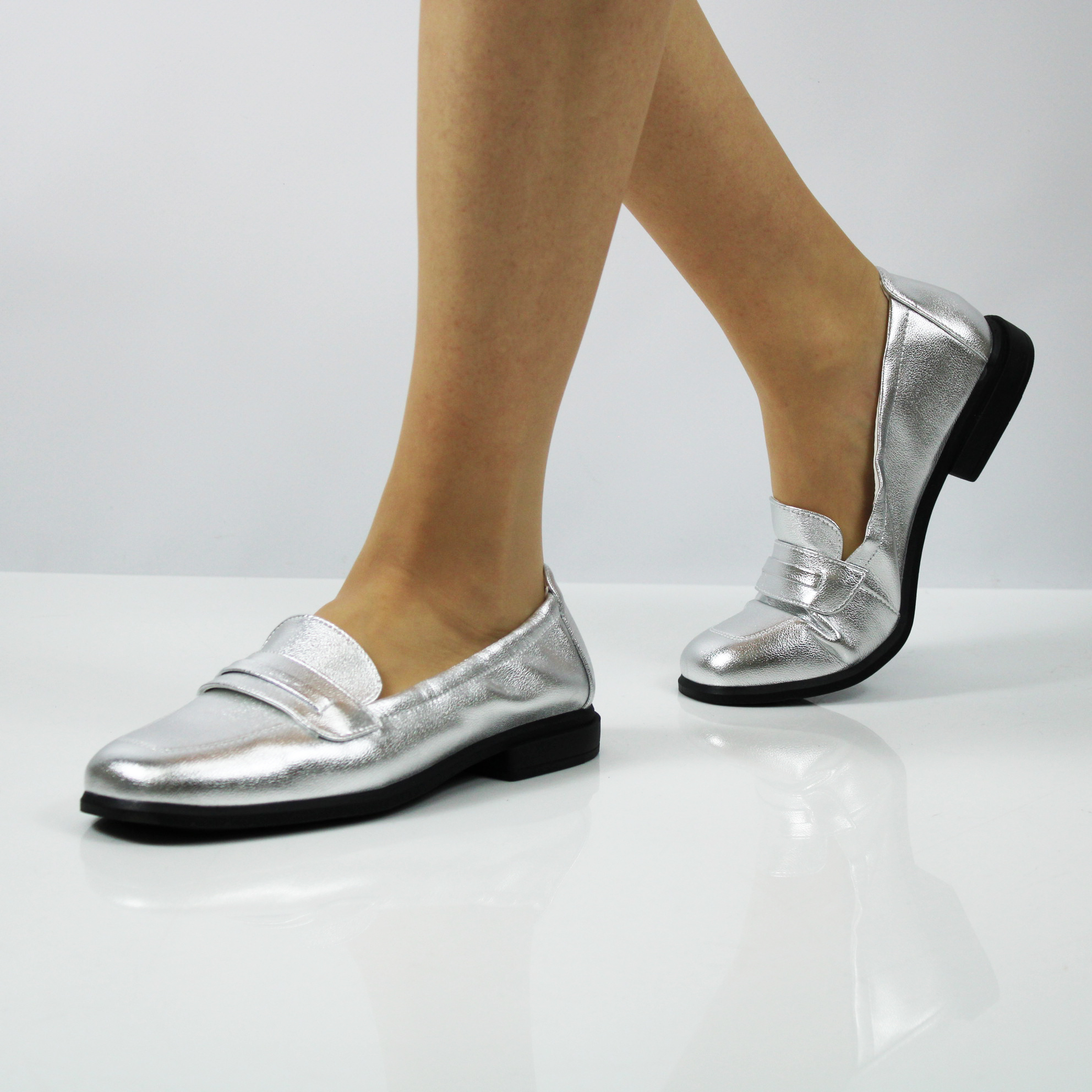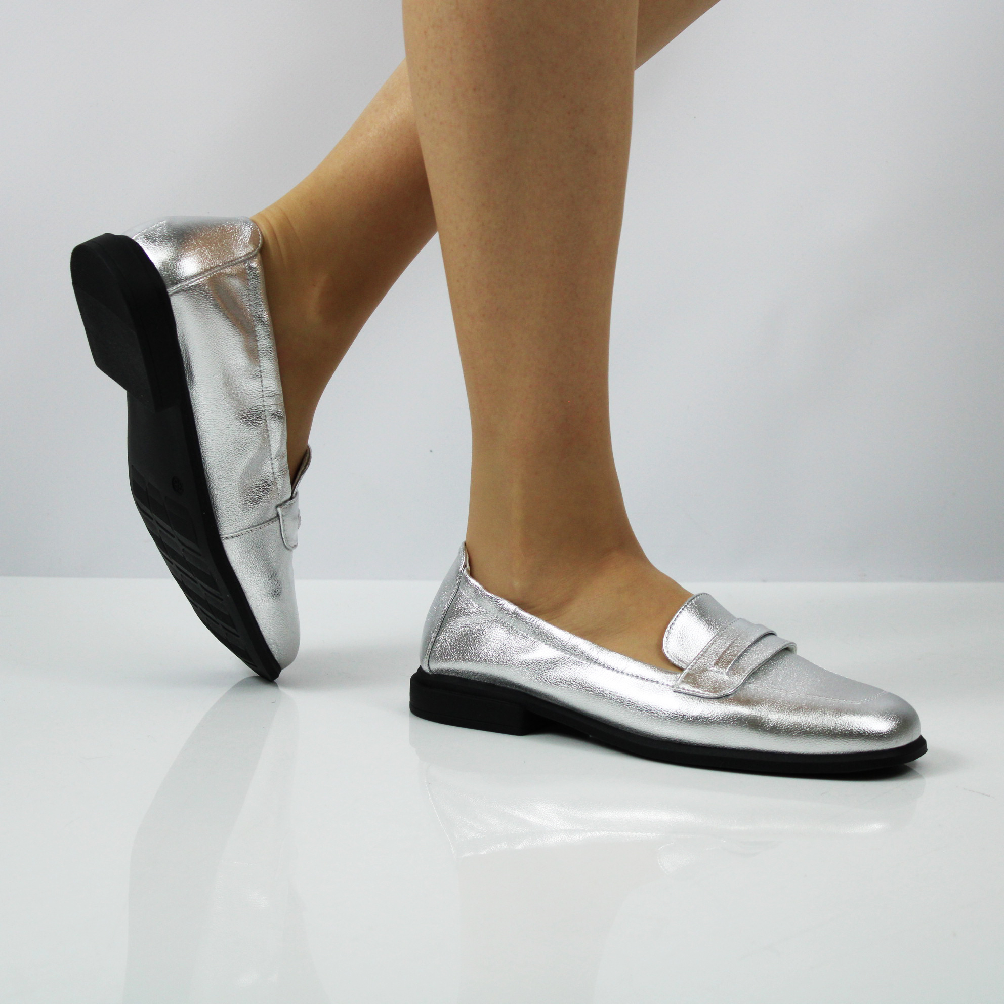 Серебряные лоферы.