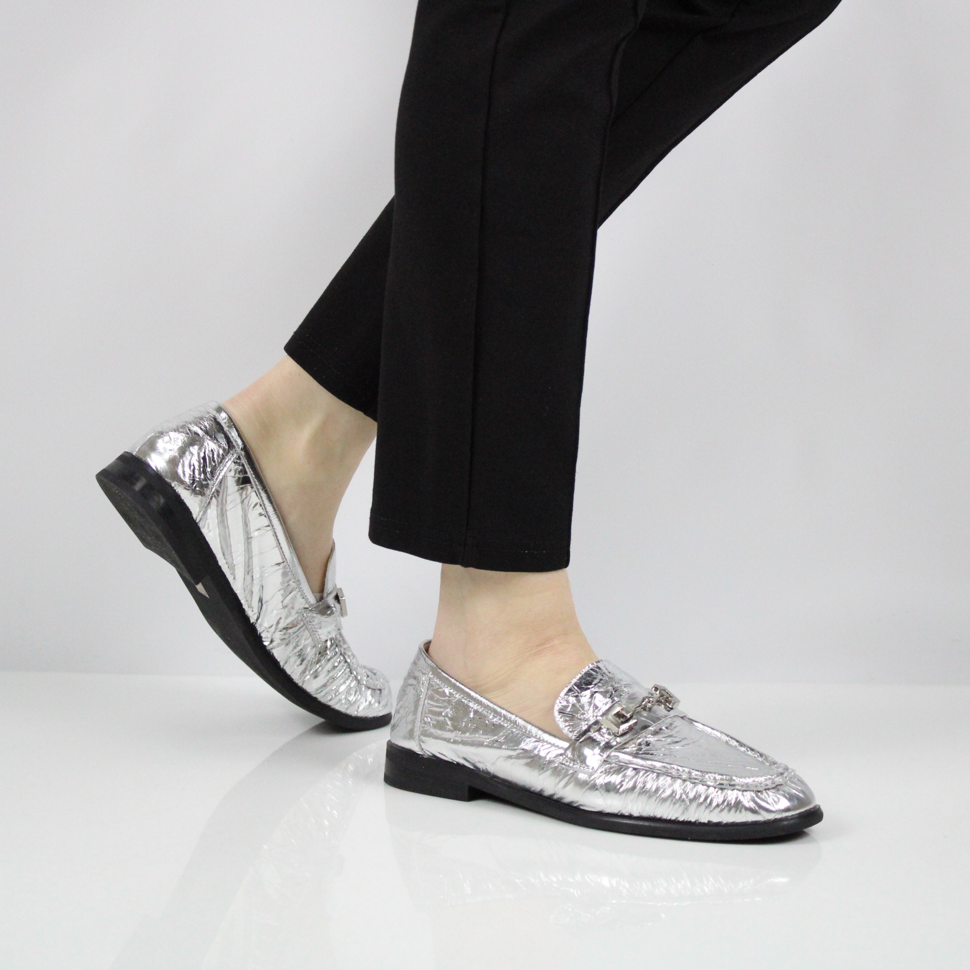 Лоферы серебряные