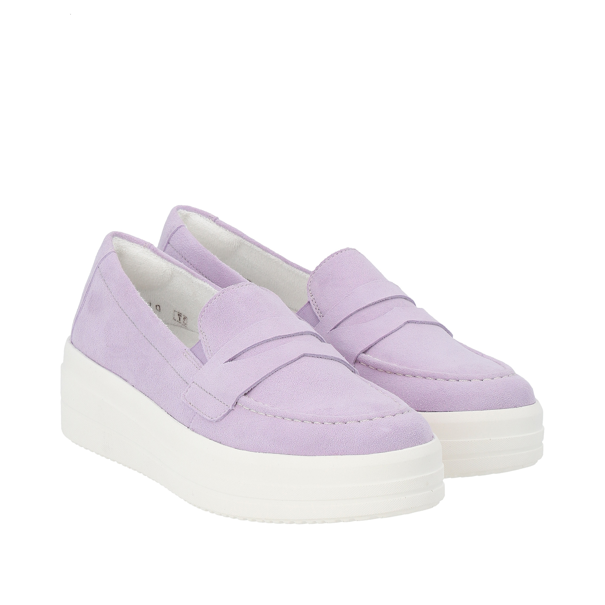 Замшевые лоферы сиреневого цвета.