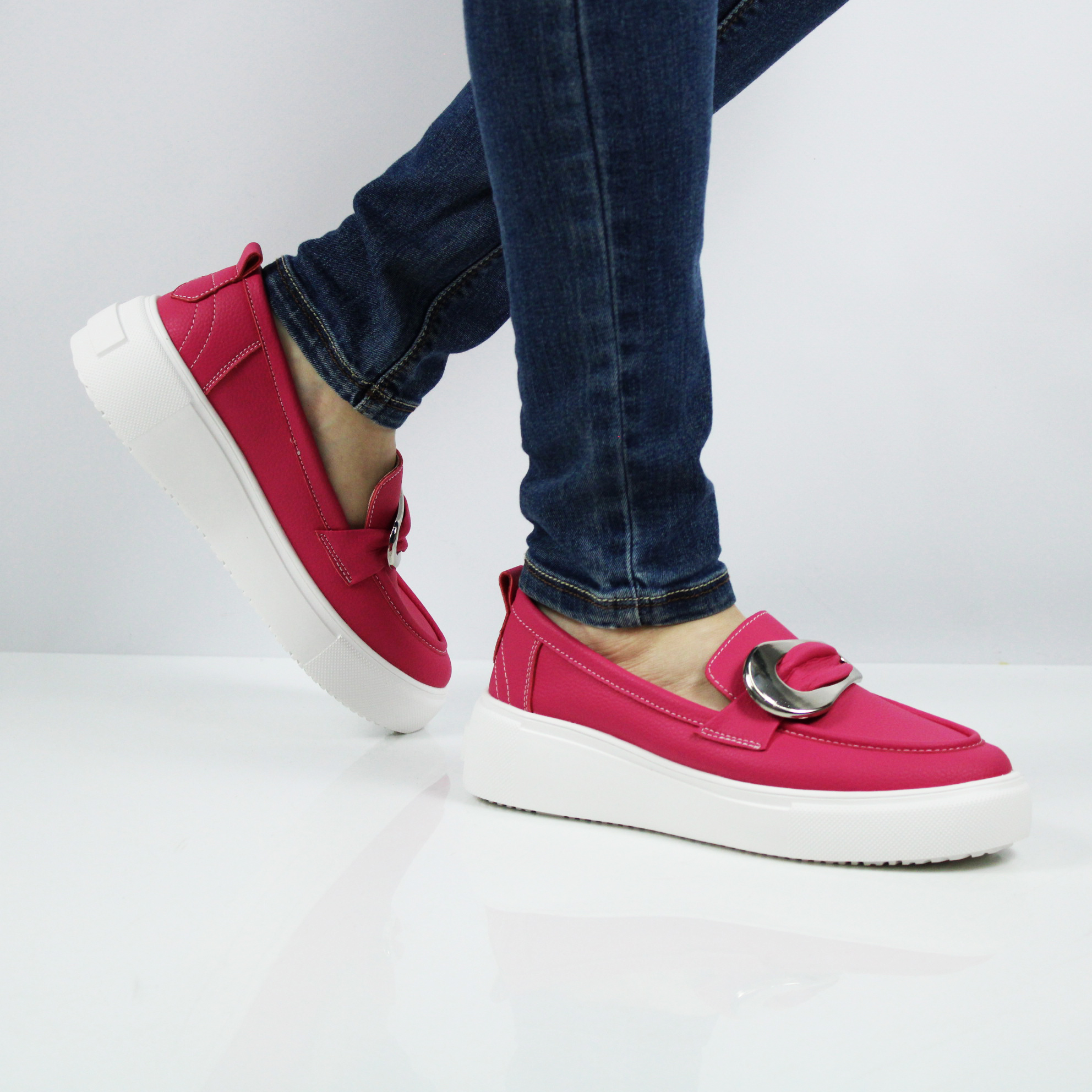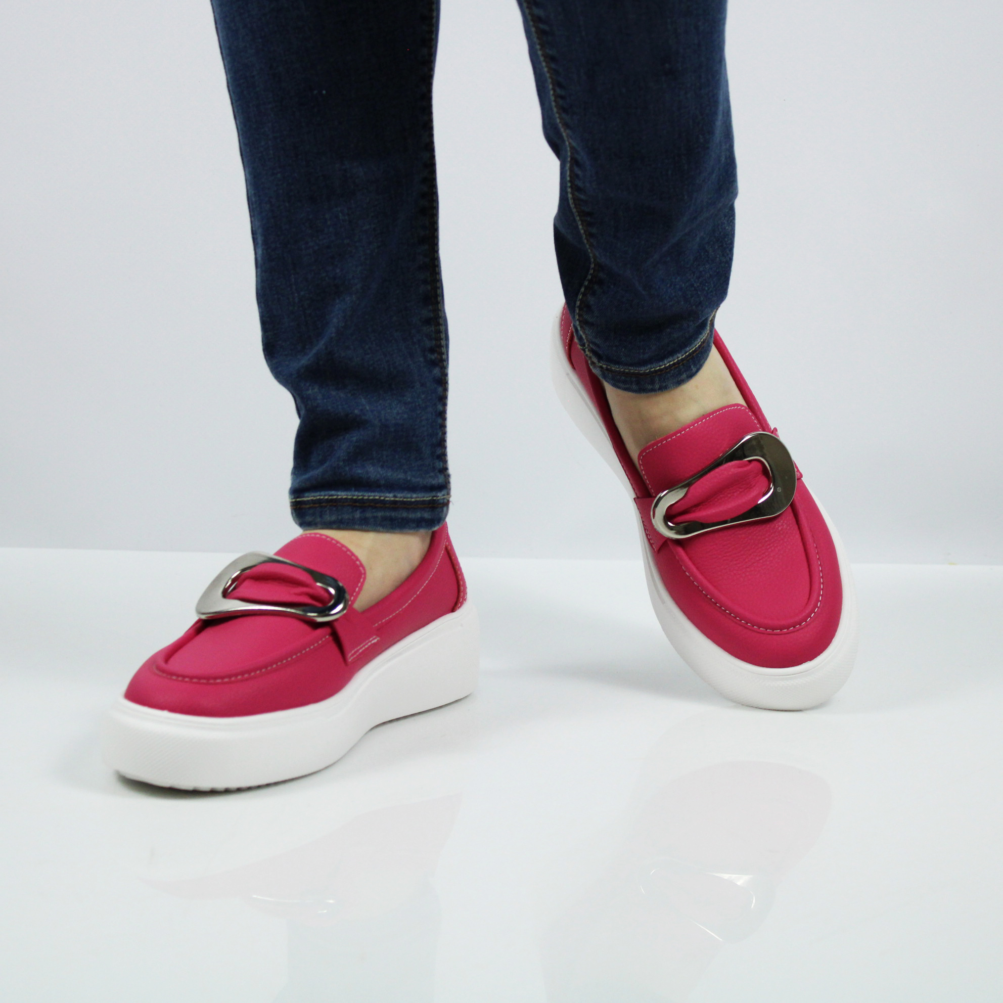Мокасины женские цвета фуксии.