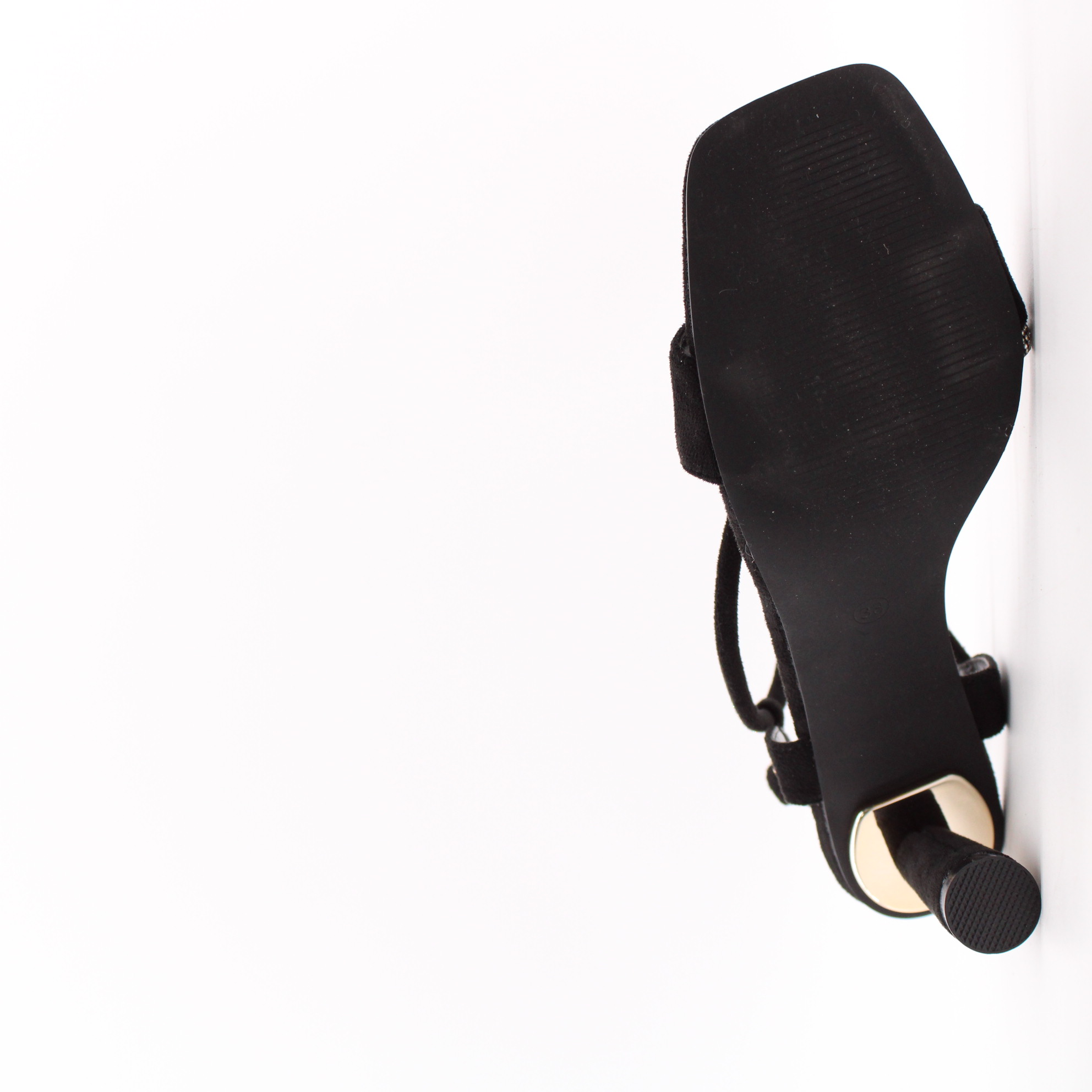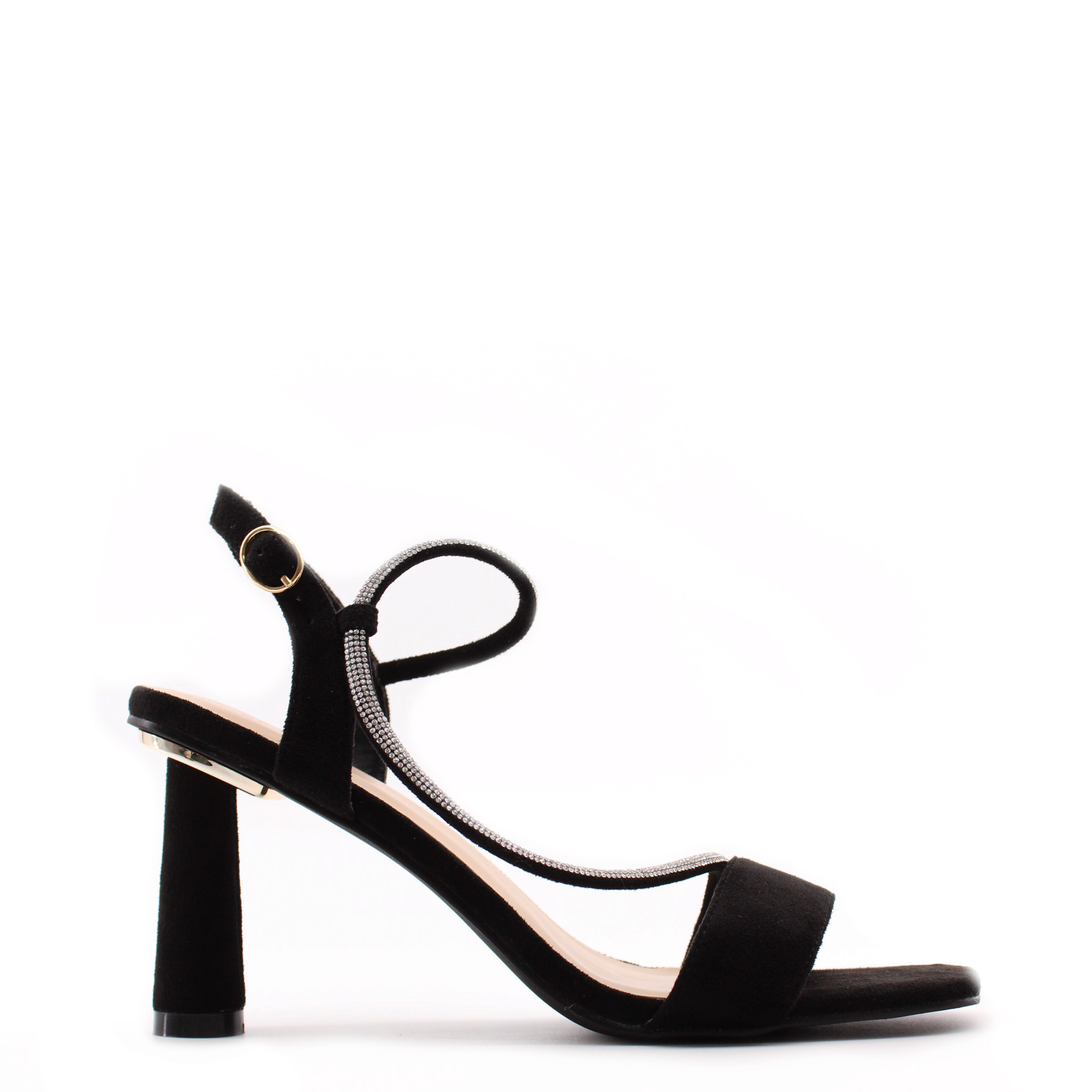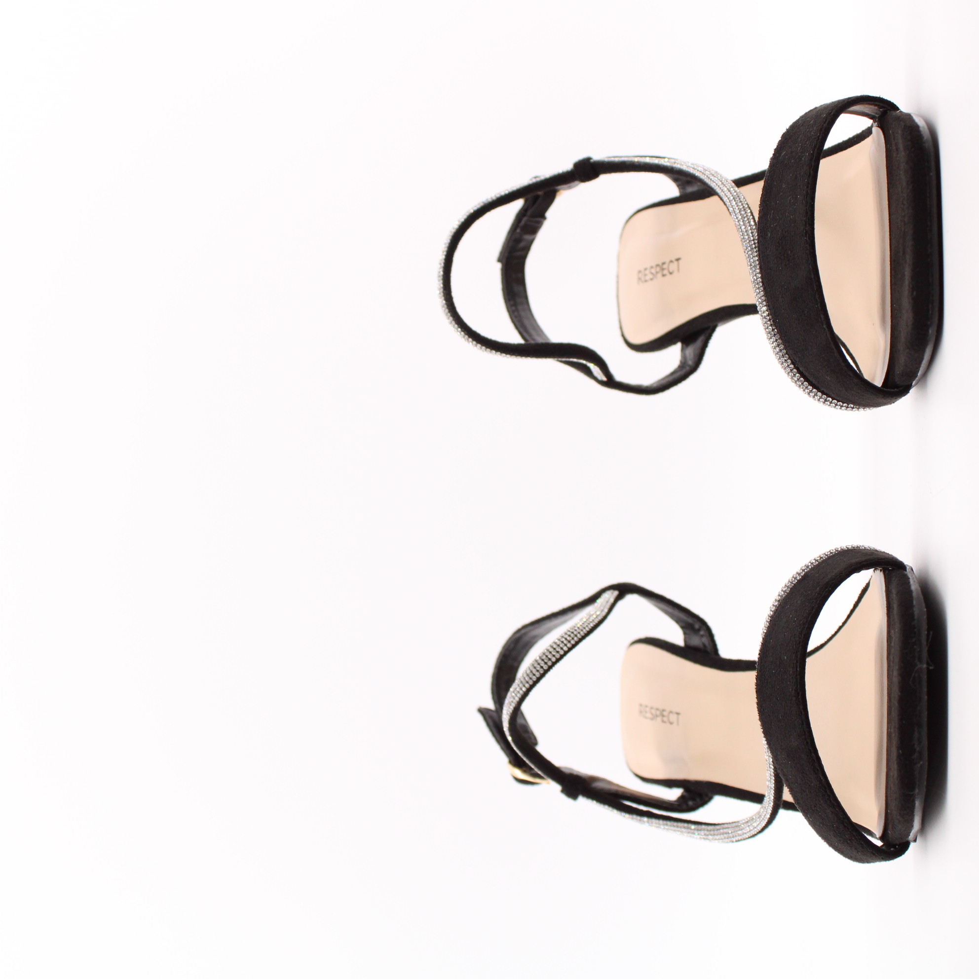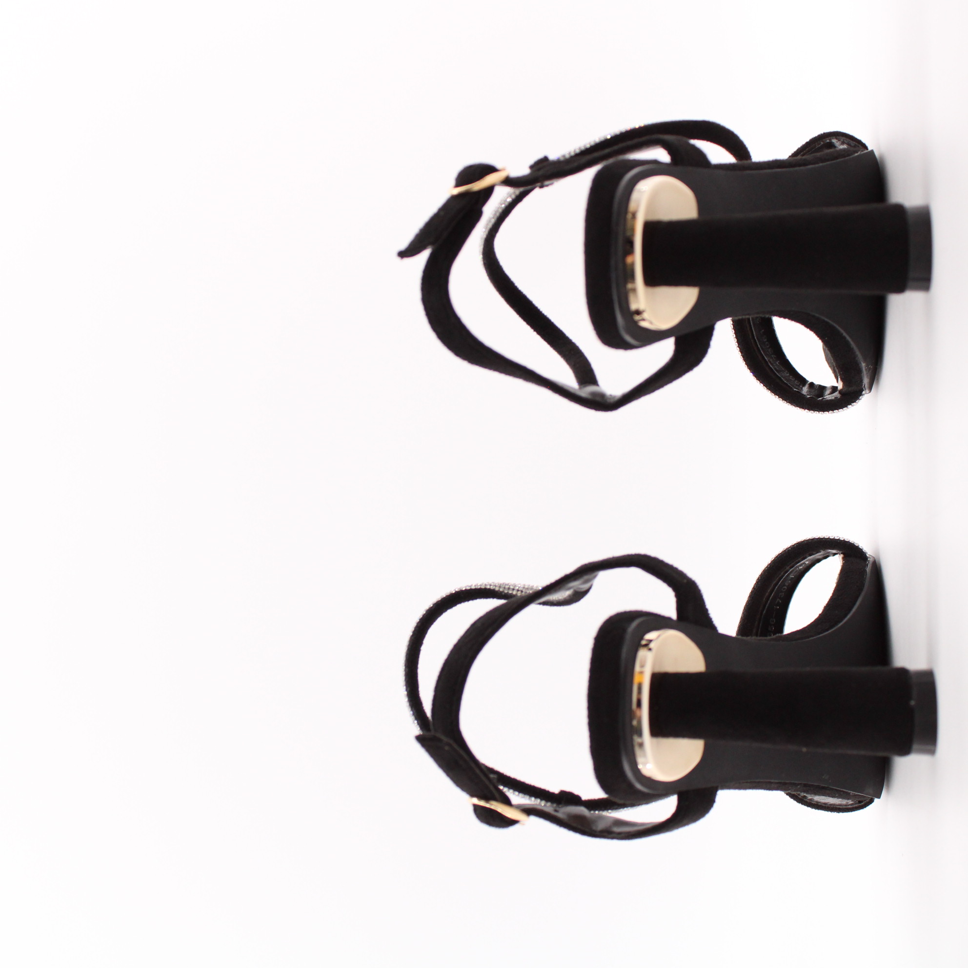 Чёрные велюровые босоножки с декоративным хлястиком с стразами.