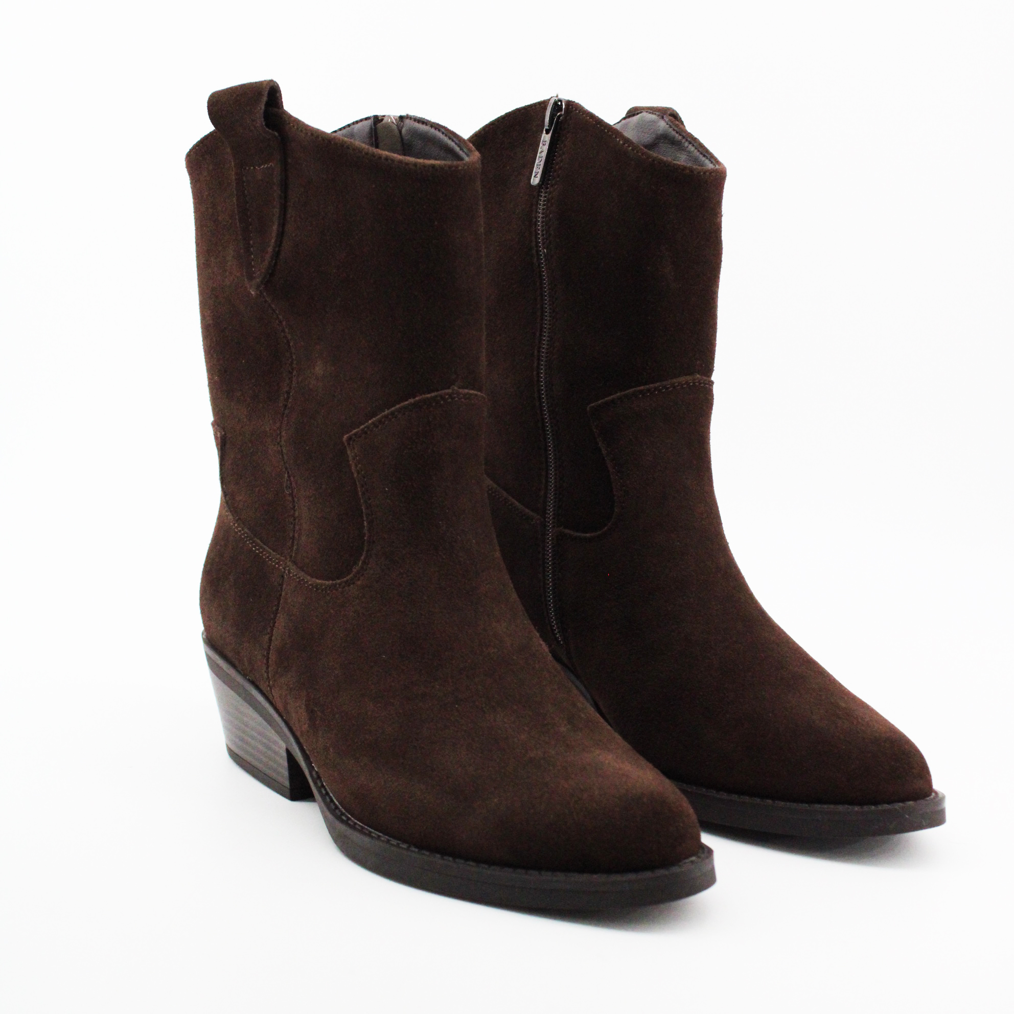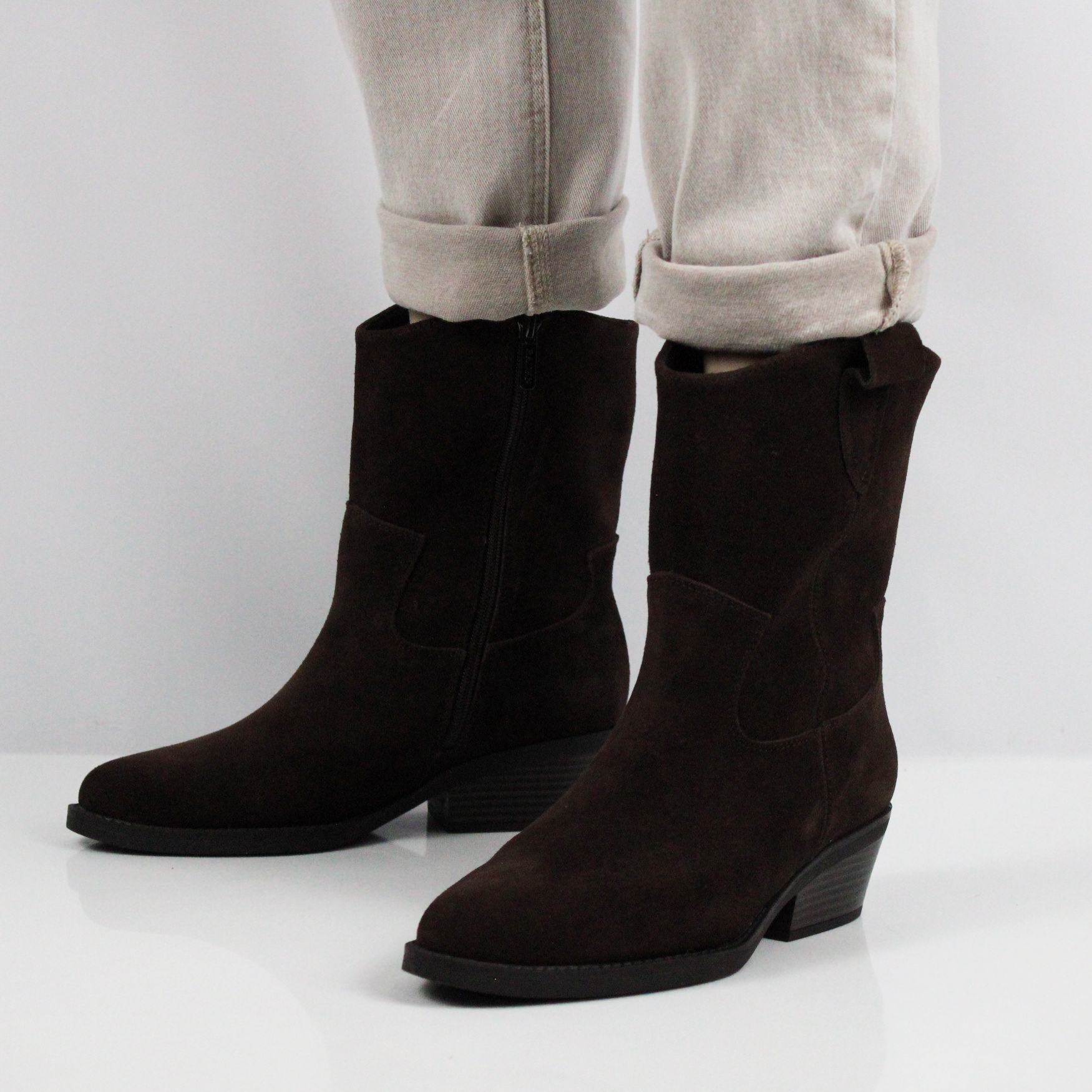 Женские полусапоги - казаки из коричневой замши.