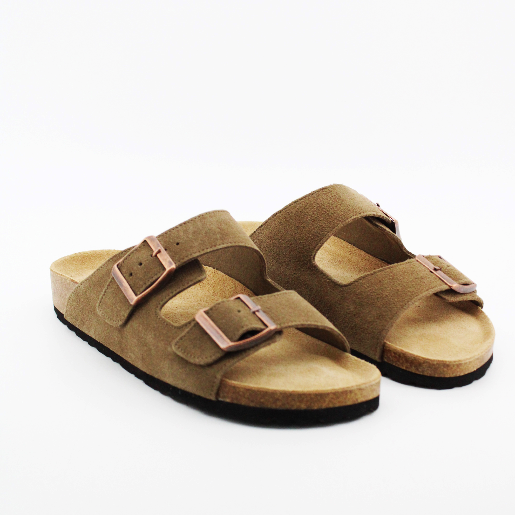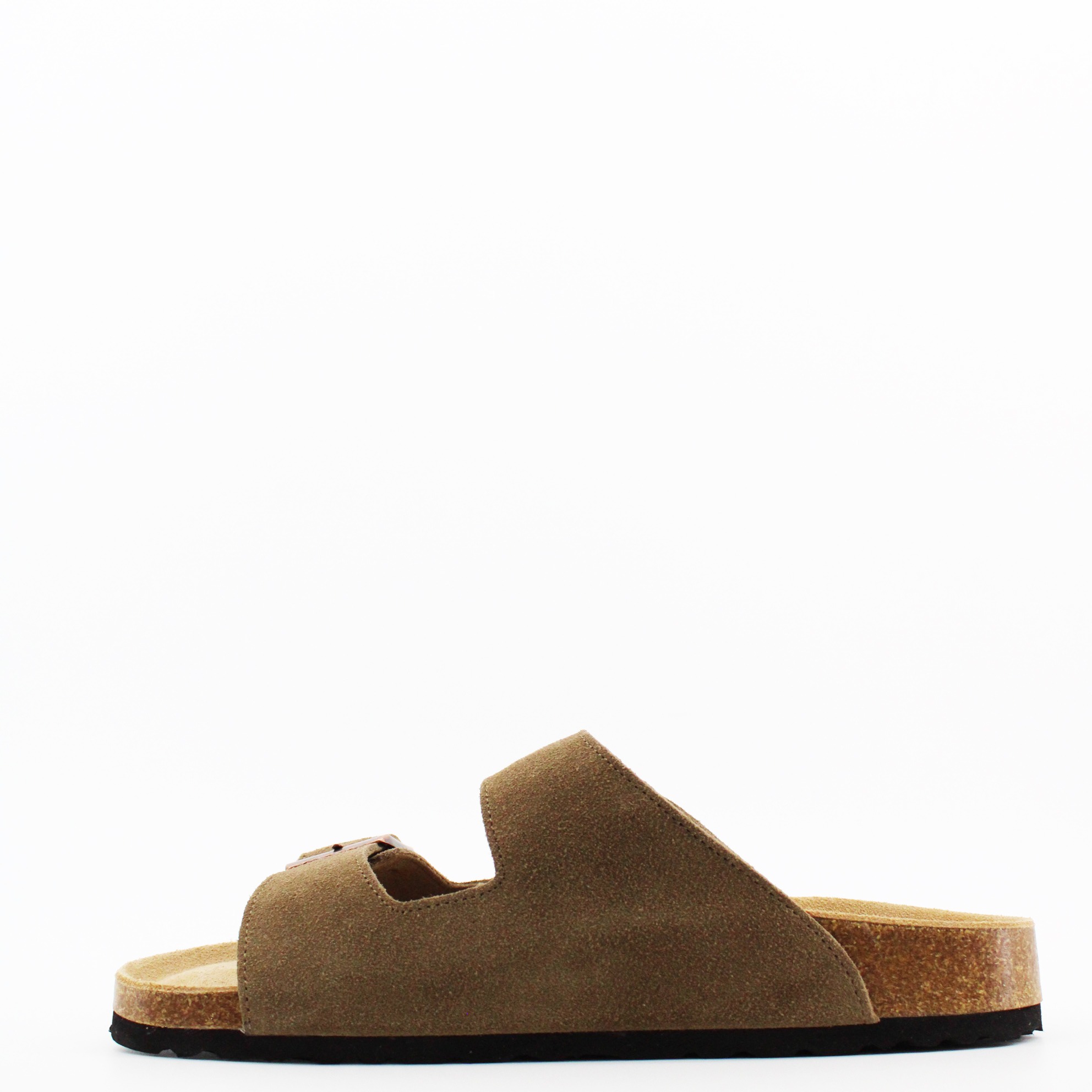 Сабо коричневого цвета в стиле биркенштоков. Биркенштоки это удобные сандалии или шлепанцы из натуральной кожи с толстой подошвой и характерной стелькой. Это комфортная ортопедическая обувь.