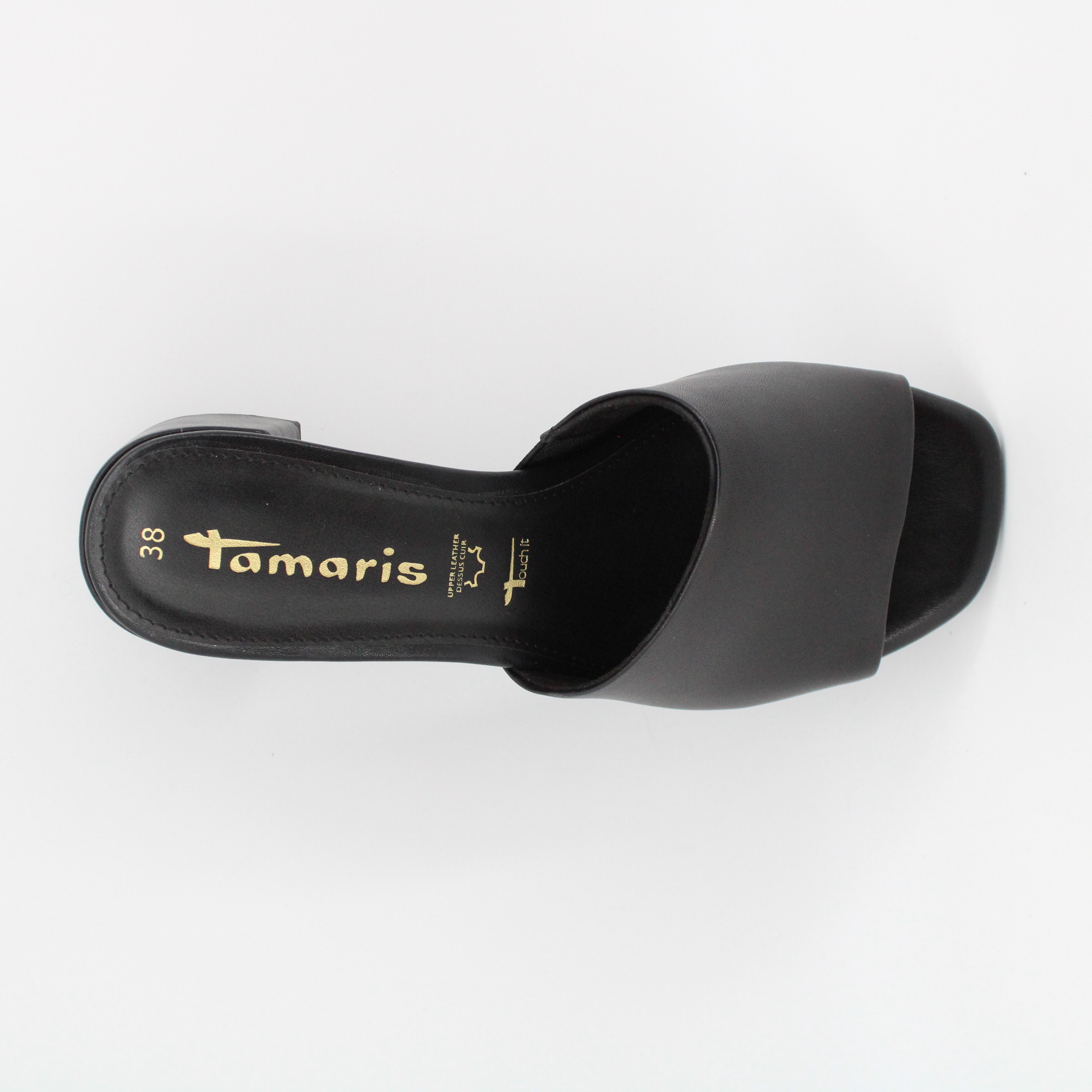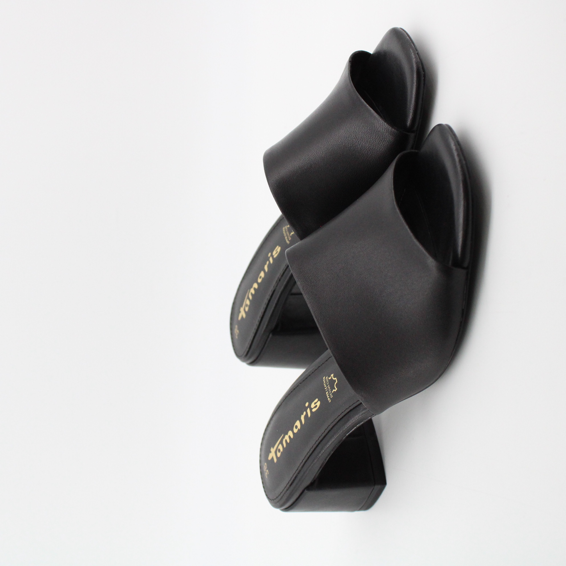 Акцент в этих удобных мюлях сделан на широкий устойчивый контрастный каблук. Широкая союзка выполнена из натуральной кожи черного цвета. Для удобства ходьбы с внутренней стороны предусмотрена эластичная вставка, не сковывающая шаг. Мягкая стелька с технологией Touch-IT адаптируется под индивидуальные особенности стопы, дарит легкость и свободу движения. Использование инновационных технологий Anti-Slide и Anti-Shokk гарантирует удобство и комфорт при ходьбе. Технология Anti-Slide повышает устойчивость благодаря противоскользящей набойке, а каблук с амортизирующей технологией Anti-Shokk снижает нагрузку на спину.